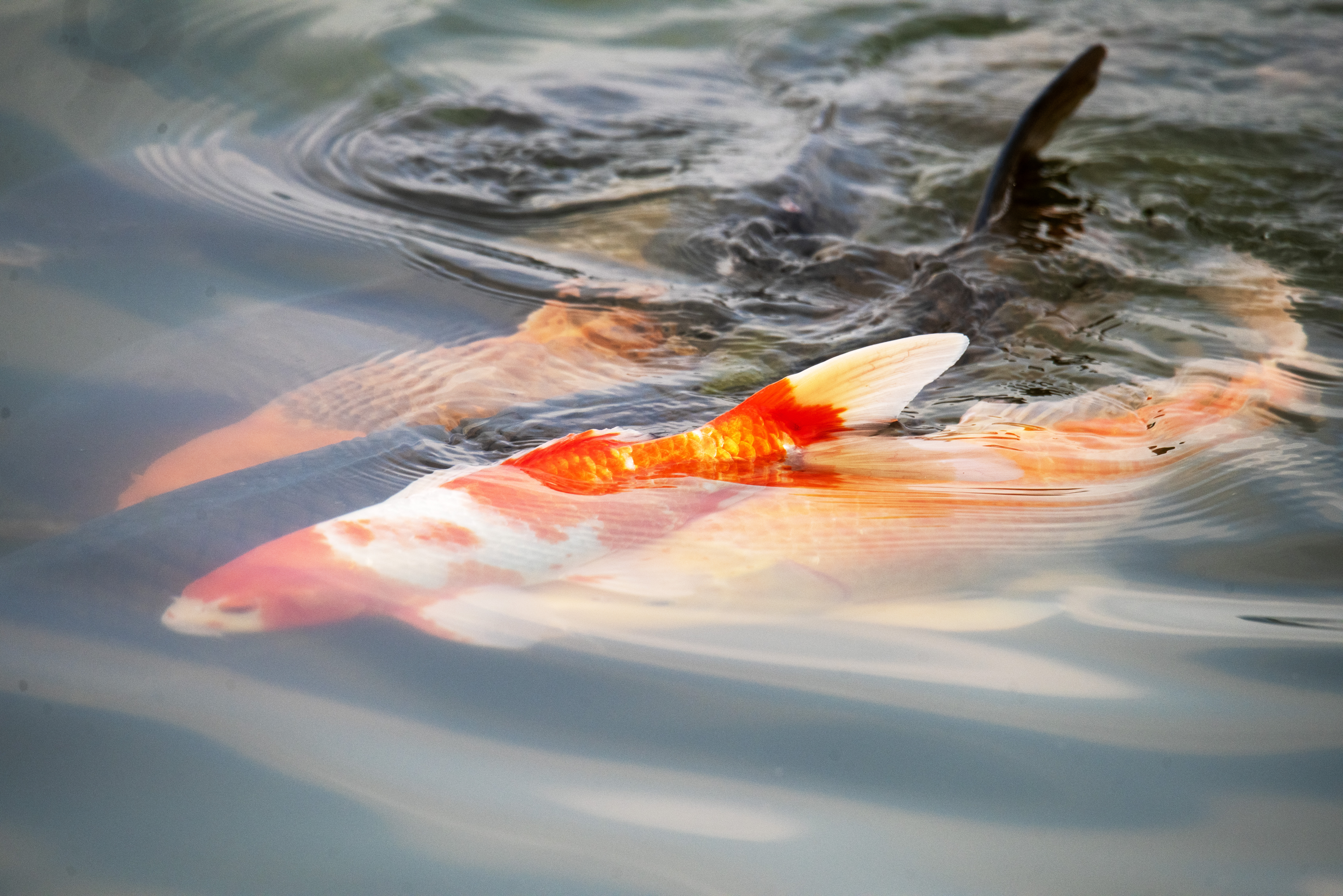 水波荡漾,金鱼游过春天的倒影。粉花低垂,黄花挺立,风在叶间打了个转,悄悄把整个季节都装进了镜头里。