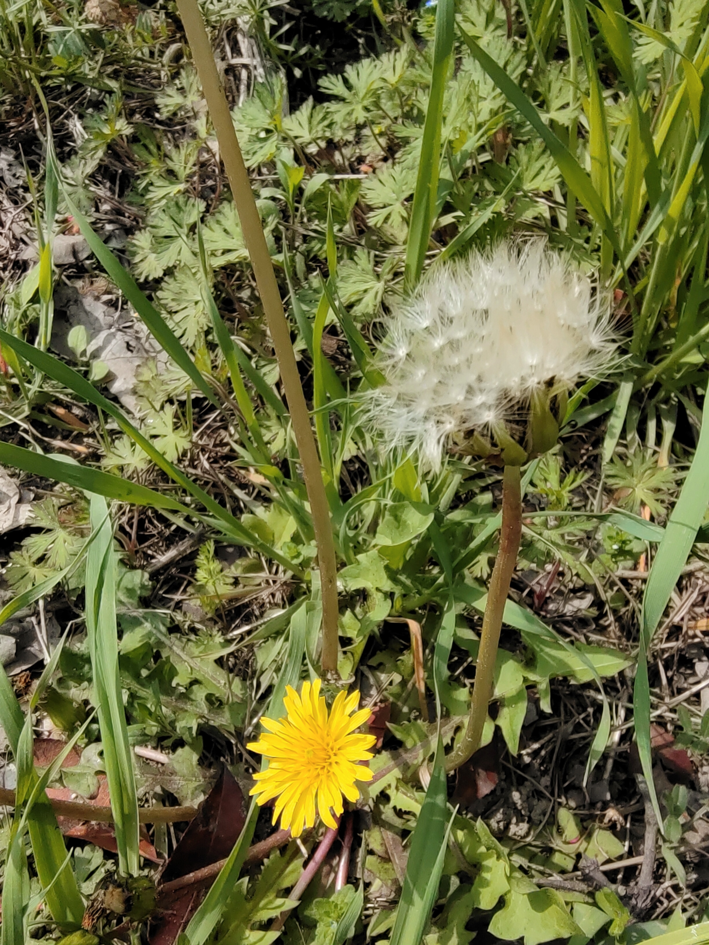 阳光轻抚草地,蒲公英黄花初绽,白绒球静待风起——生命在绿叶间低语,柔软,却自有远方。