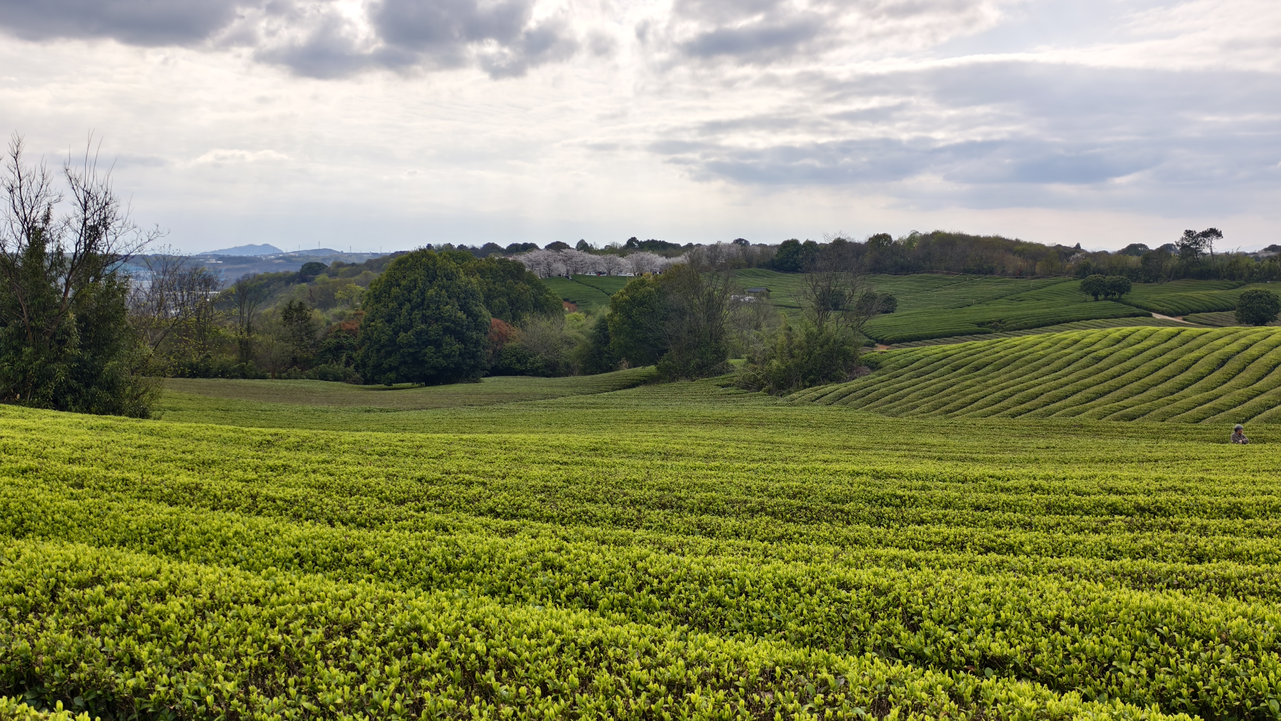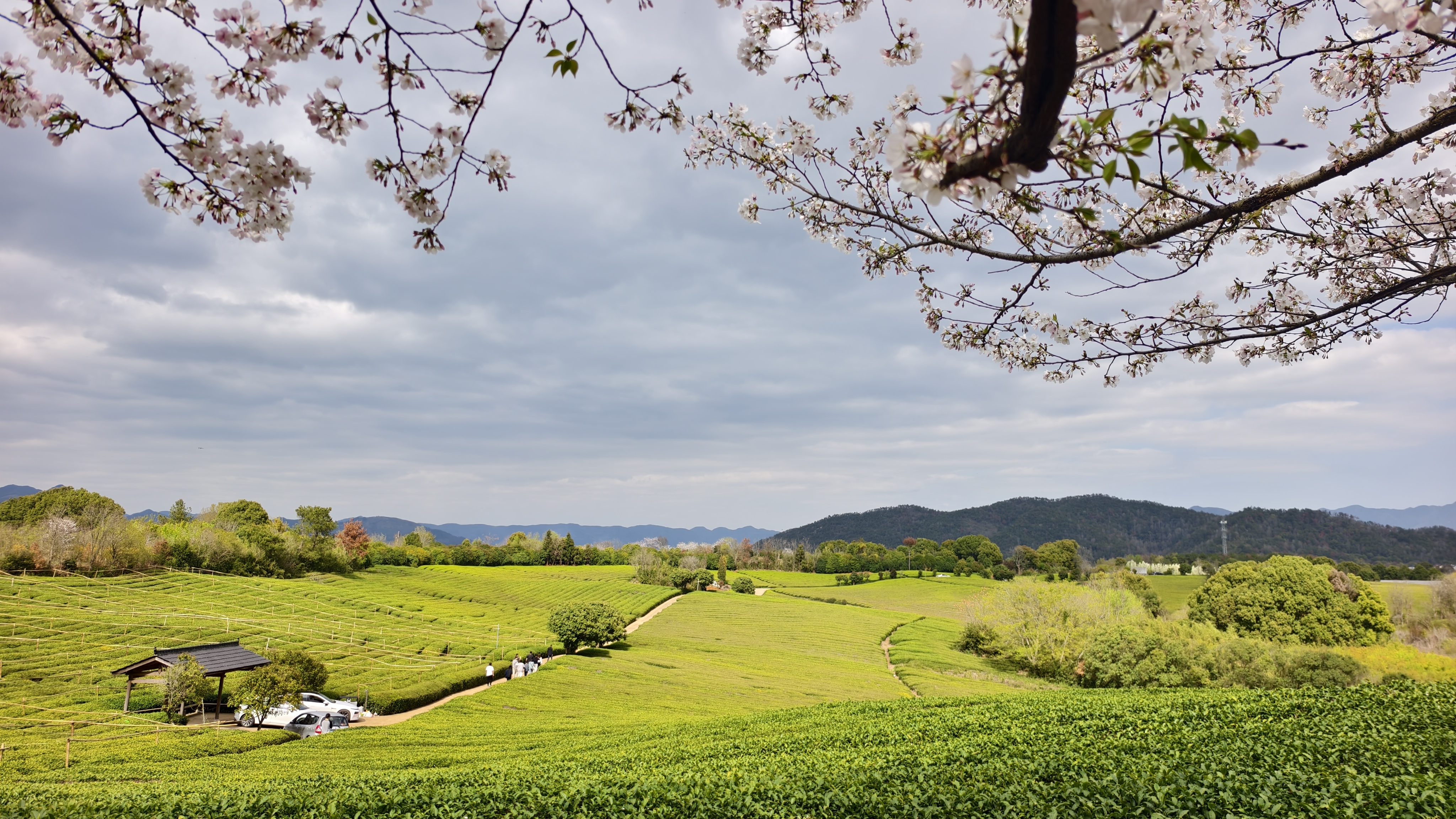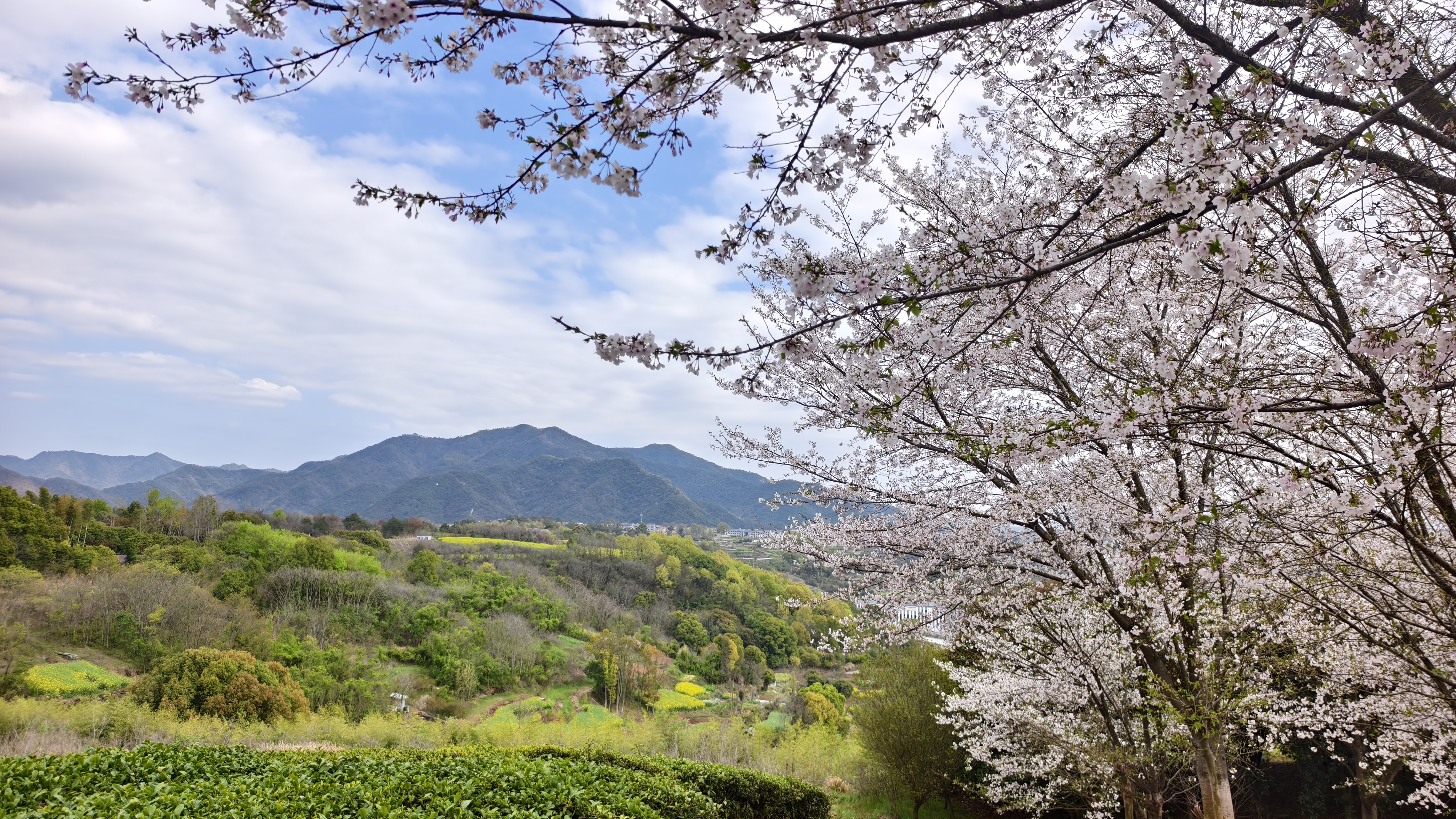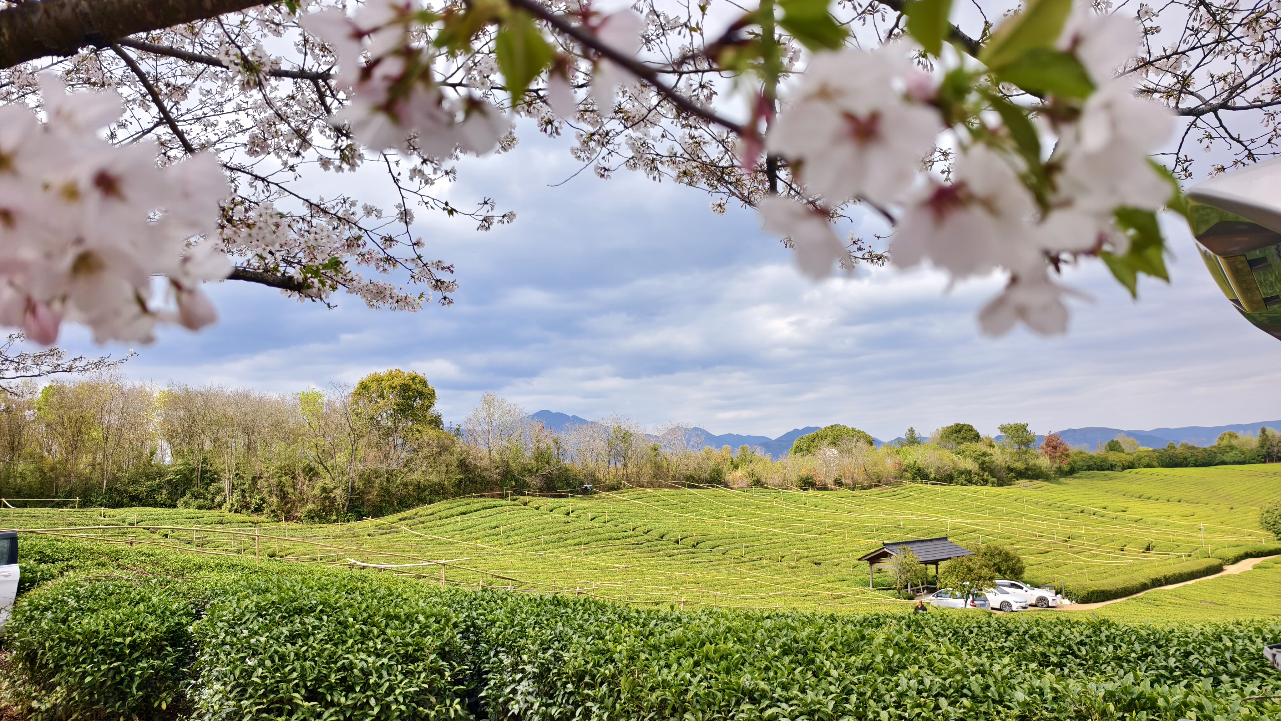 油绿的茶园 洁白的樱花 刚刚好的阳光 春日 不可错过的花事