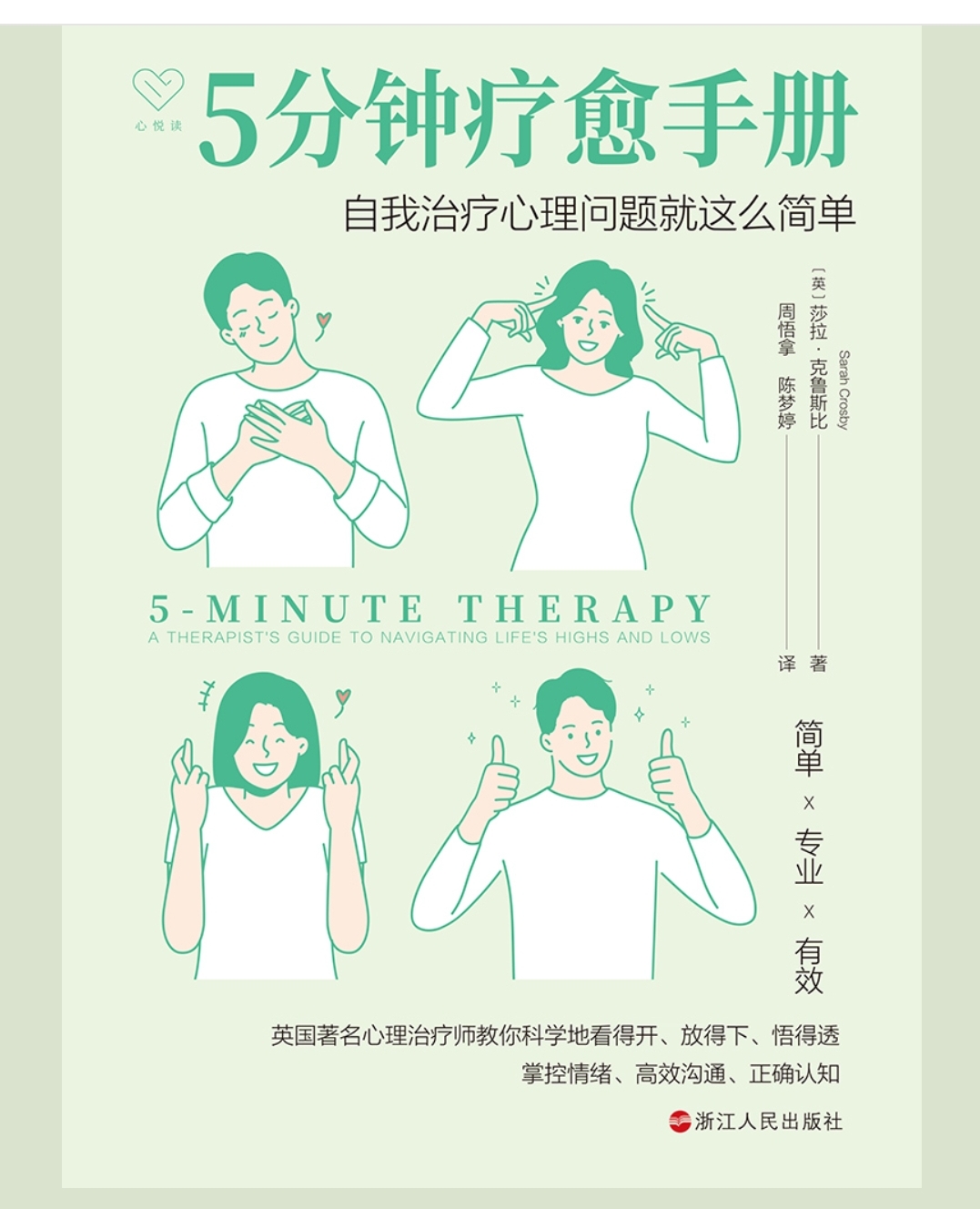 《5分钟疗愈手册》阅读提纲: 一、作者简介 〔英〕莎拉·克鲁斯比(Sarah Crosby) 1. 专业背景:毕业于爱尔兰都柏林大学学院,获考古学和地理学荣誉学士学位;后接受再培训成为人文综合治疗师,持有都柏林商学院HDip(人文综合治疗文凭)与硕士学位,现任职于都柏林,为专业心理治疗师。 2. 传播影响力:Instagram平台拥有34万关注者,是英国心理领域知名博主,擅长将晦涩的心理学专业知识拆解为通俗易懂、可落地的小笔记,主打轻量化、趣味化的心理健康科普。 3. 创作特色:本书是她将专业心理疗愈内容大众化的核心作品,兼顾专业性与实用性,原版上市后获海外多家媒体高分推荐,引进版也凭借实操性广受读者认可。 译者团队 - 周悟拿:英语、丹麦语、挪威语译者,浙江大学英语语言文学博士,现任教于湖南大学外国语学院,曾赴多所世界名校交流访问,译著涵盖《没有面目的人》《地球编年史》等多部作品。 - 陈梦婷:湖南大学英语语言文学学士、硕士,主攻翻译理论与实践,保障了译文的精准度与可读性。 二、内容简介 这是一本聚焦自我心理疗愈的轻量化心理自助手册,核心主旨是“每天5分钟,掌握自我调节与疗愈的核心方法”。针对现代人群普遍面临的焦虑、情绪内耗、人际关系困扰、自我否定、童年创伤等心理问题,作者以专业治疗师的视角,摒弃枯燥的理论堆砌,通过“原理讲解+具体练习+实例拆解”的形式,指导读者通过自我探索、情绪管理、关系梳理等路径,实现心理状态的调整与疗愈。 书中打破了“疗愈需要长期投入”的固有认知,将复杂的心理学知识简化为可快速上手的碎片化方法,帮助读者快速掌控情绪、改善人际关系、重建自我认知,最终获得平静、自信与从容的心态。 三、主要知识架构 全书以“自我探索—疗愈实践—关系延伸”为逻辑主线,共分8大核心模块,每模块均配套“5分钟可操作练习”,结构清晰且落地性强: 1. 自我发现:锚定自我认知基础,帮助读者厘清自身需求、特质与心理状态,为后续疗愈确立方向。 2. 探索依恋:拆解亲密关系中的依恋类型(如混乱型依恋等),分析依恋模式对关系的影响,教读者建立健康的亲密关系。 3. 自我对话:剖析负面自我对话的根源(如“全有或全无”思维、“应该主义”等),提供思维重构的方法,学会善待自己。 4. 识别诱因:教读者捕捉情绪触发点(如特定话语、场景、回忆),结合身体信号追溯情绪背后的深层需求与未解决的创伤。 5. 自我调节:提供快速平复情绪的实操技巧,如478呼吸法、感官接地、冷刺激法等,实现情绪的即时安抚。 6. 设定界线:指导读者明确自身边界,学习坚定且温和地表达边界,避免内耗,实现真正的自我关怀。 7. 重新抚育:聚焦“内在小孩”疗愈,通过对话、共情等方式,与童年时期的自我和解,弥补情感缺失。 8. 超越自我:延伸至人际关系支持,教读者在自我疗愈的基础上,有边界地帮助他人,实现双向成长。 四、现实意义 1. 适配快节奏生活的心理刚需:针对当代人“时间碎片化、心理压力常态化”的现状,以“5分钟”为单位拆解疗愈方法,无需大量时间投入,即可实现即时性的情绪调节与心理疏导,契合职场人、焦虑人群的日常需求。 2. 降低心理自助门槛:将专业心理学理论通俗化、具象化,避免了心理自助读物的晦涩难懂,即使无心理学基础的读者也能快速理解并应用,是普通人应对情绪内耗的“实用工具箱”。 3. 传递科学的疗愈理念:强调“自我疗愈≠自我否定”,引导读者以包容、理性的态度接纳自身情绪与不完美,同时明确“若情绪问题持续不缓解,需寻求专业心理咨询”的边界,既赋能读者自我调节,也规避了盲目自我疗愈的风险。 4. 改善人际关系与自我状态:通过依恋、界线、自我对话等模块的训练,帮助读者重建健康的人际互动模式,减少关系内耗,同时提升自我认知与情绪管理能力,助力构建更稳定、积极的心理状态,适配现代生活的多元挑战。