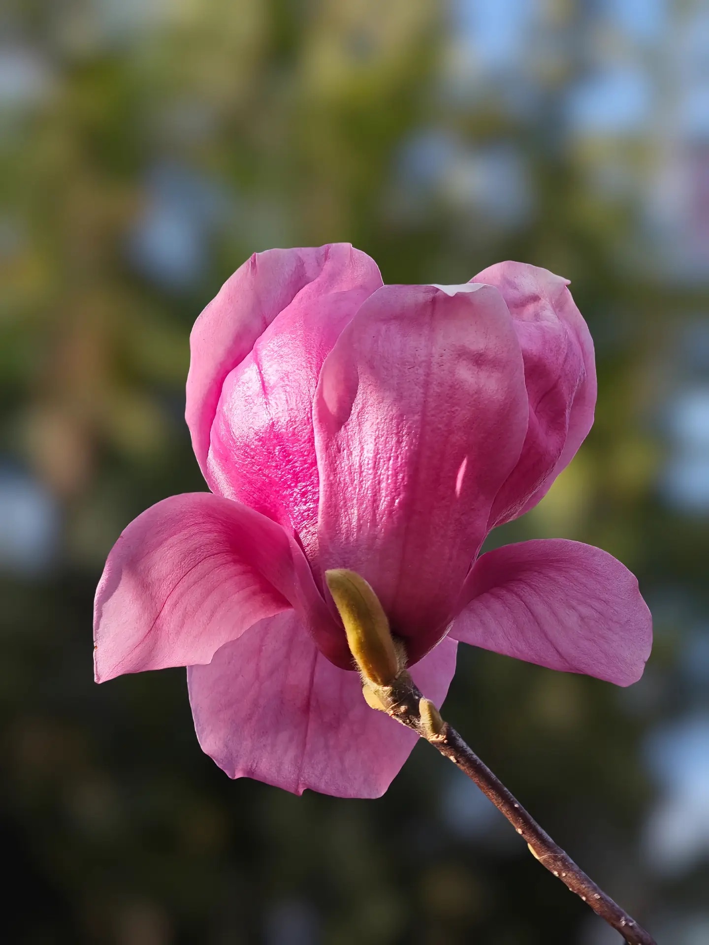 春光里,一树玉兰悄然绽放。粉瓣如绸,花蕊微颤,在枝头静候晨光。自然光轻抚过细腻纹理,单朵初绽,清丽脱俗。背景虚化成一片温柔绿意,仿佛时光也放慢脚步,只余下这抹粉,在春日里低语着生命最本真的美。