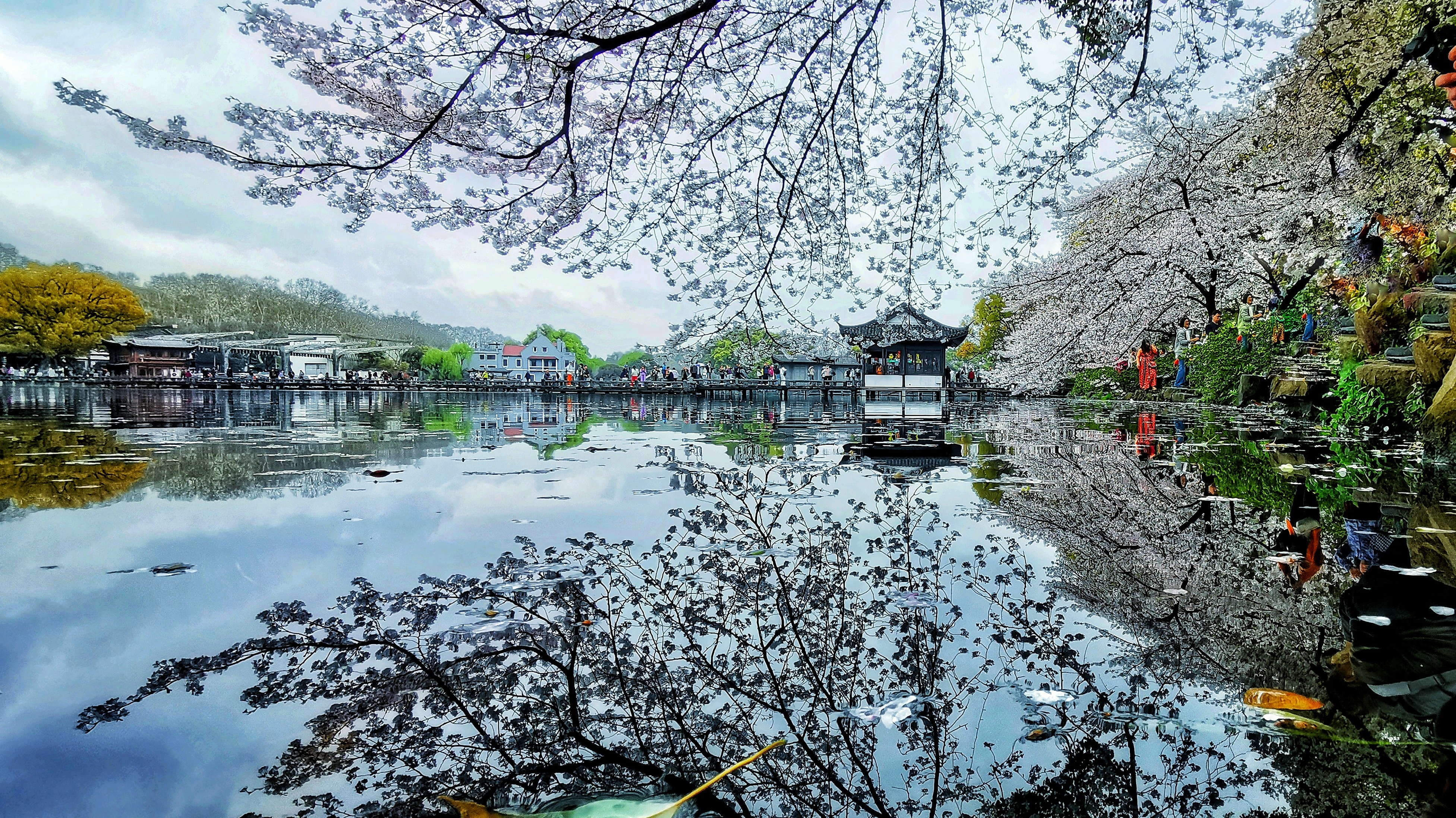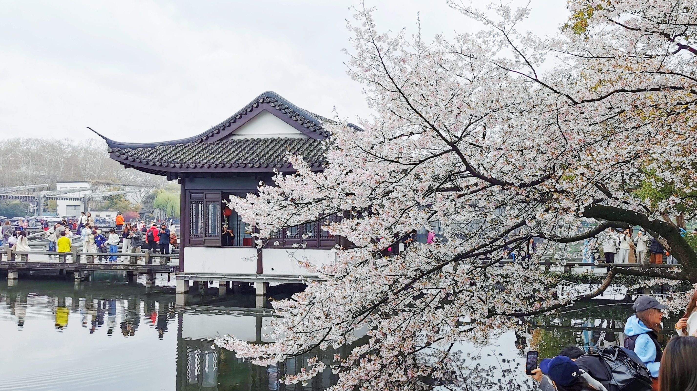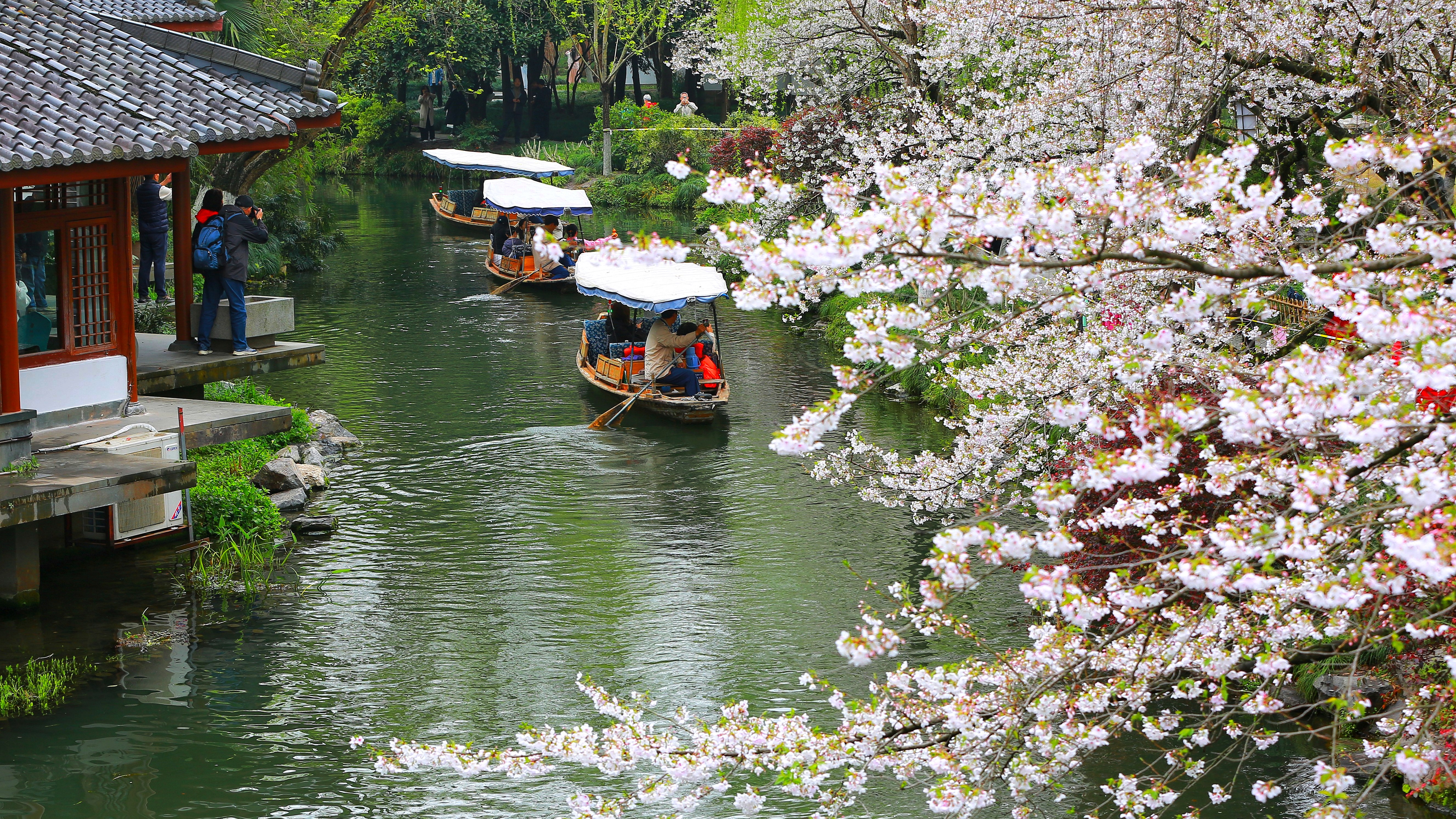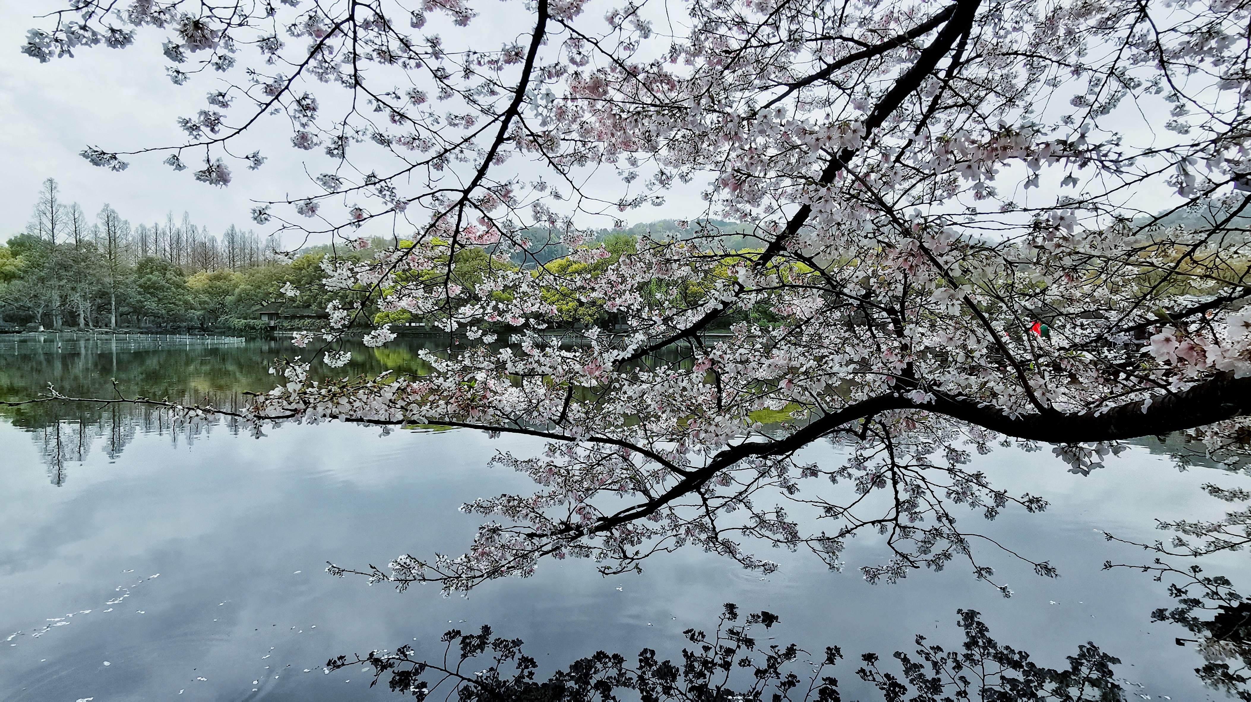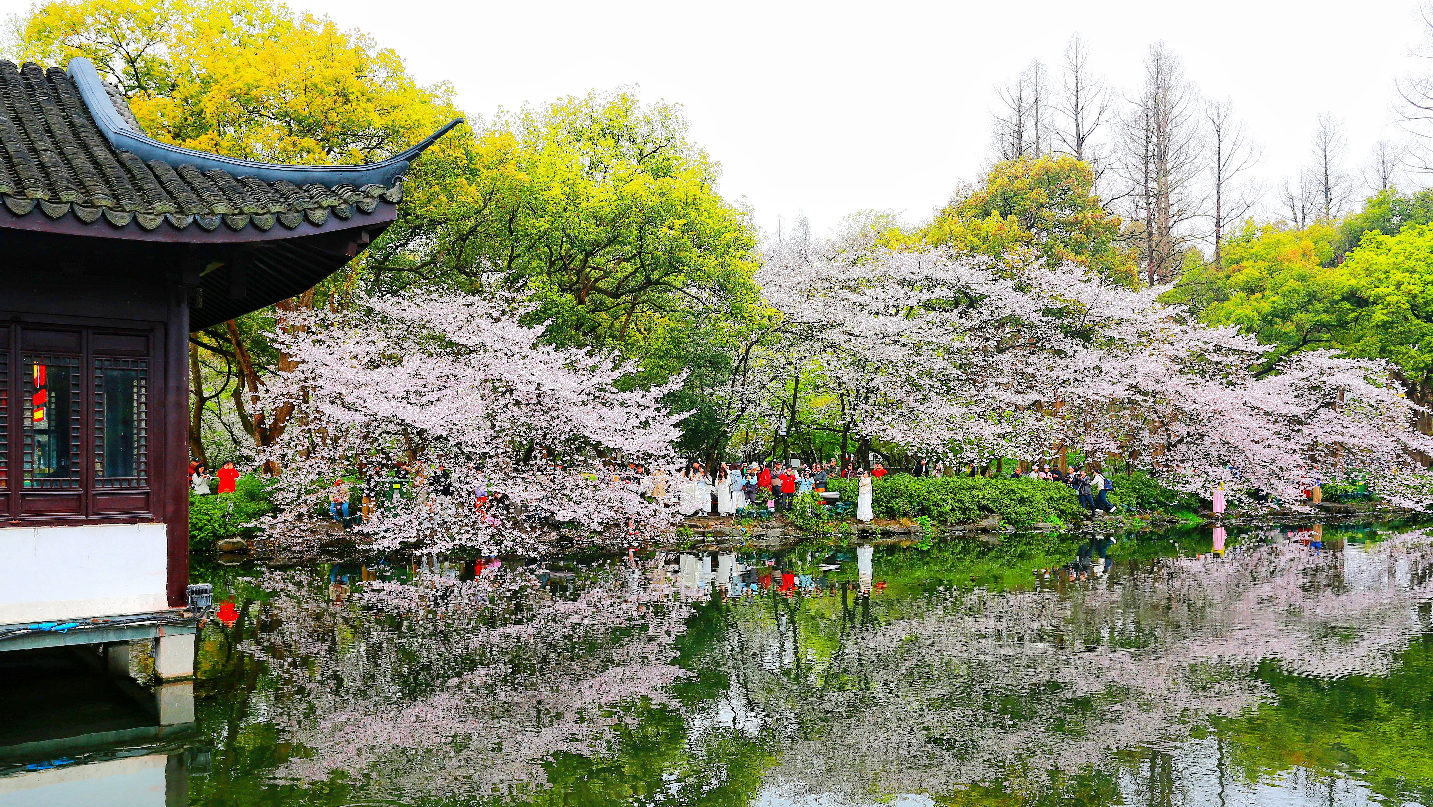 【曲院风荷:樱开正好,春满江南】曲院风荷樱花盛放,春风拂过湖面,涟漪轻漾,落樱纷飞。亭台隐于花影,乌篷船悠然穿行,烟雨朦胧中水色花影相映,尽显江南春日的温婉与诗意。