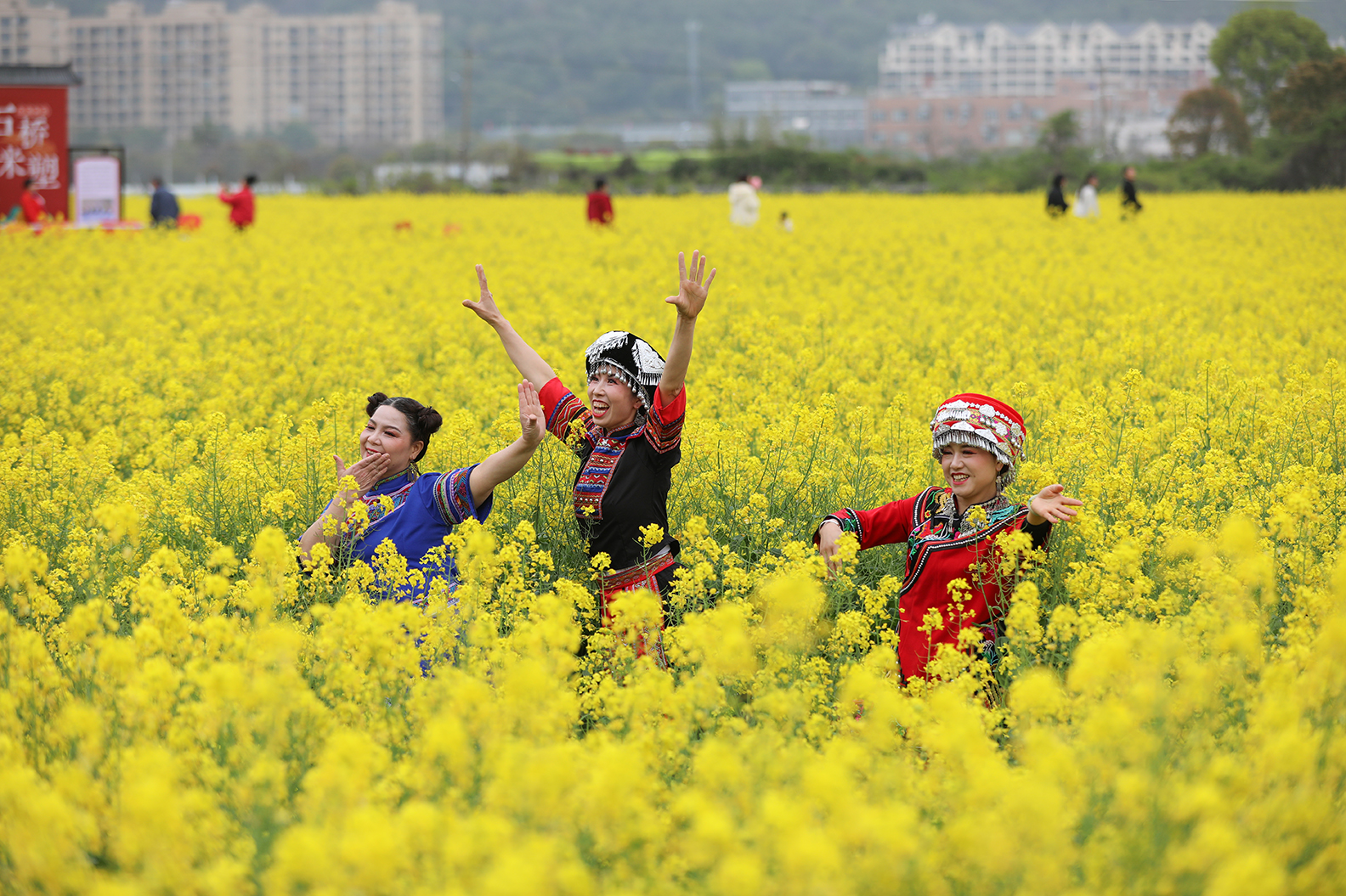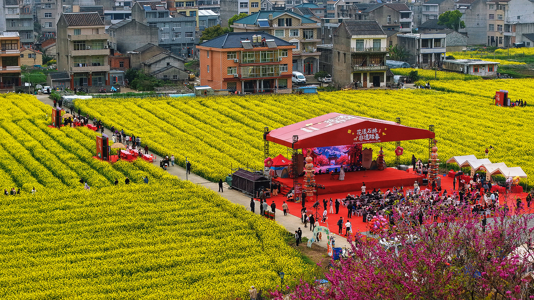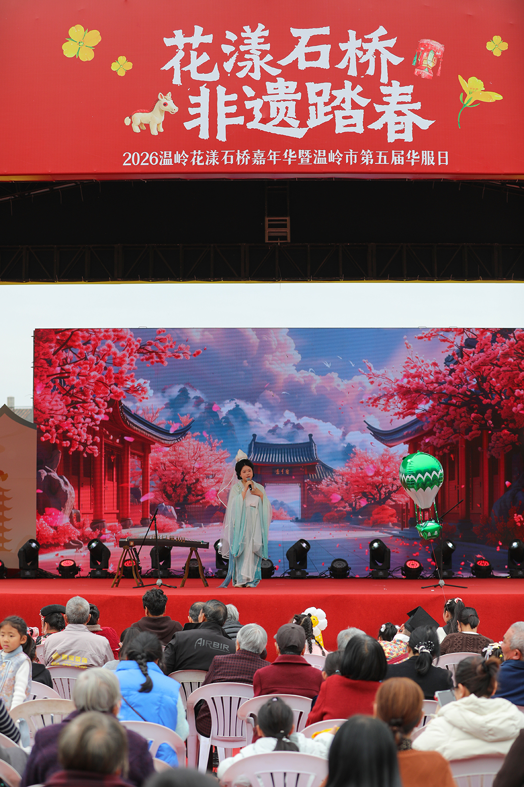花样石桥非遗踏春。于温岭市下宅金村。