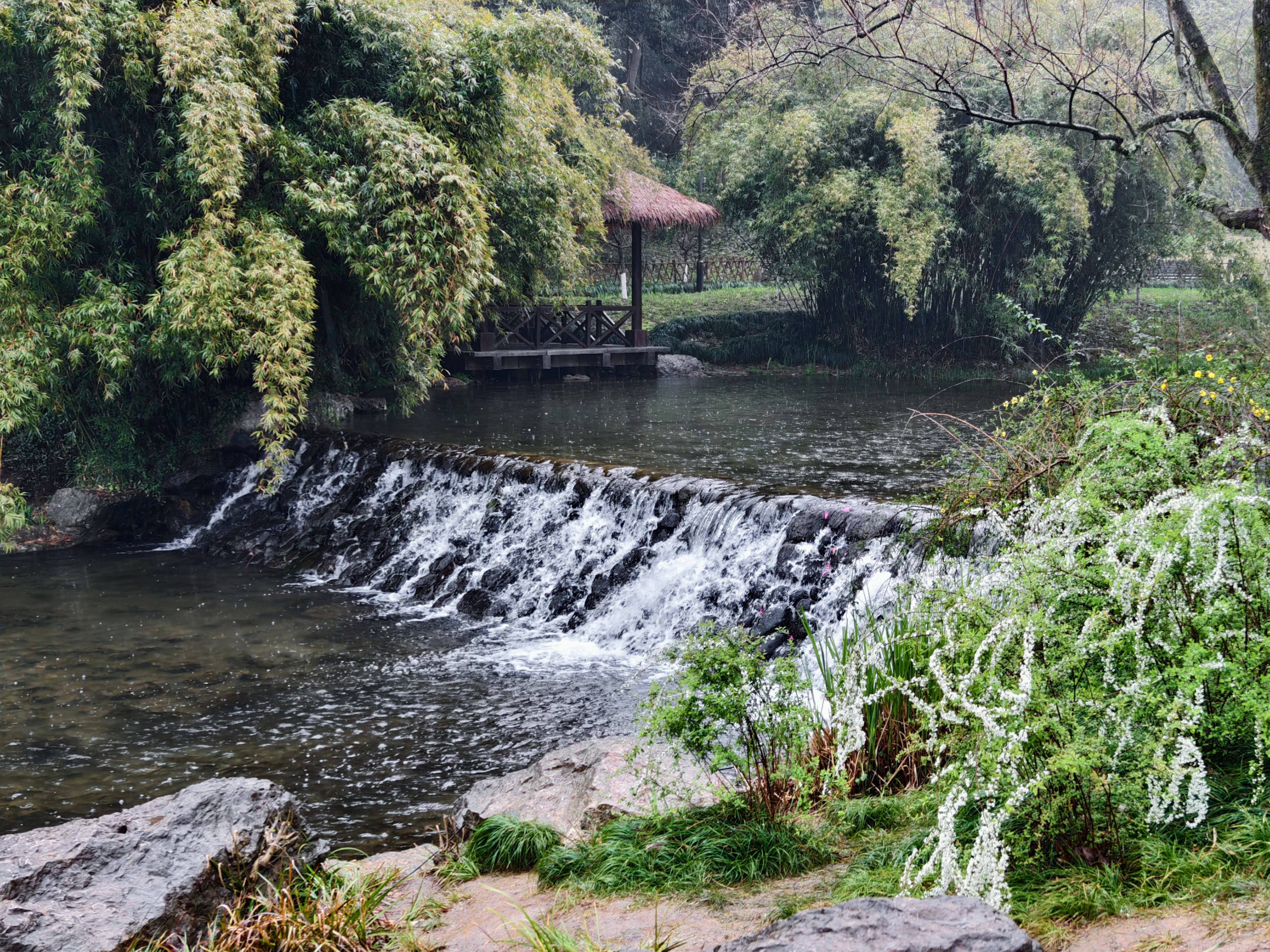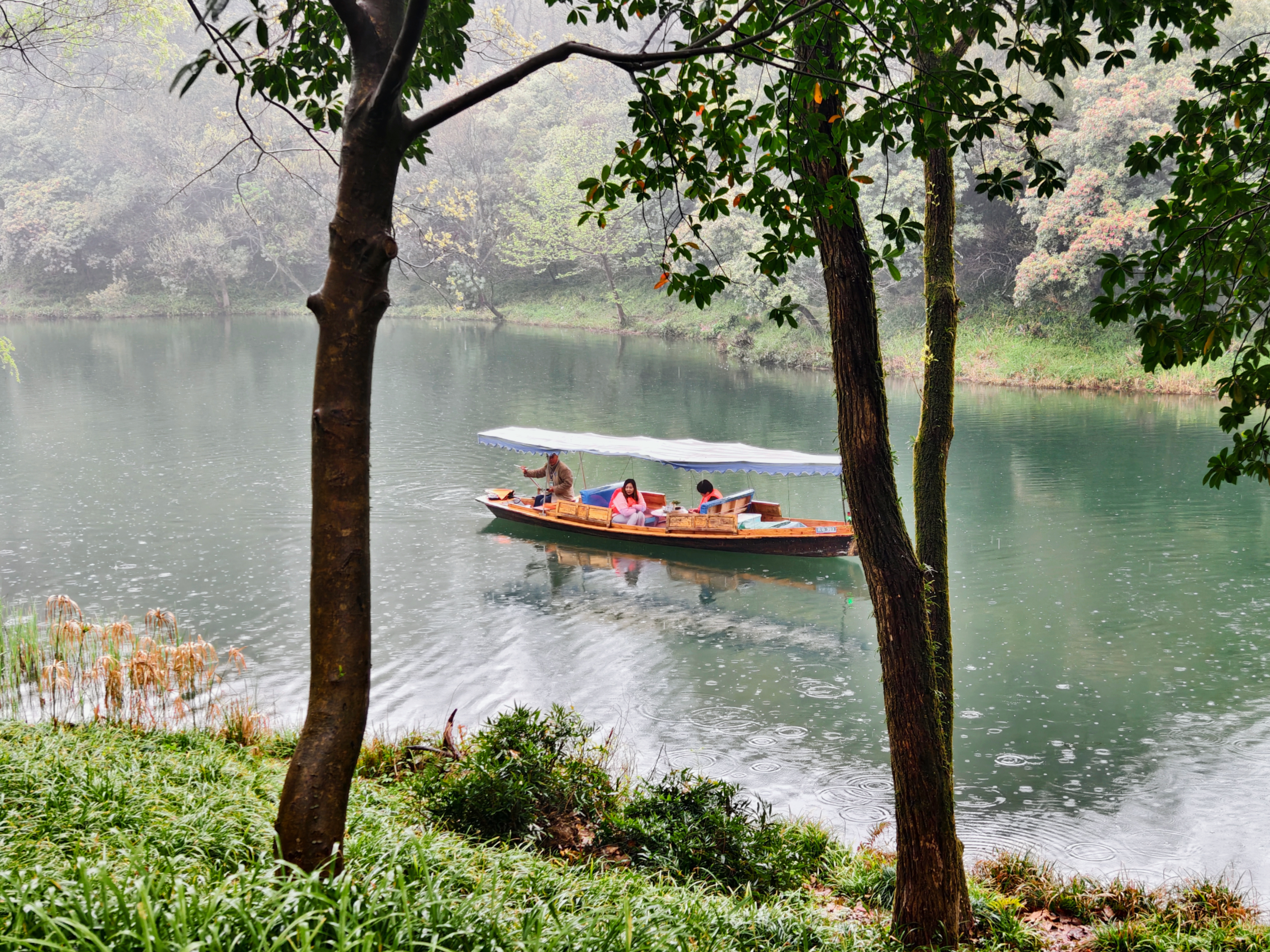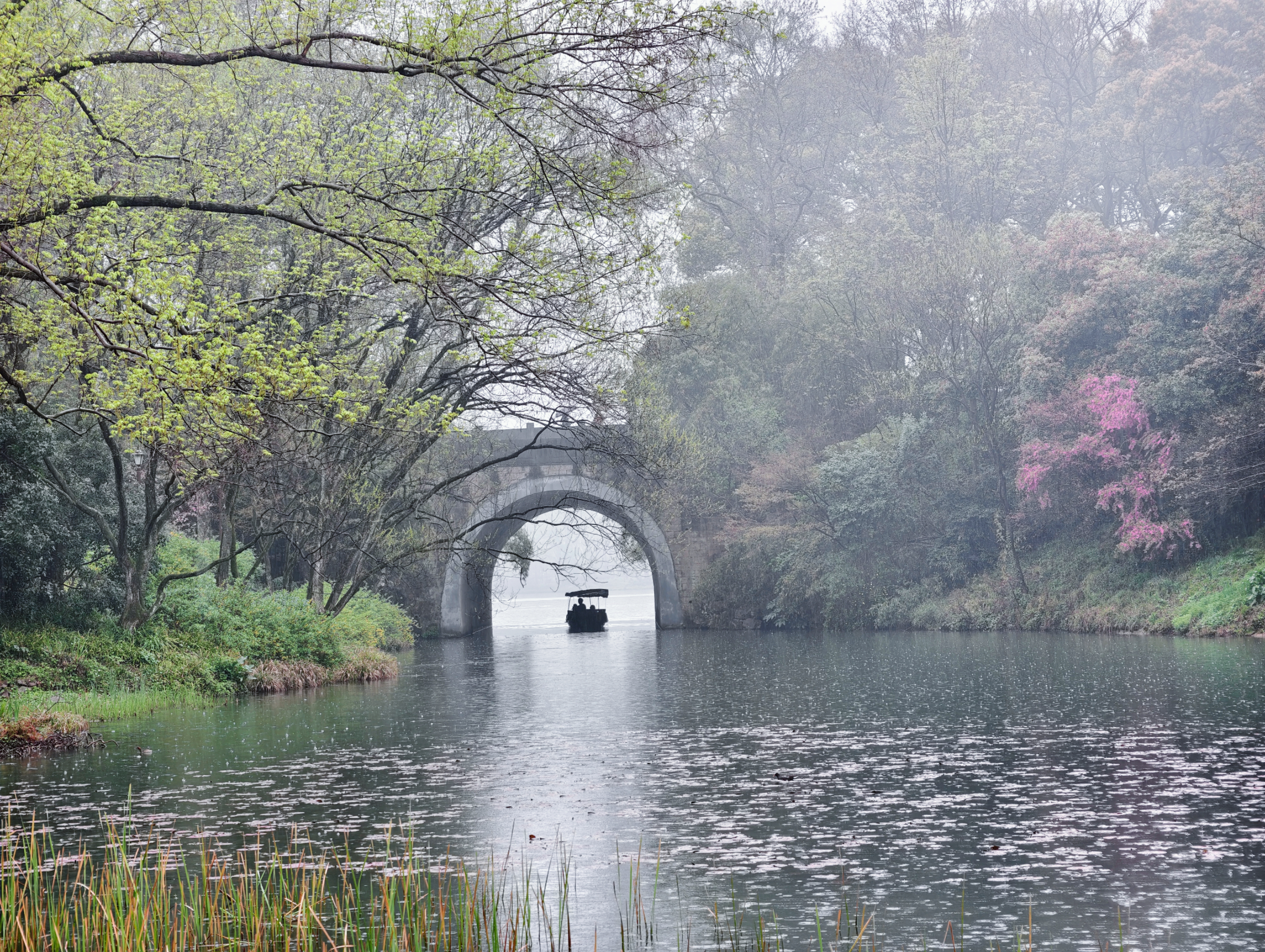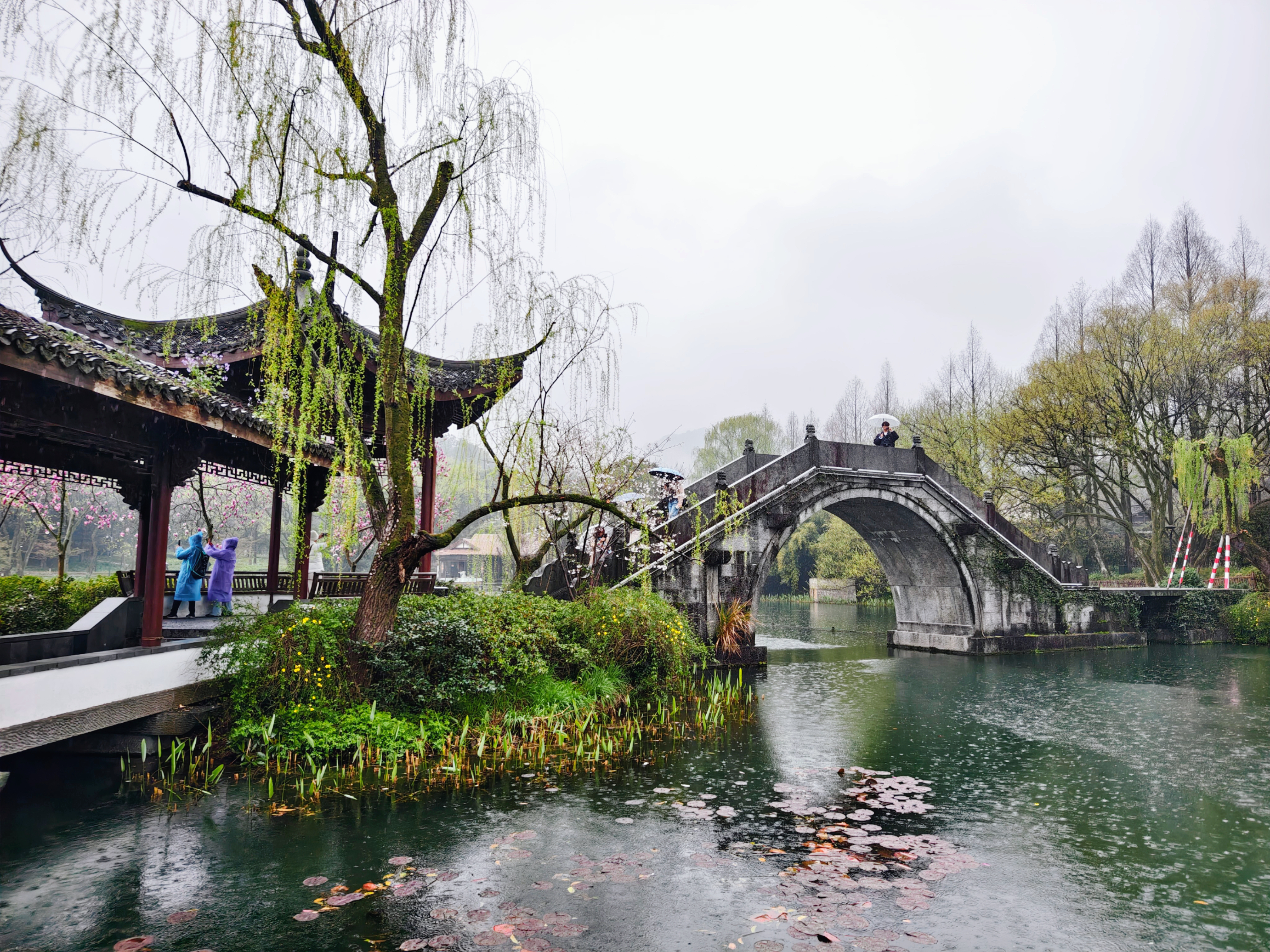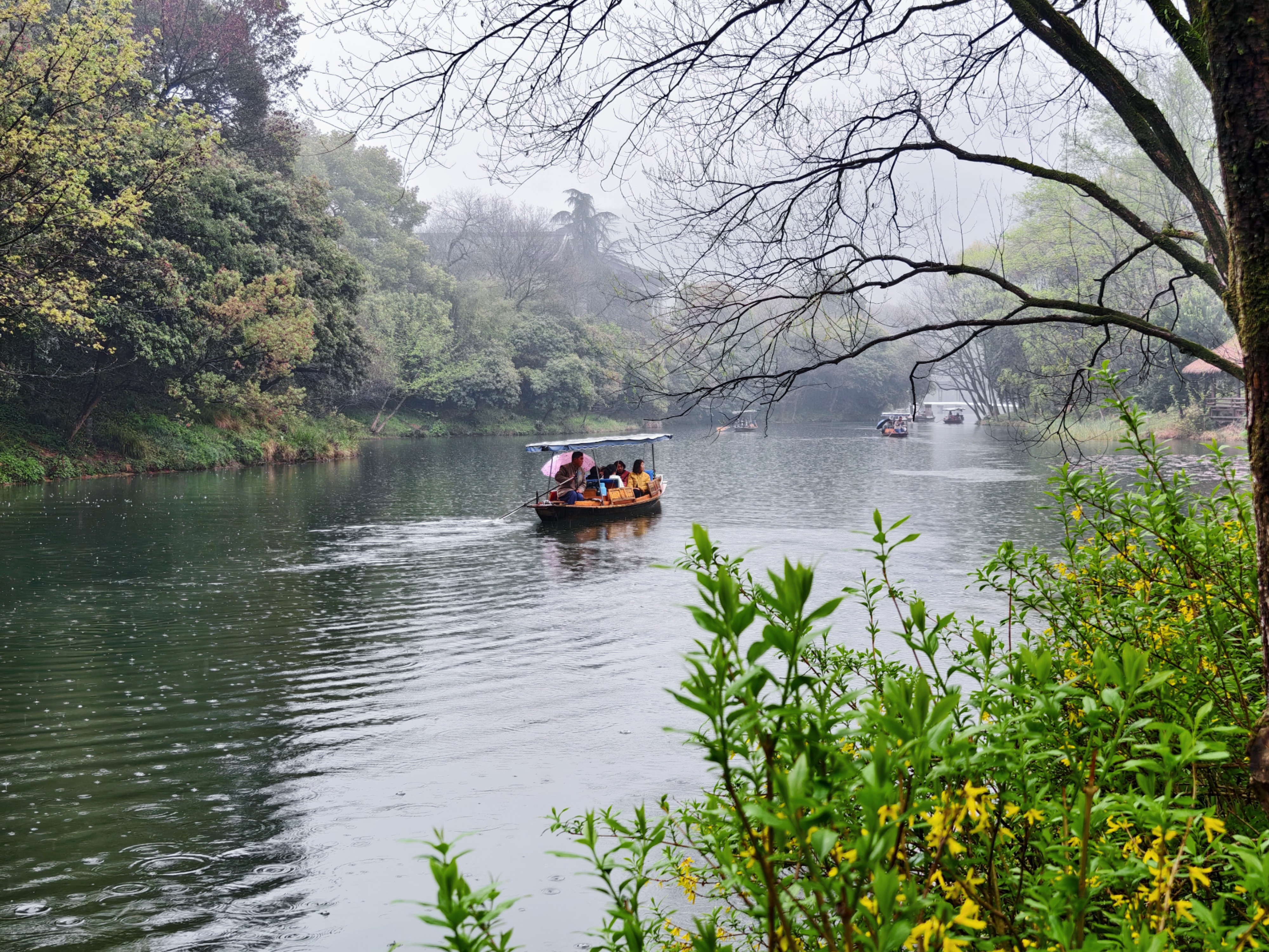 三月细雨蒙蒙,杭州乌龟潭、浴鹄湾笼罩在如烟似雾的雨幕中,远山含黛,近水浮翠,勾勒出一幅烟雨江南的水墨画卷。