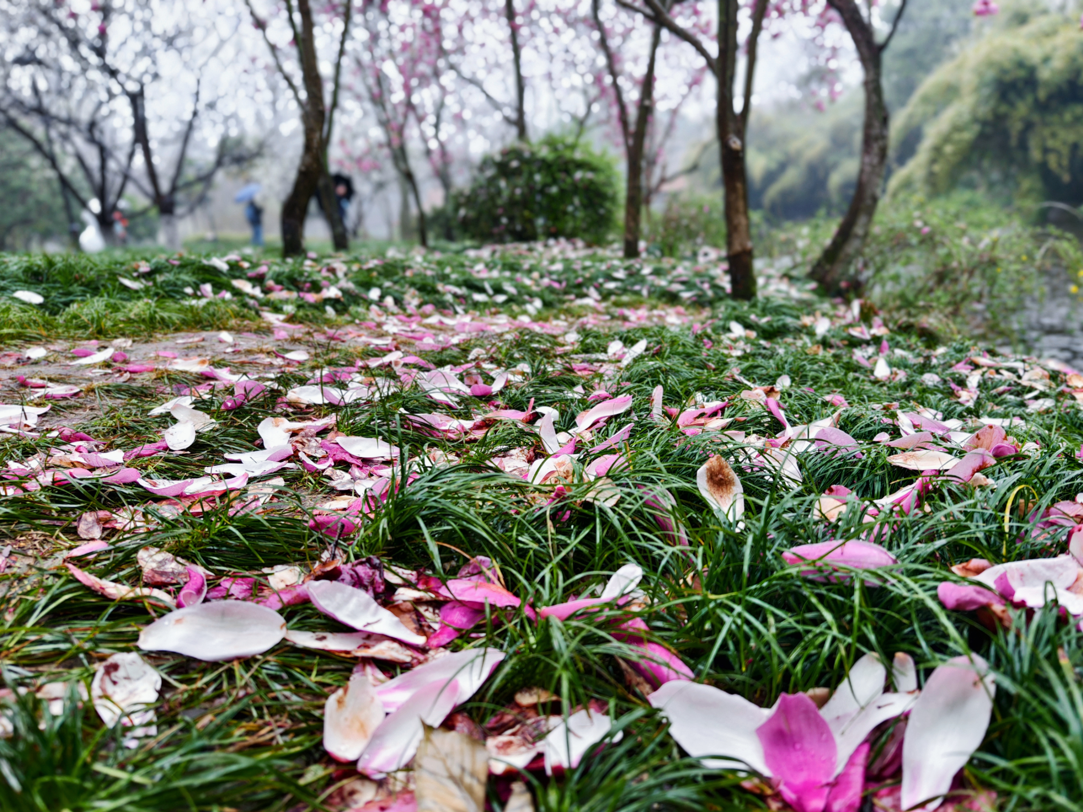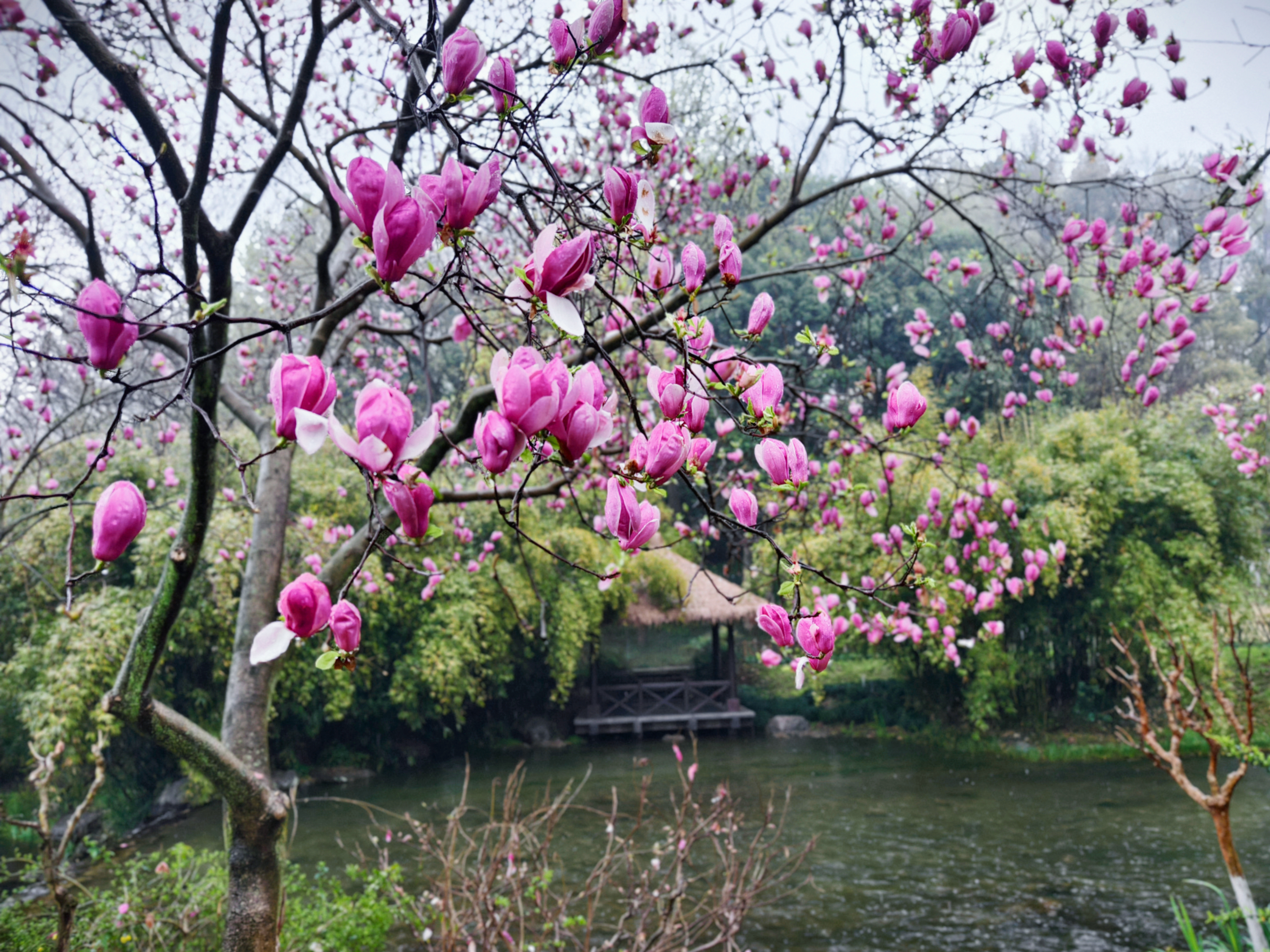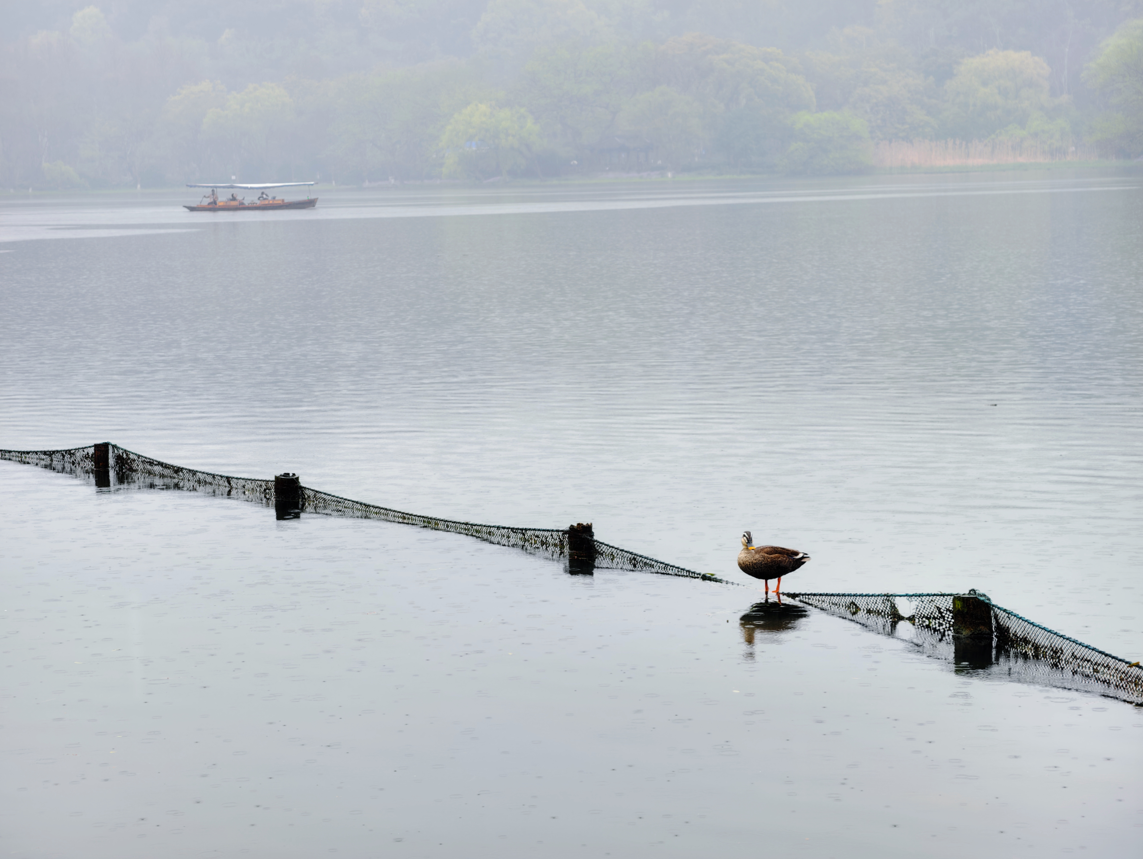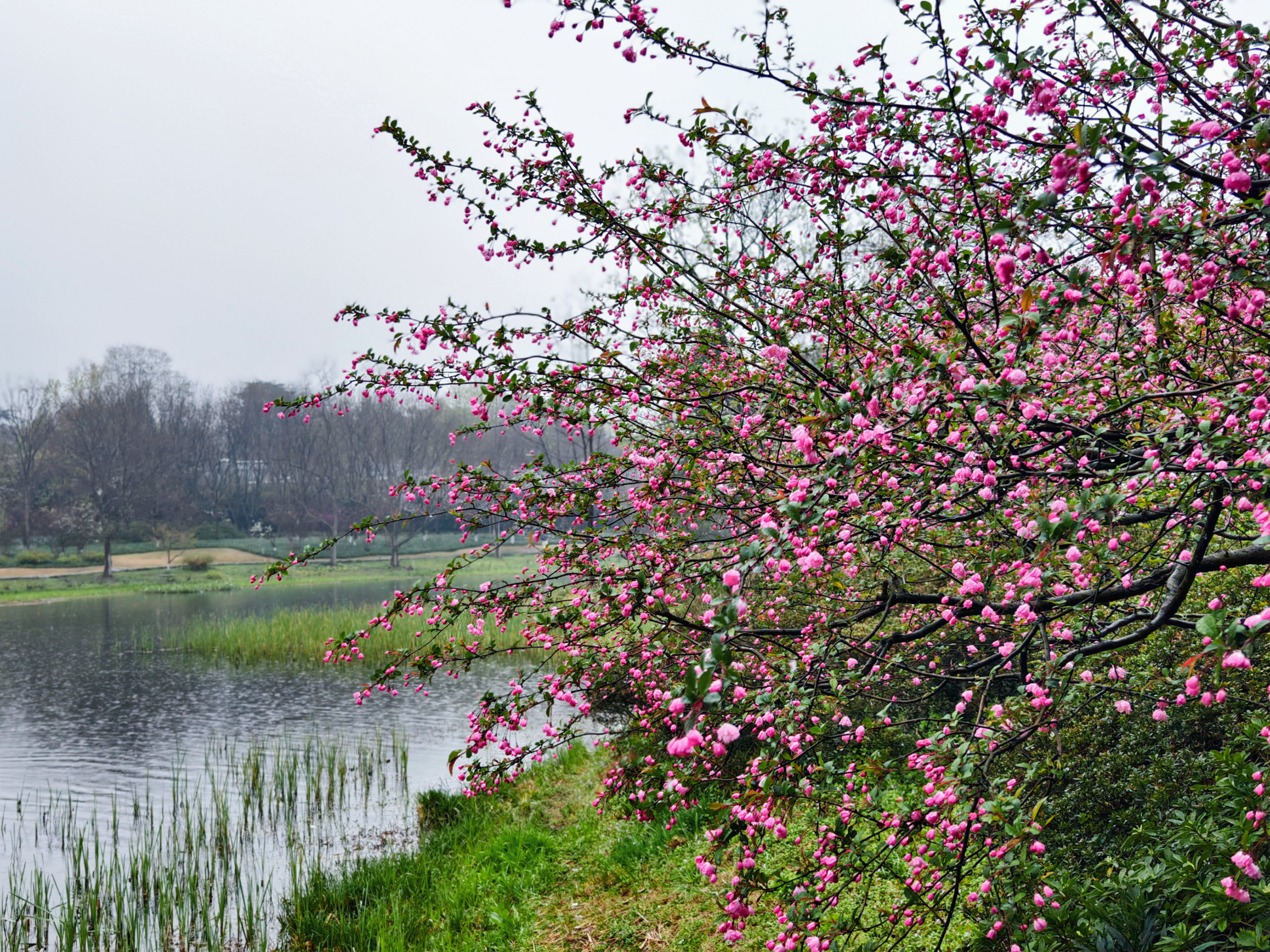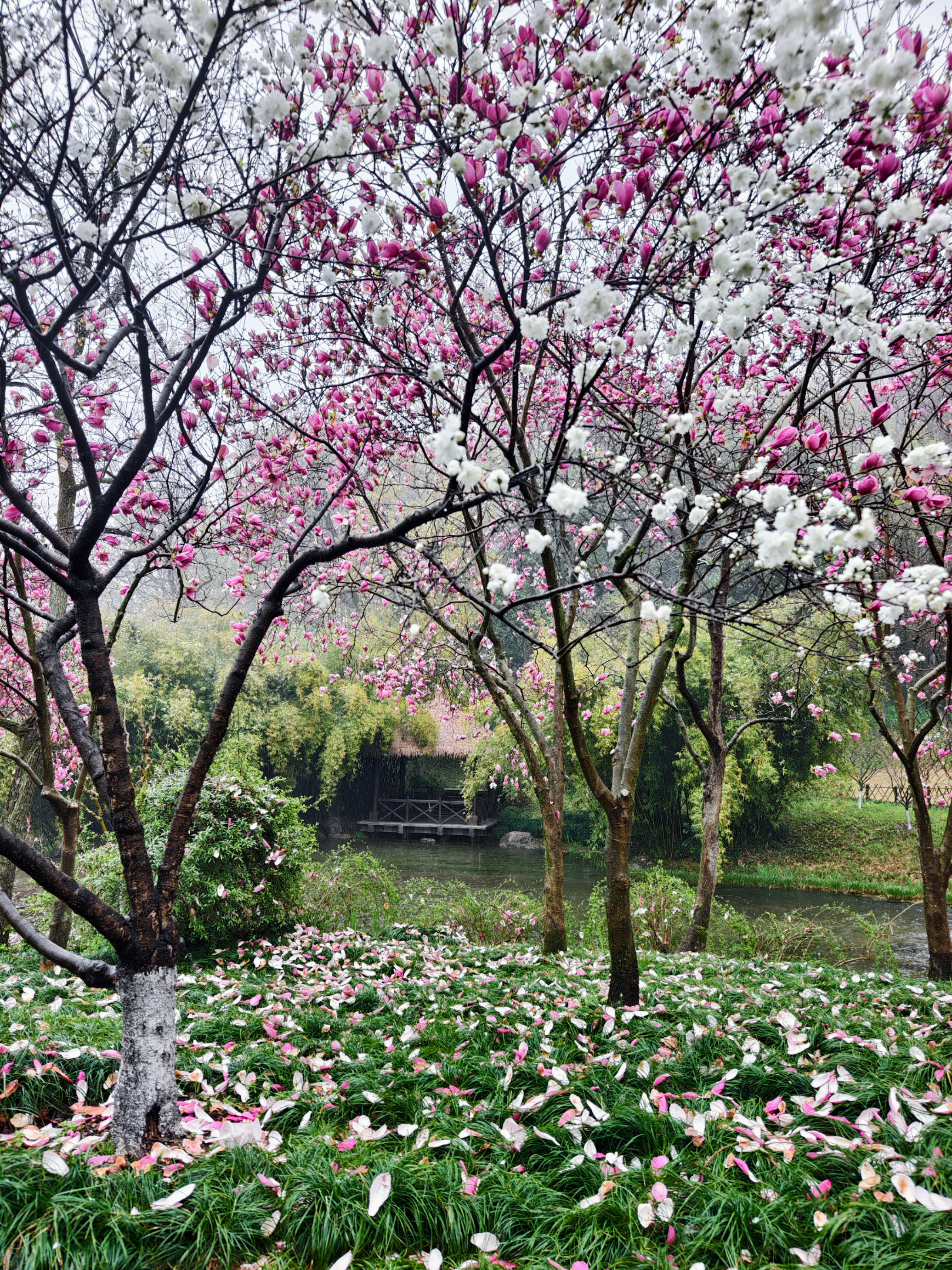 三月细雨蒙蒙,杭州乌龟潭、浴鹄湾笼罩在如烟似雾的雨幕中,远山含黛,近水浮翠,勾勒出一幅烟雨江南的水墨画卷。