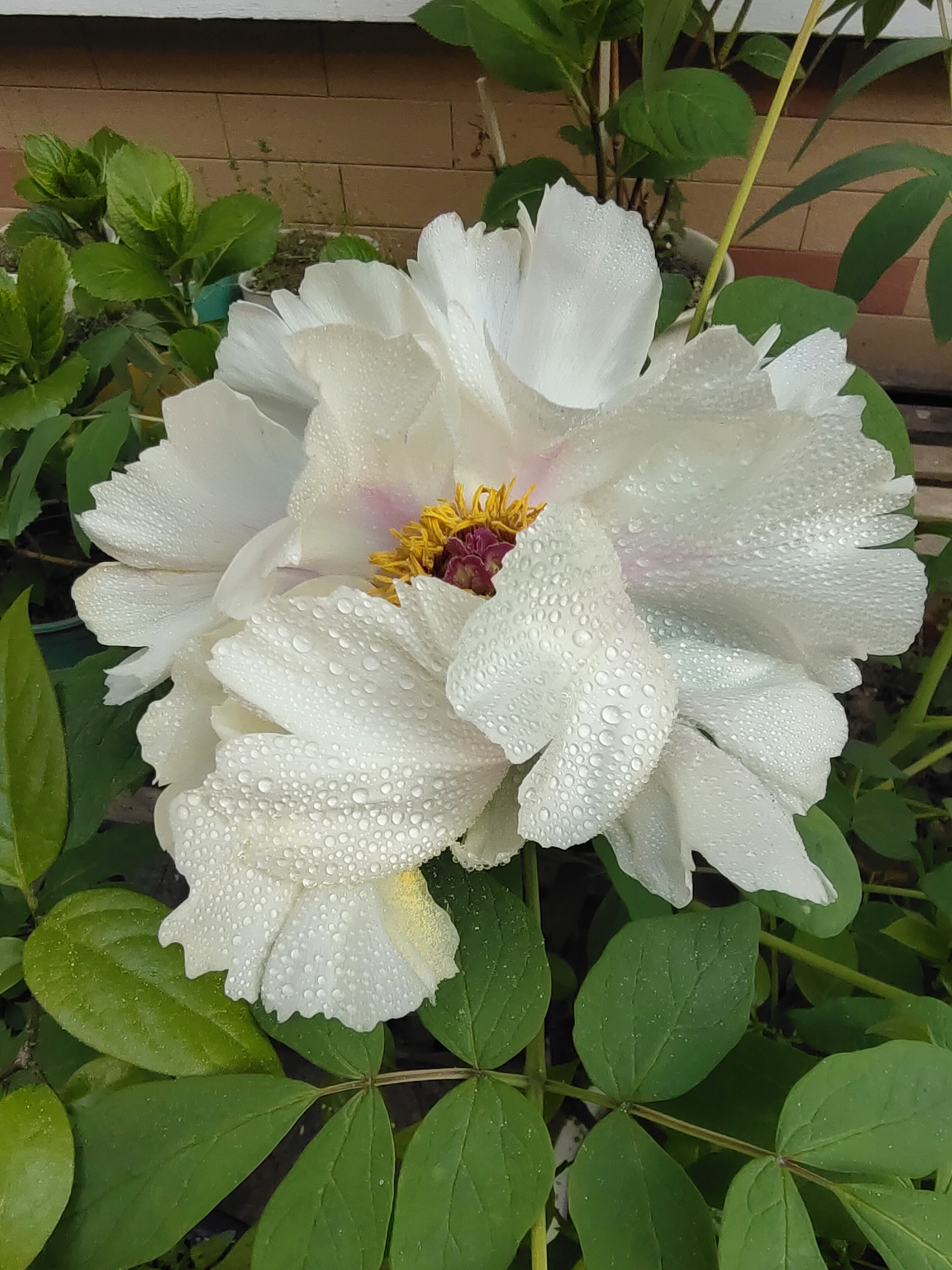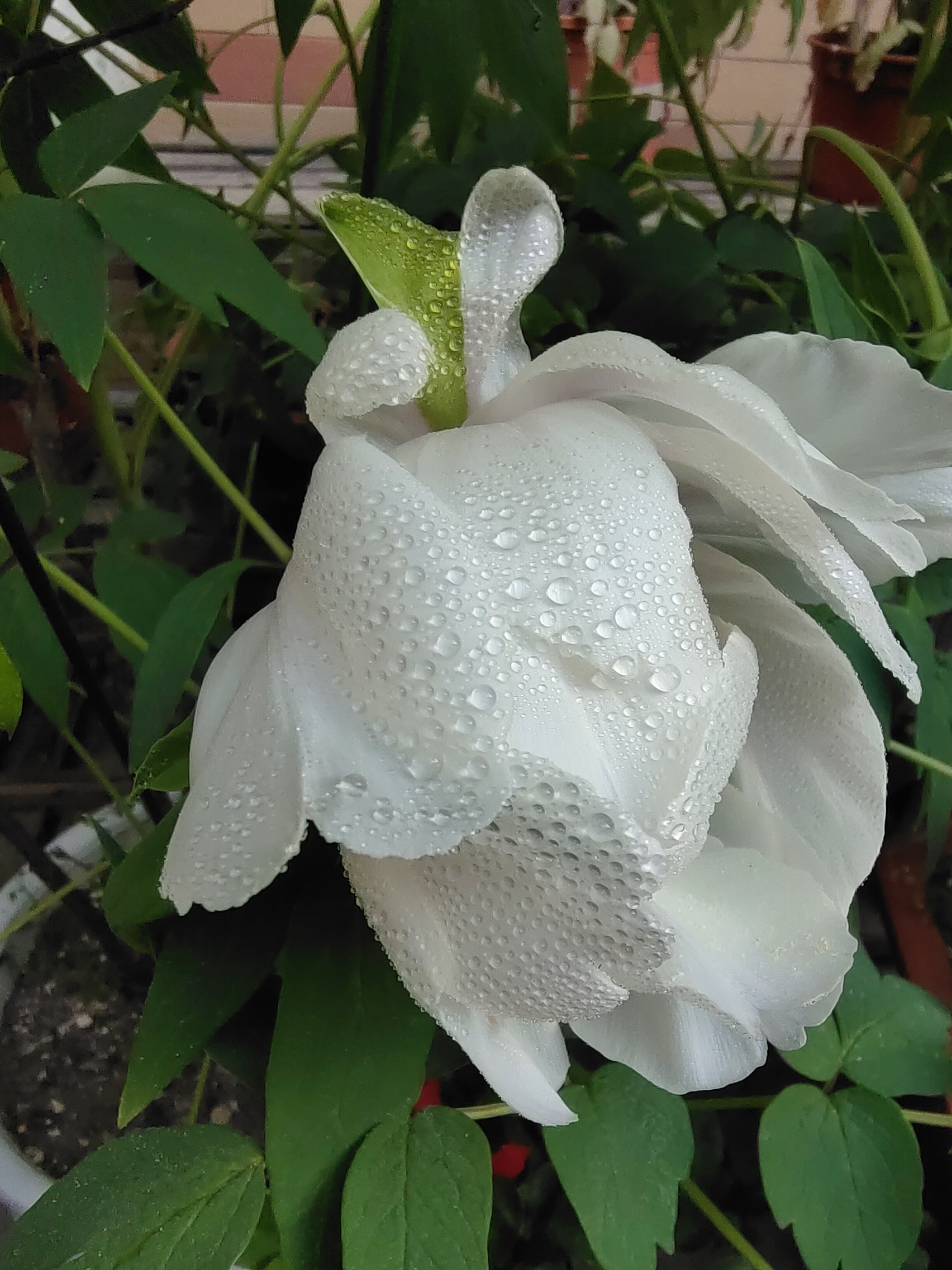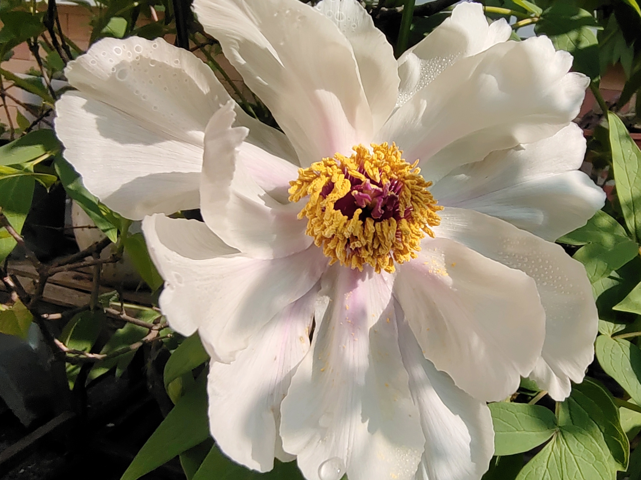 雨歇枝头,白牡丹噙珠初绽,素瓣托金蕊,绿意沁心——春在微光里低语。