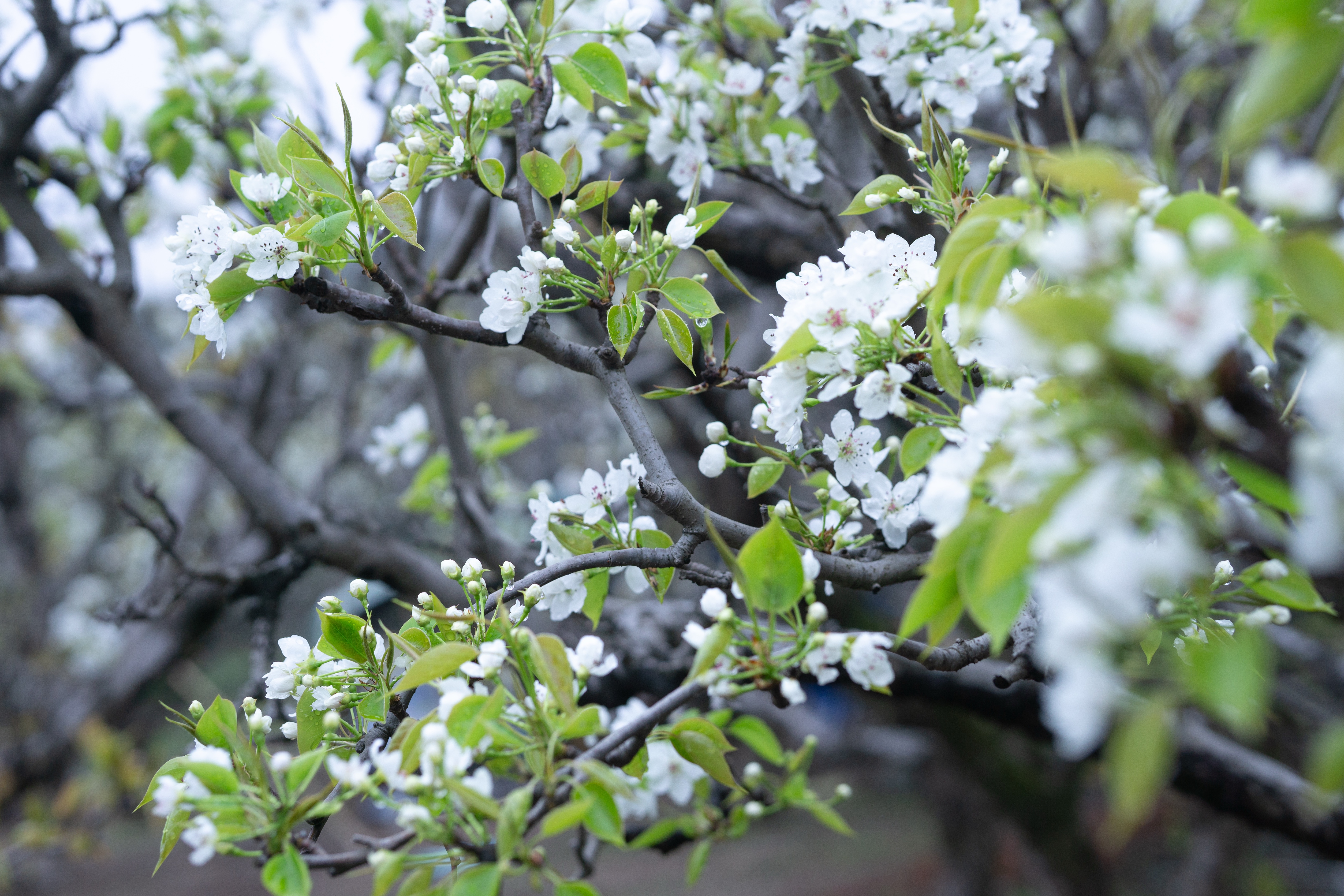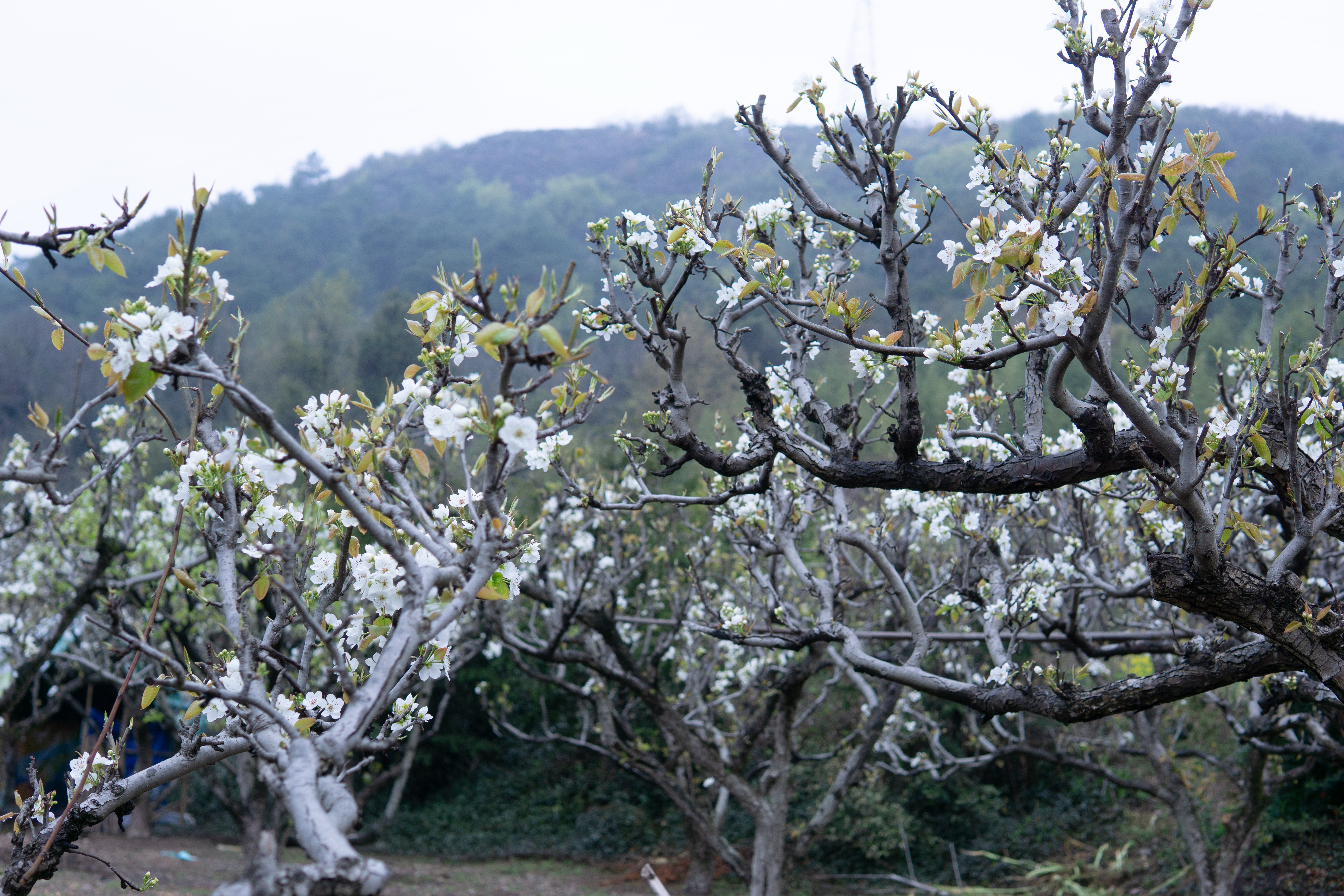 小港街道顾家桥村桃源农庄的梨园内,梨花已开满枝头,花虽不语,却写尽了春日诗意。