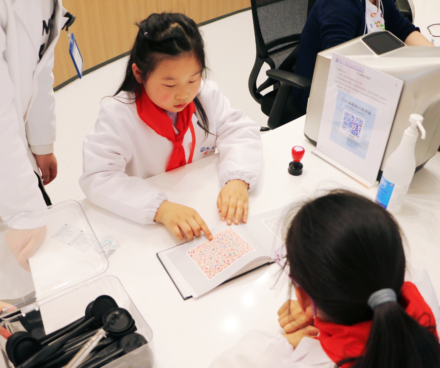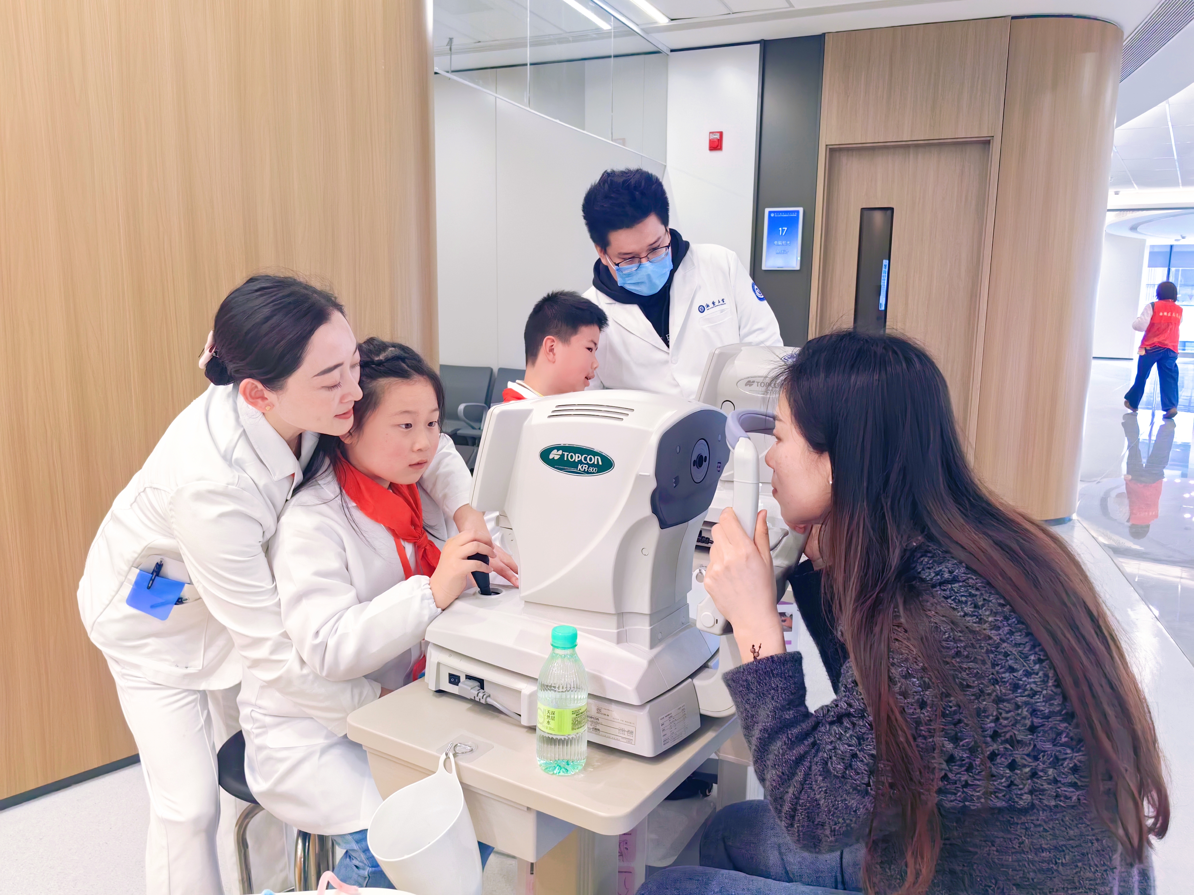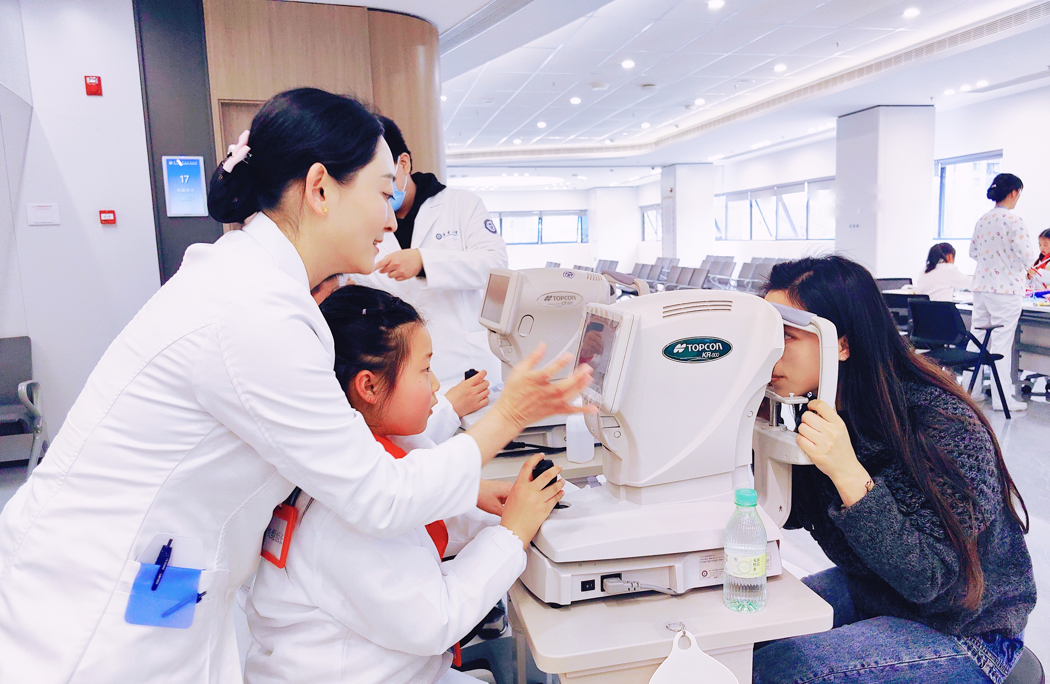 "瞳"梦职业启航,我的小小眼科医生梦! 在多日的期待中,我终于来到浙江大学医学院附属眼耳鼻喉科医院,参加“小小眼科医生”活动,满心欢喜地开启了这场奇妙的职业体验之旅。 刚踏入医院,换装仪式就点燃了我的热情。热心的护士姐姐为我穿上印有“浙医五官”标记的白大褂,还细心地帮我佩戴好工作牌。穿上这身神圣的白大褂,一股自豪感油然而生,我的心也跟着雀跃不已,仿佛瞬间化身成了一名真正的小医生。 第一轮趣味科普课堂——近视防控第一课,让我收获满满。医生用生动的比喻告诉我们,眼睛就像一台精密的相机,由角膜、晶状体、玻璃体、视网膜和眼轴组成。正常的眼球接近正圆形,而小朋友近视后,眼轴会不断拉长,每增长1mm,近视就会加深约300度,眼球也会变成椭圆形。更重要的是,眼轴一旦拉长就无法缩短,儿童近视大多是轴性近视。这堂课让我学到了许多护眼知识,充实了我的知识宝库。 第二轮职业体验环节,我正式化身小小眼科医生,为“病人”测视力、电脑验光、检测色盲。站在E视力表前,我手持指示棒,由上至下耐心地为小病患检测视力,先测裸眼视力,再测戴镜视力,最后认真叮嘱:“你的眼镜配得非常专业!以后一定要好好保护眼睛哦!”在医生的指导下,我还操控着精密的高科技仪器,为妈妈做电脑验光和眼压检测。我握着操纵杆,让妈妈注视仪器中的绿色光点,精准捕捉瞳孔数据,完成双眼检查后,一键打印出检查报告单,并为妈妈仔细分析。得知妈妈是低度数近视,眼压也一切正常,我和妈妈都开心地笑了。这次体验让我过足了当医生的瘾。 最后是义诊活动,专业又耐心的医生为我和妈妈做了全面的眼部检查,包括视力测试、电脑验光、裂隙灯检查、眼轴测量。最让我惊喜的是,我的视力非常好,还有充足的远视储备,医生们都夸赞我日常护眼做得特别棒,我心里乐开了花。 活动愉快的结束了,最后的最后我还收获了一张荣誉证书。这份喜悦一直陪伴着我,直到回家睡觉前,心里依旧美滋滋的。这场“小小眼科医生”活动,不仅让我圆了医生梦,更让我懂得了保护眼睛的重要性! ——杭州公益小天使 叶馨泽