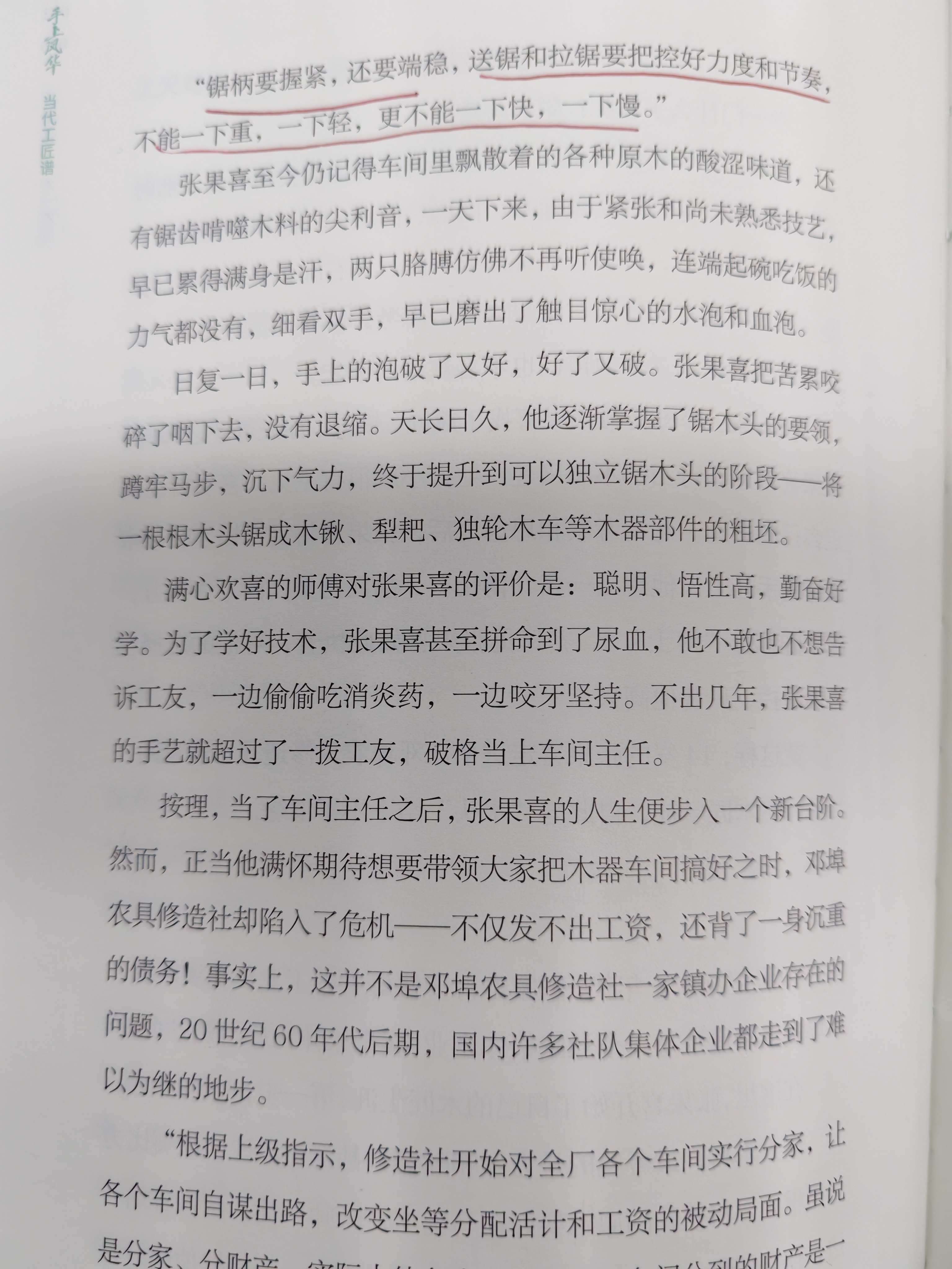 太喜欢这种沉浸式阅读的感觉,阅读《手上风华》第二天,每个人物都有着自己鲜活的故事和独特的经历。书中人物虽身处地铁、核电、国瓷、钢琴调律等不同领域,却共享同一个信念:以数十年如一日的坚守,在平凡中铸就卓越。 南翔的文字朴实无华,却极具穿透力。他写核电维修技师如何在“隐形冠军”之路上攻坚克难,写国瓷色彩搭配师如何从河南农村起步,夜班后辗转两小时公交车求学,最终将东方美学挥洒于国宴用瓷之上。这些故事没有华丽辞藻的堆砌,却因真实而动人,你能读到他们手上的老茧、凌晨的灯火、失败后的重整旗鼓,也能读到南翔老师在采访时的耐心细致。 这本书的可读性极强,不论你是处在什么年龄段,对什么感兴趣,学什么专业,相信你都能在这些“起于平凡,臻于优秀”的生命轨迹中找到共鸣。 《手上风华》它不只是一部工匠群像,更是一曲对劳动价值的深情礼赞。翻开它,你会看见一双双平凡的手如何连接智慧的大脑,将"中国制造"的铭牌擦拭得清亮夺目。这是一本值得各个年龄段读者细细品味的时代记录。
