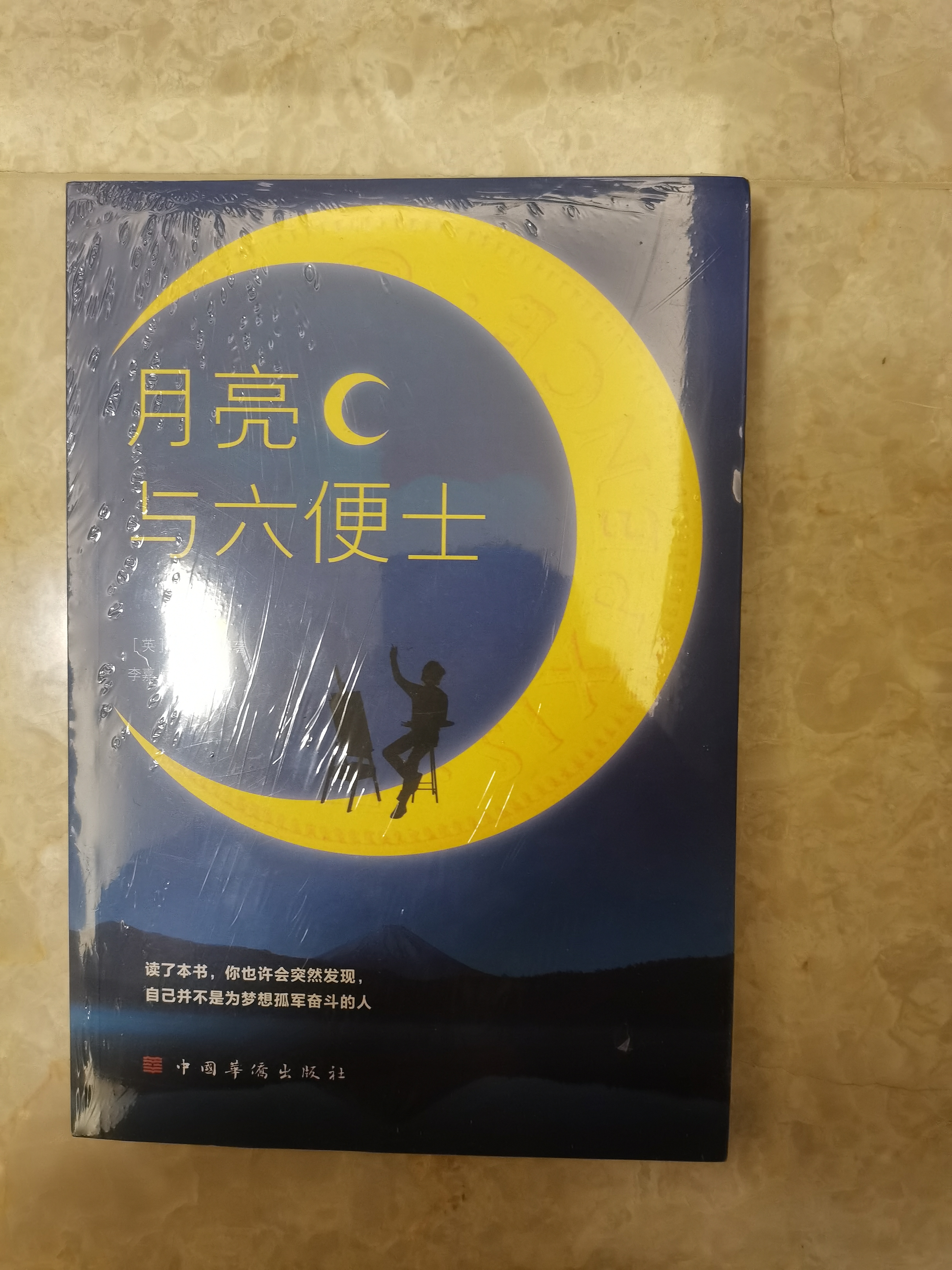 翻到《月亮与六便士》书封——黄月高悬,画家剪影仰望,像极了今晚拍完夜景抬头那秒:六便士在兜里,月亮在天上~