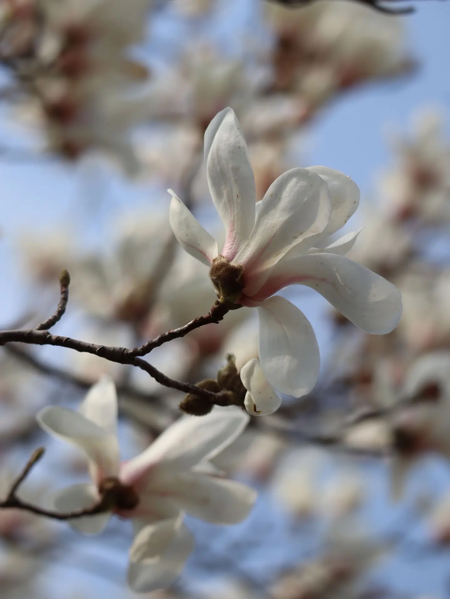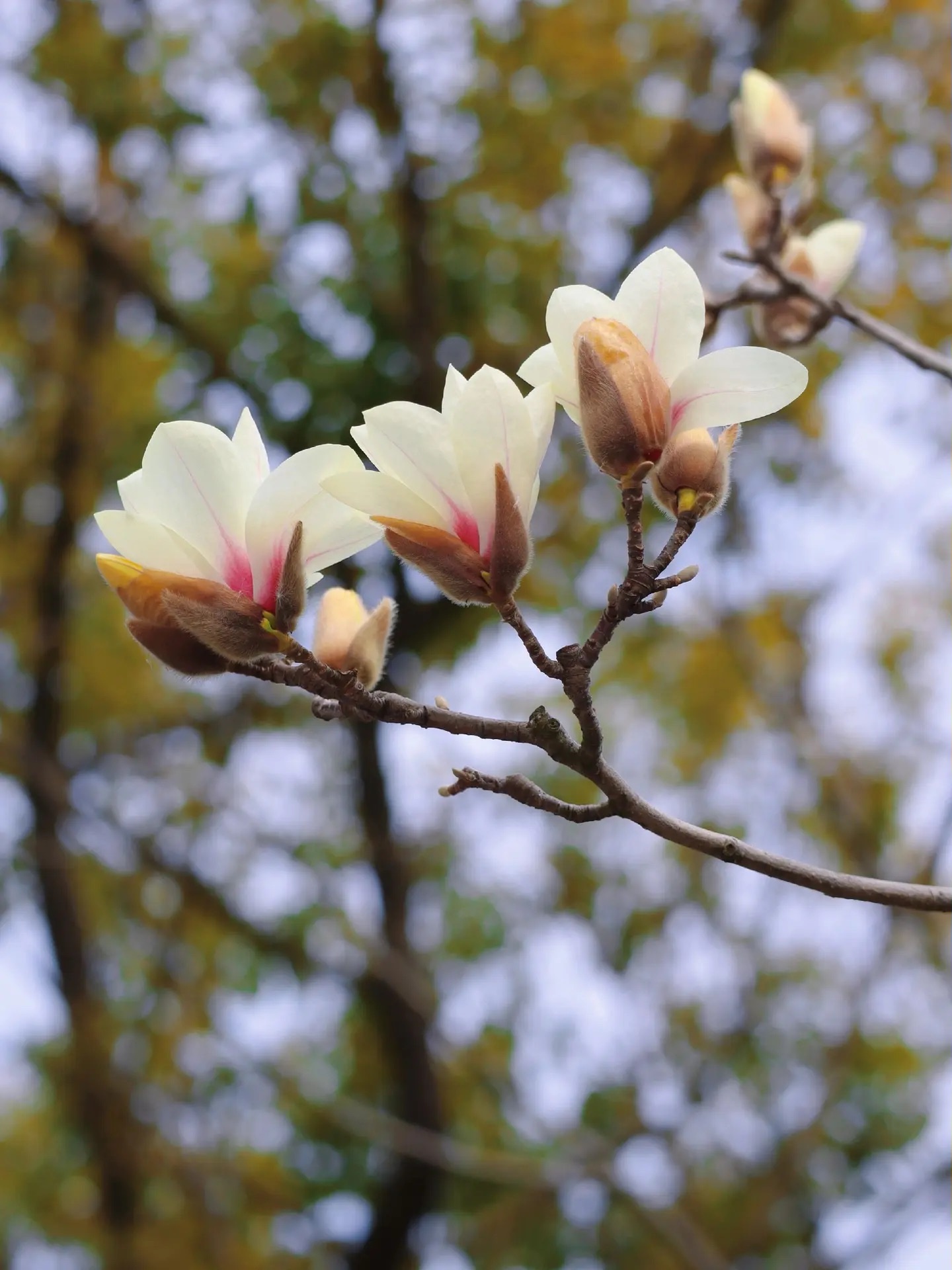 今早溜达到公园,玉兰正开得热闹!白瓣粉心,像小仙女踮脚站在枝头,蓝天当背景板,绿叶悄悄打光~随手仰拍几张,花瓣舒展得恰到好处,连花苞都毛茸茸地萌翻了。春天不说话,但花一开,整个人就自动调成温柔模式🌸 手机举高高,快门按不停~