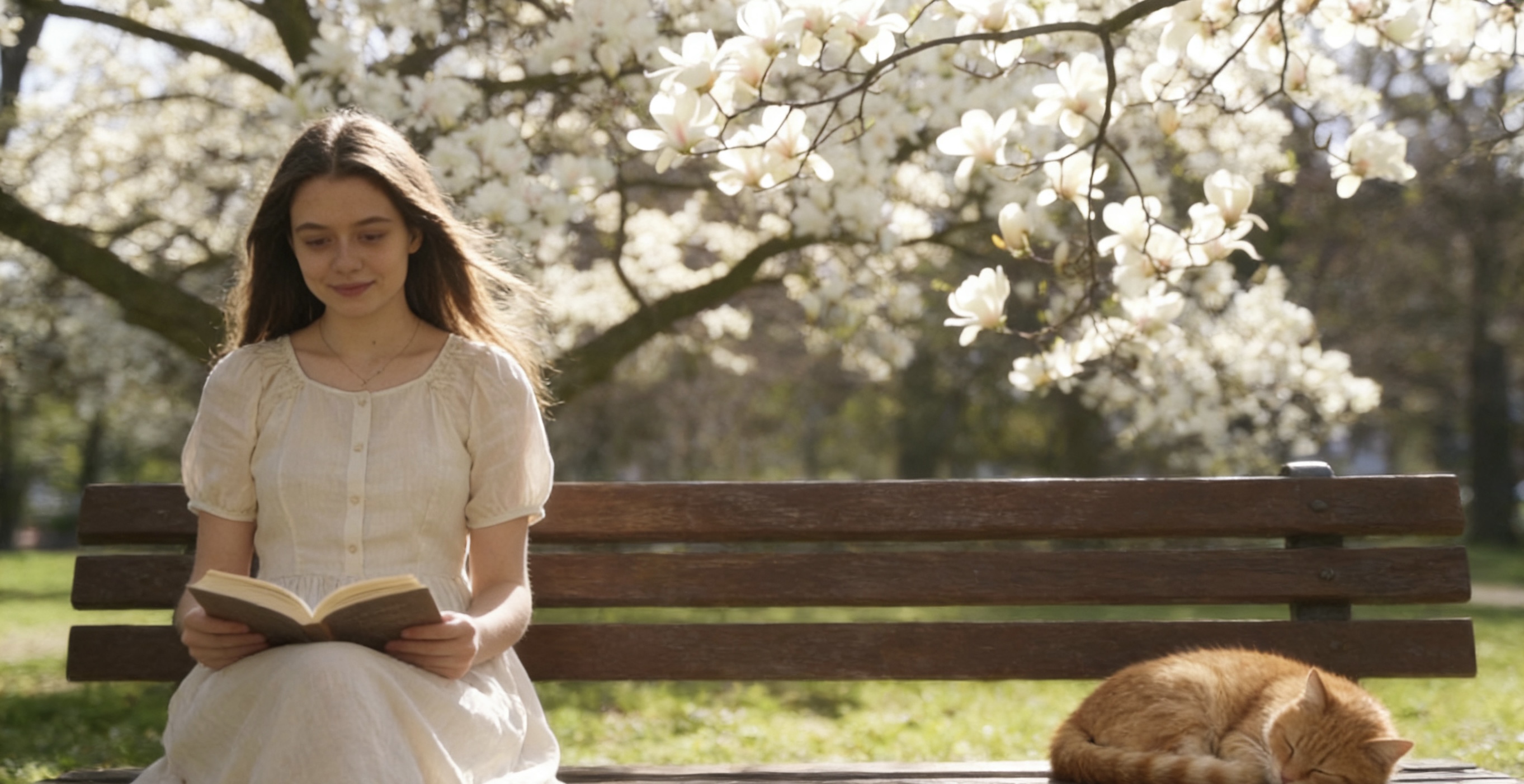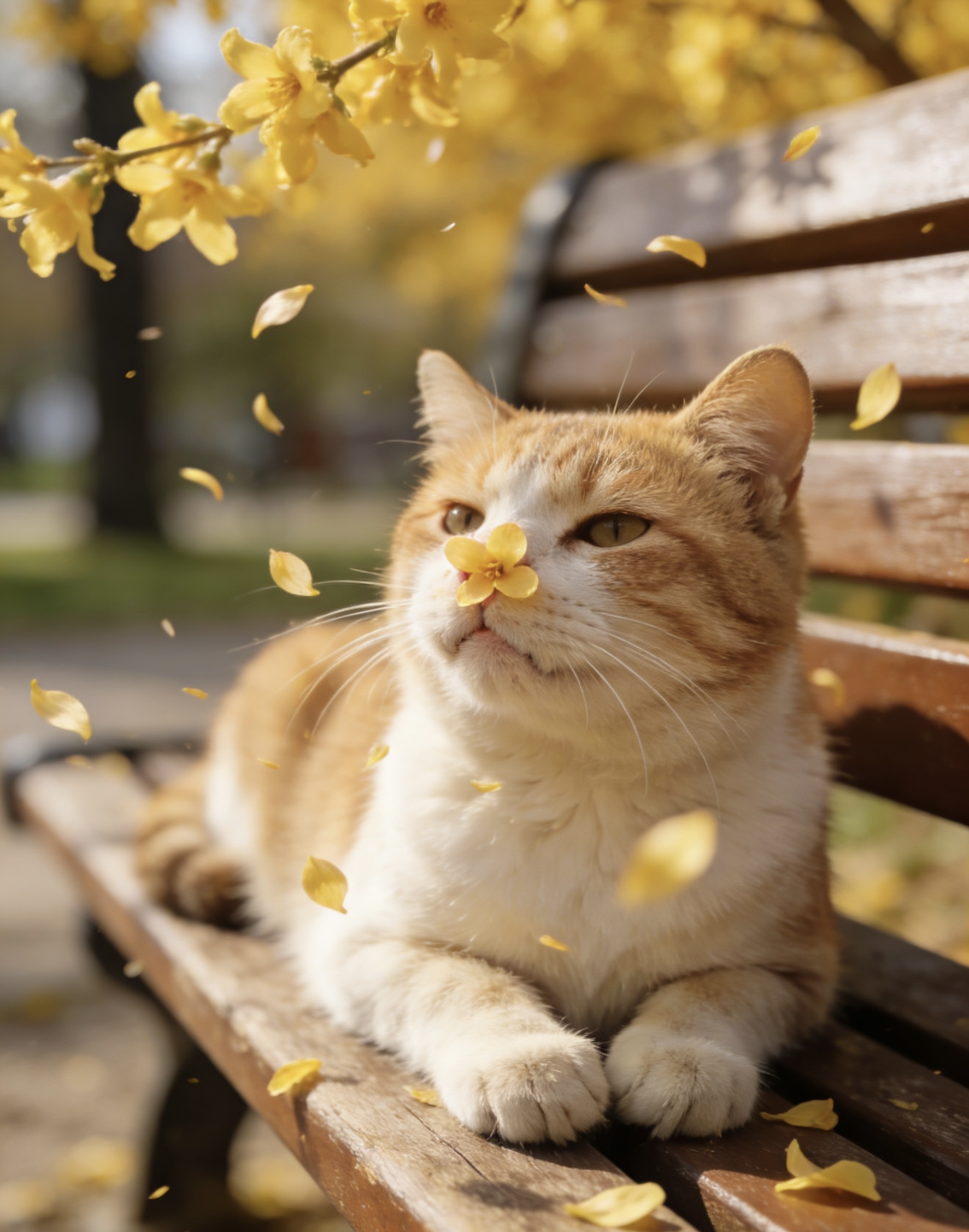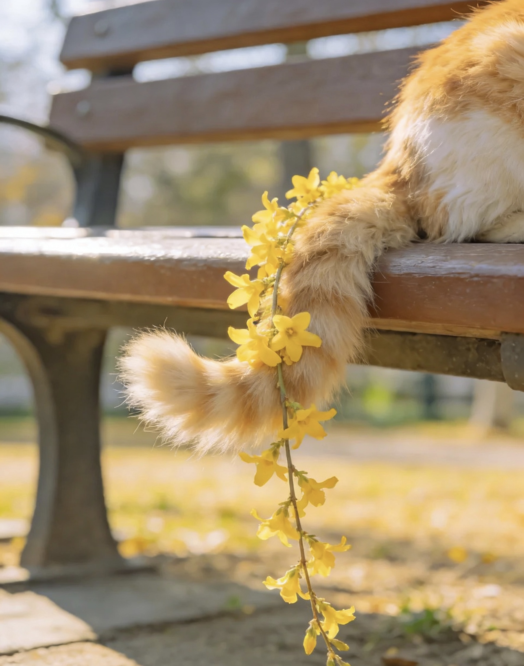 在公园长椅上撞见一场午睡。猫蜷在长椅角,尾巴尖搭在迎春花的枝条上,花瓣落在它的鼻尖,它也只是皱皱鼻子,把梦往春天里又缩了缩。我坐在旁边读《瓦尔登湖》,梭罗写“春天的意志和暖流正在逐渐地驱走寒冬”,合上书时,阳光刚好穿过梧桐新叶,在书页上印下细碎的光斑,像春天偷偷盖的邮戳。