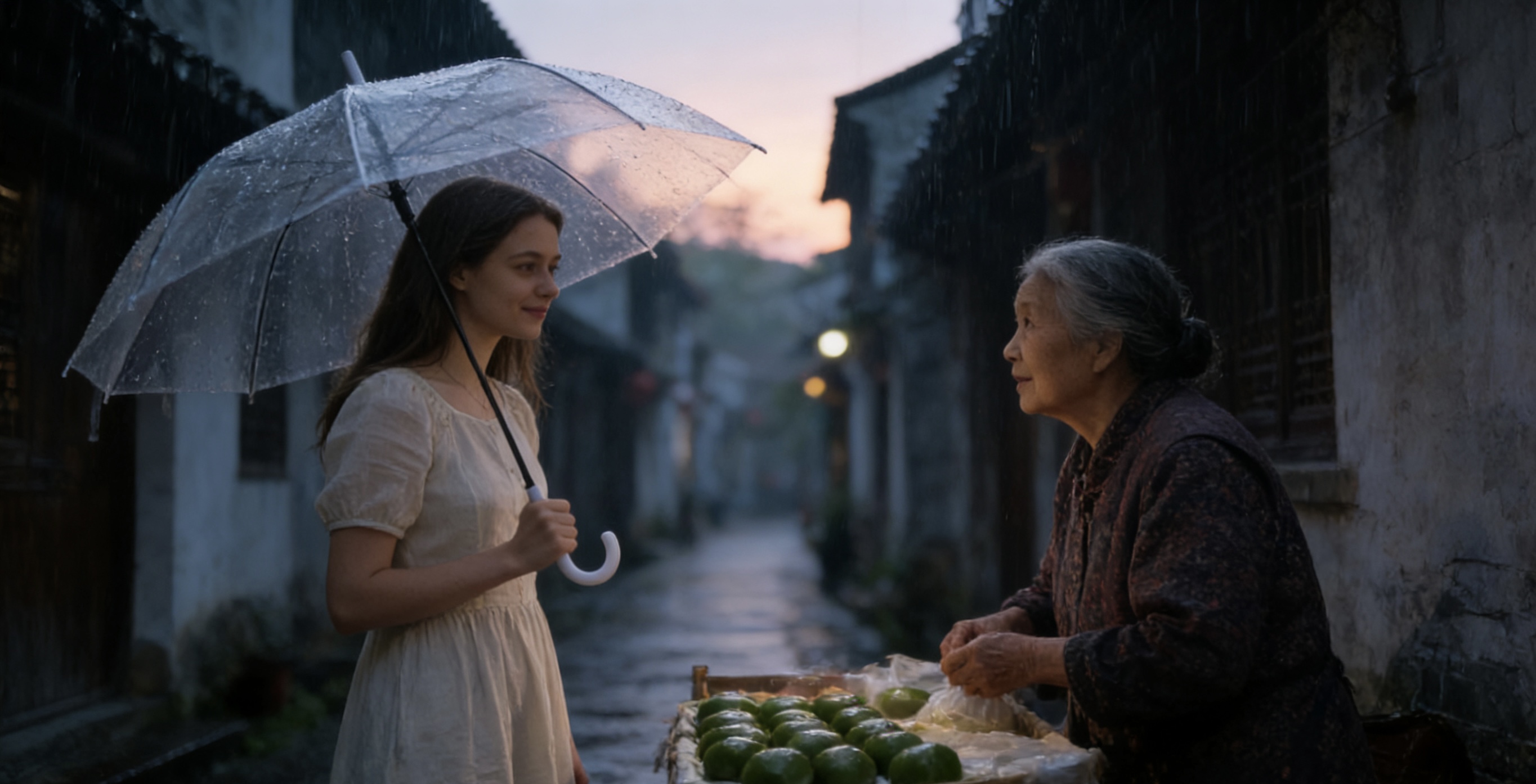 雨是春天的针线,把天地缝得软乎乎的。我撑着透明伞走在巷子里,墙根的苔藓绿得发亮,瓦檐滴下的雨珠砸在青石板上,溅起小小的水花。路过杂货店时,阿婆正把刚蒸好的青团摆出来,竹篮上盖着洗得发白的蓝布,掀开时,艾草的香气混着雨气扑过来,咬一口,是春天最扎实的甜。