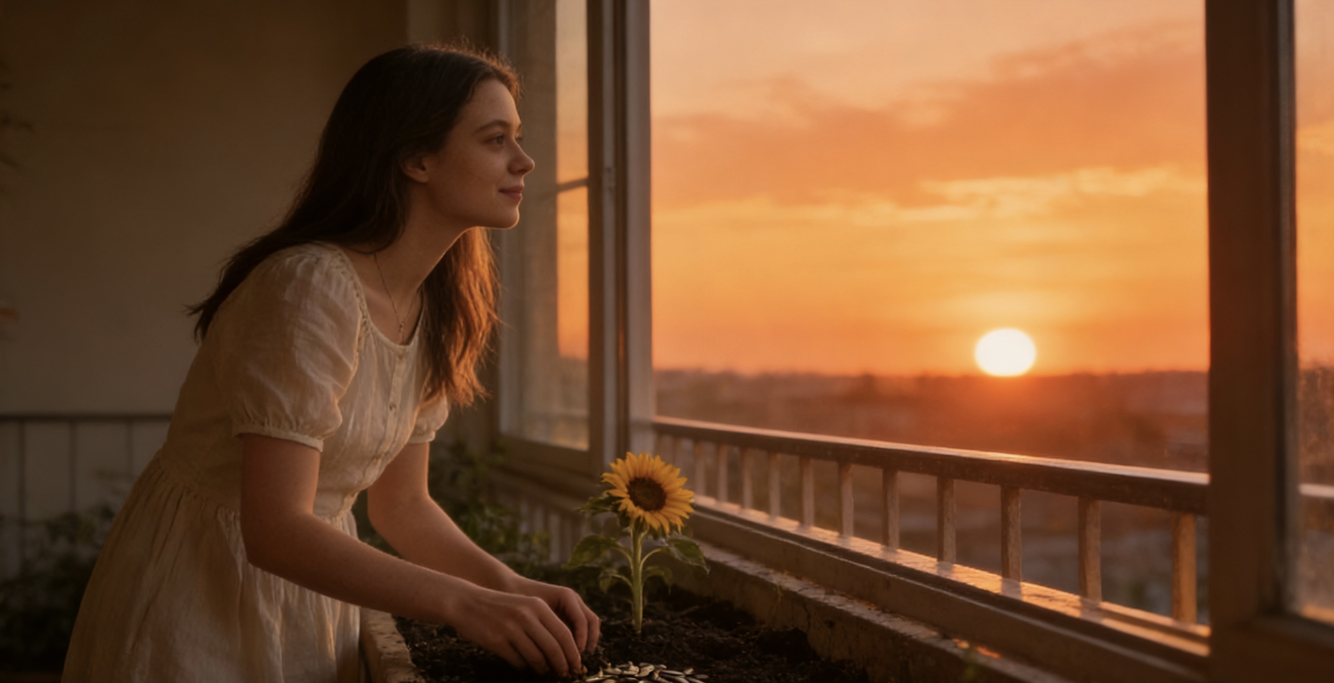 此刻夕阳正把云染成蜜色,我对着花盆轻轻说:“下一个春天,我们还要一起浪费时间。”