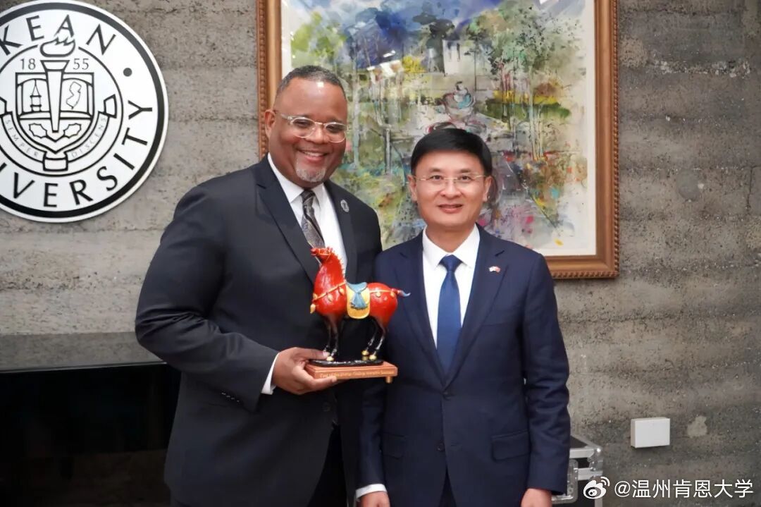 聚焦温肯,廿载携手,再启中美教育合作新征程!温肯签约创办20周年庆祝活动在美肯举行 美东时间3月26日晚,美国肯恩大学一座古老礼堂内,一场为庆祝温州肯恩大学签约创办20周年而举办的活动在此举行。温州肯恩大学党委书记、理事长潘建中,美国肯恩大学校长拉蒙·雷波列特携中美肯恩两校代表,以及来自新泽西州各界、中国驻纽约总领馆代表等近百位嘉宾同场共庆温州肯恩大学20年办学硕果,共话中美教育交流美好未来。