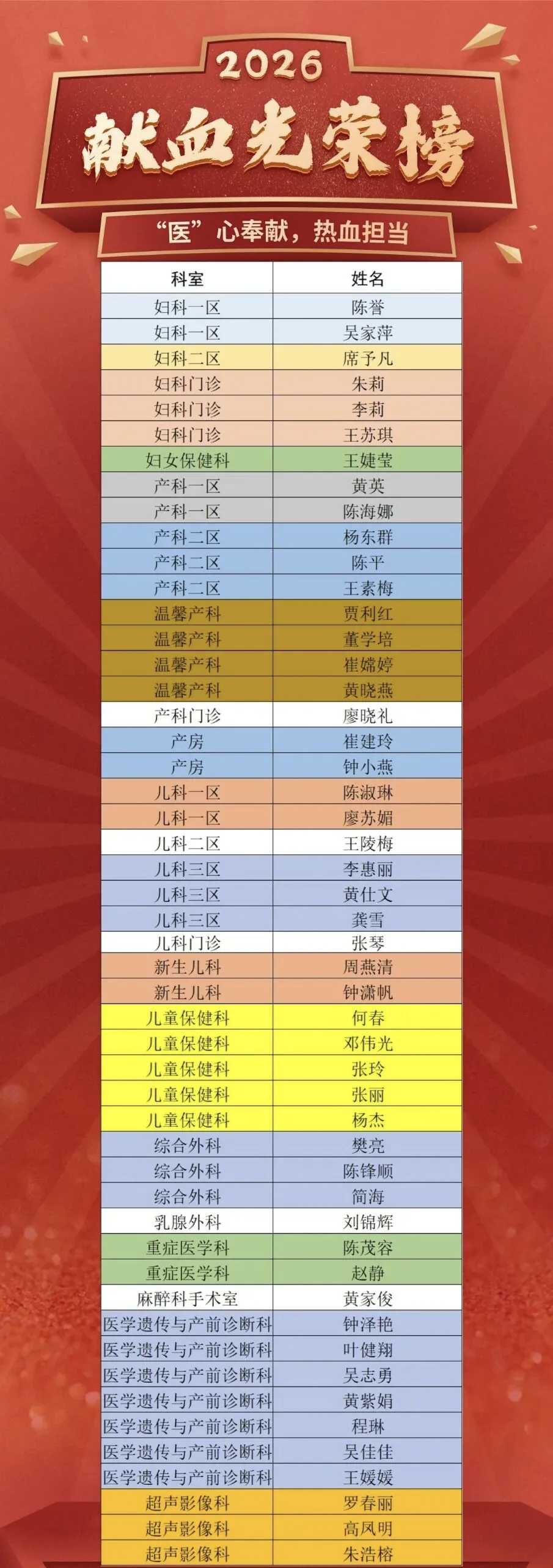 无偿献血,关爱地贫,“医”心奉献,热血担当,广东惠州第一妇幼保健院医护人员义务献血光荣榜颁布