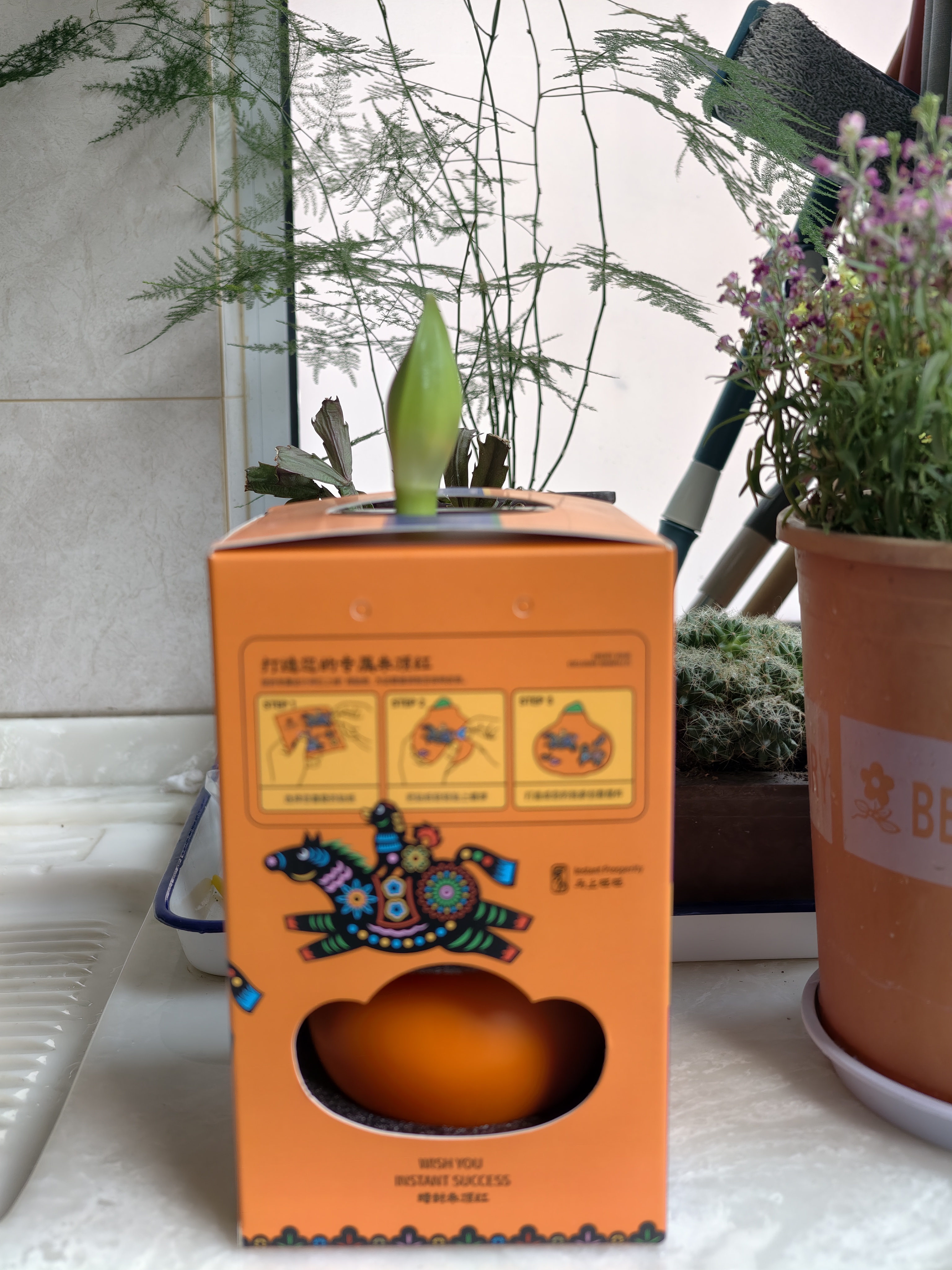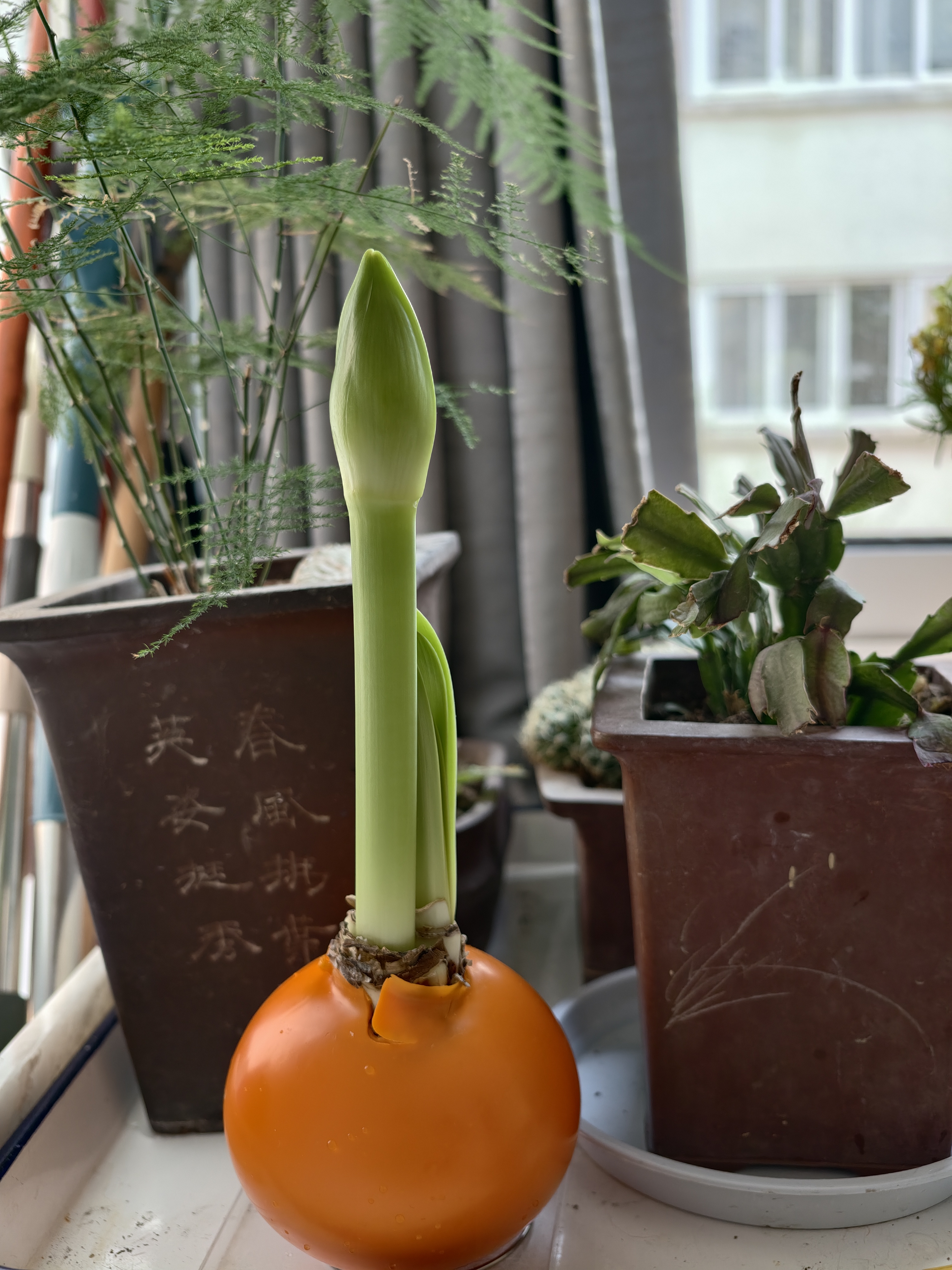 女儿买了一盆朱顶红的花,拆封后摆放出来,也蛮好看。拍好了才想起,还有好多漂亮的贴纸忘了贴了。过几天等开花了以后,再拍一次照片,晒出来给大家看。