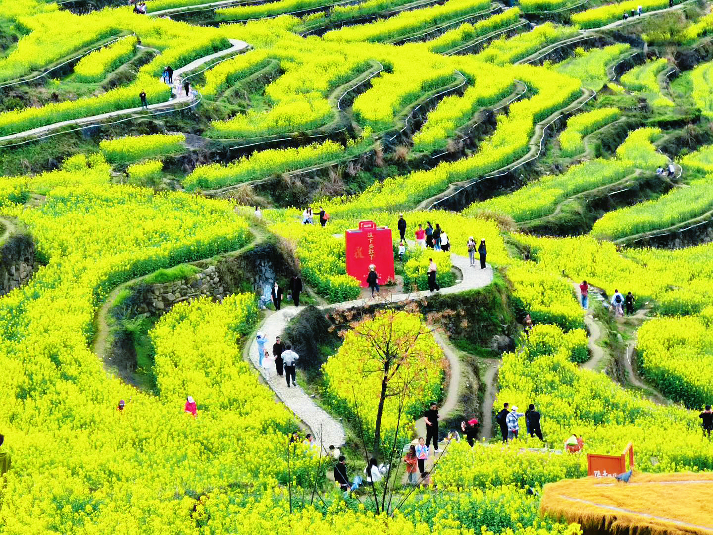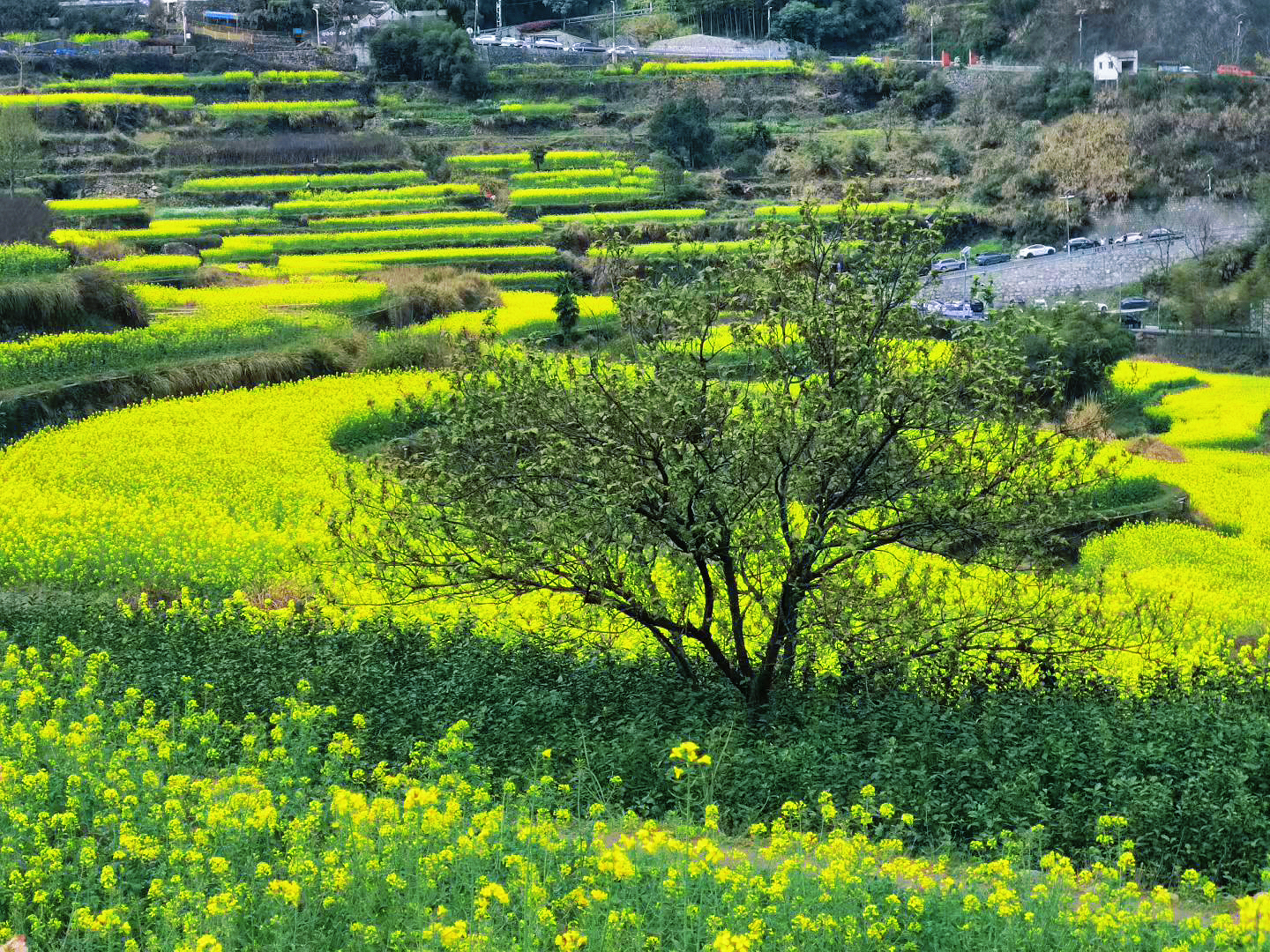 梯田叠金黄,菜花织春裳。风抚山野,时光酿诗行😊💐