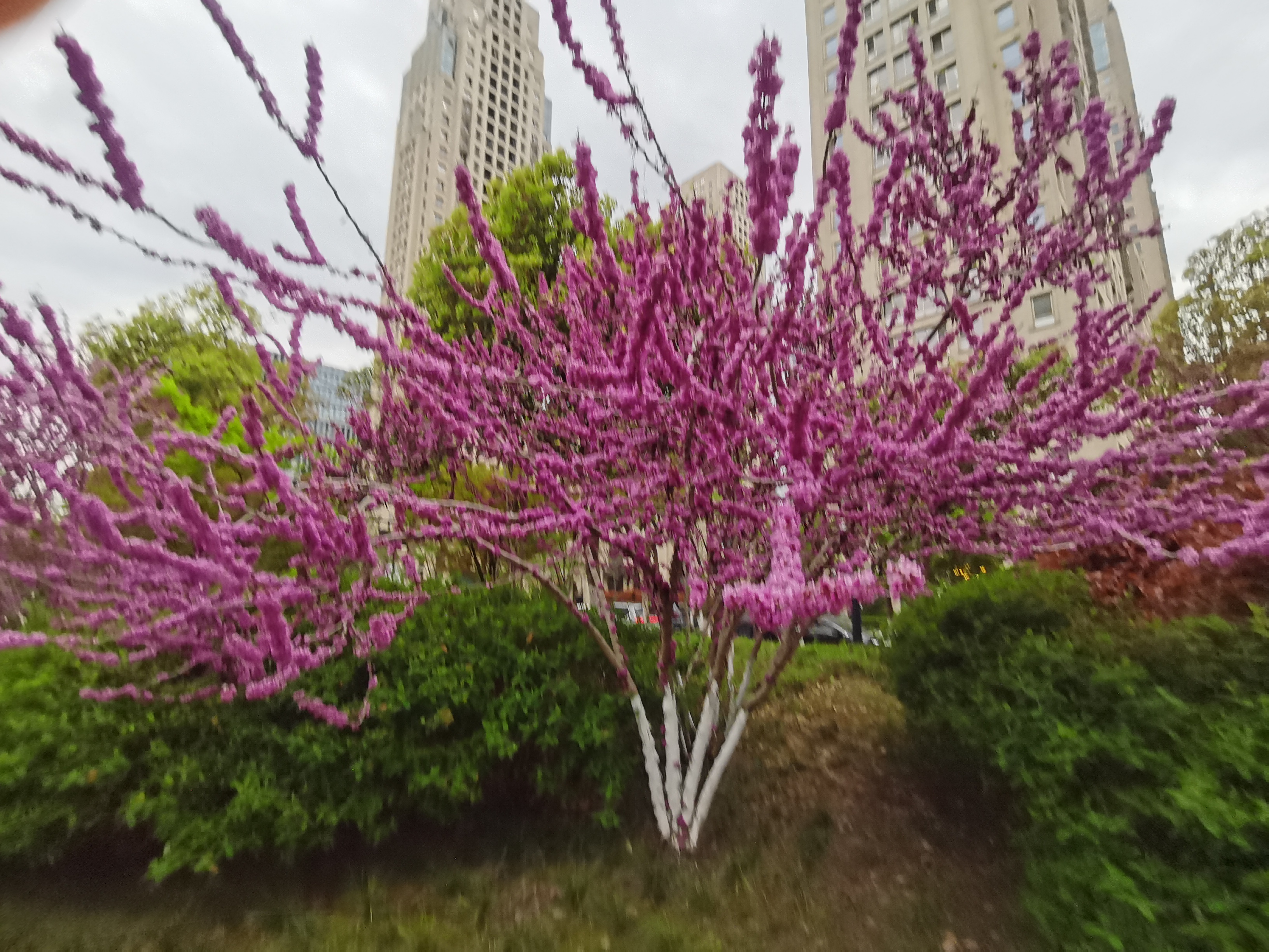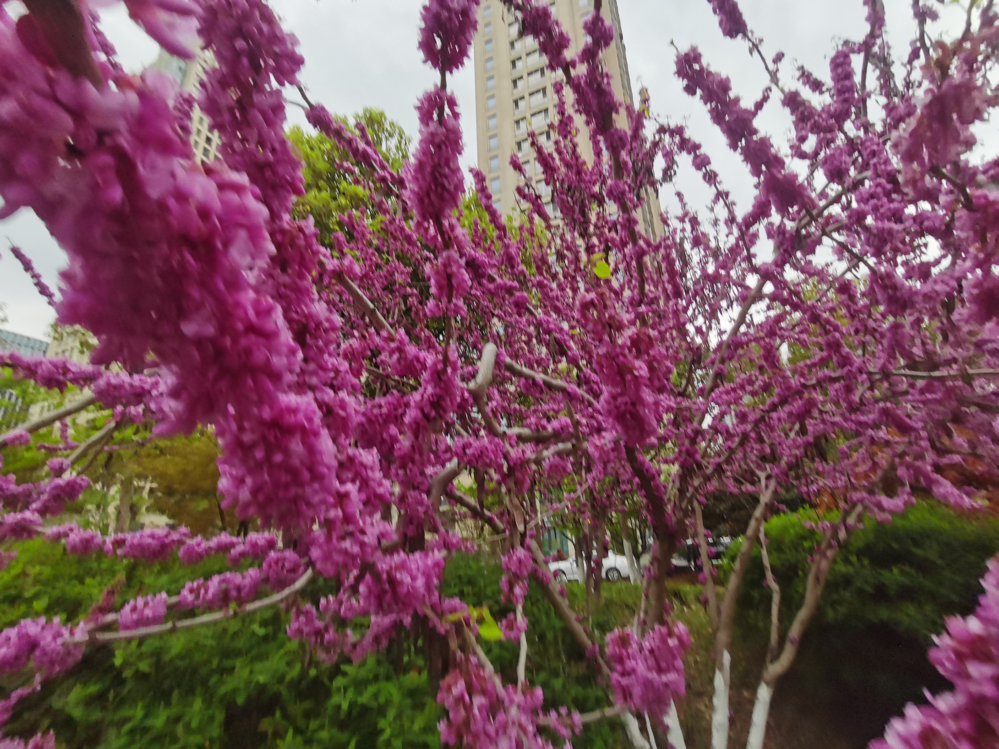 紫荆花开满枝头,城市公园里拍到自然与高楼的完美CP~