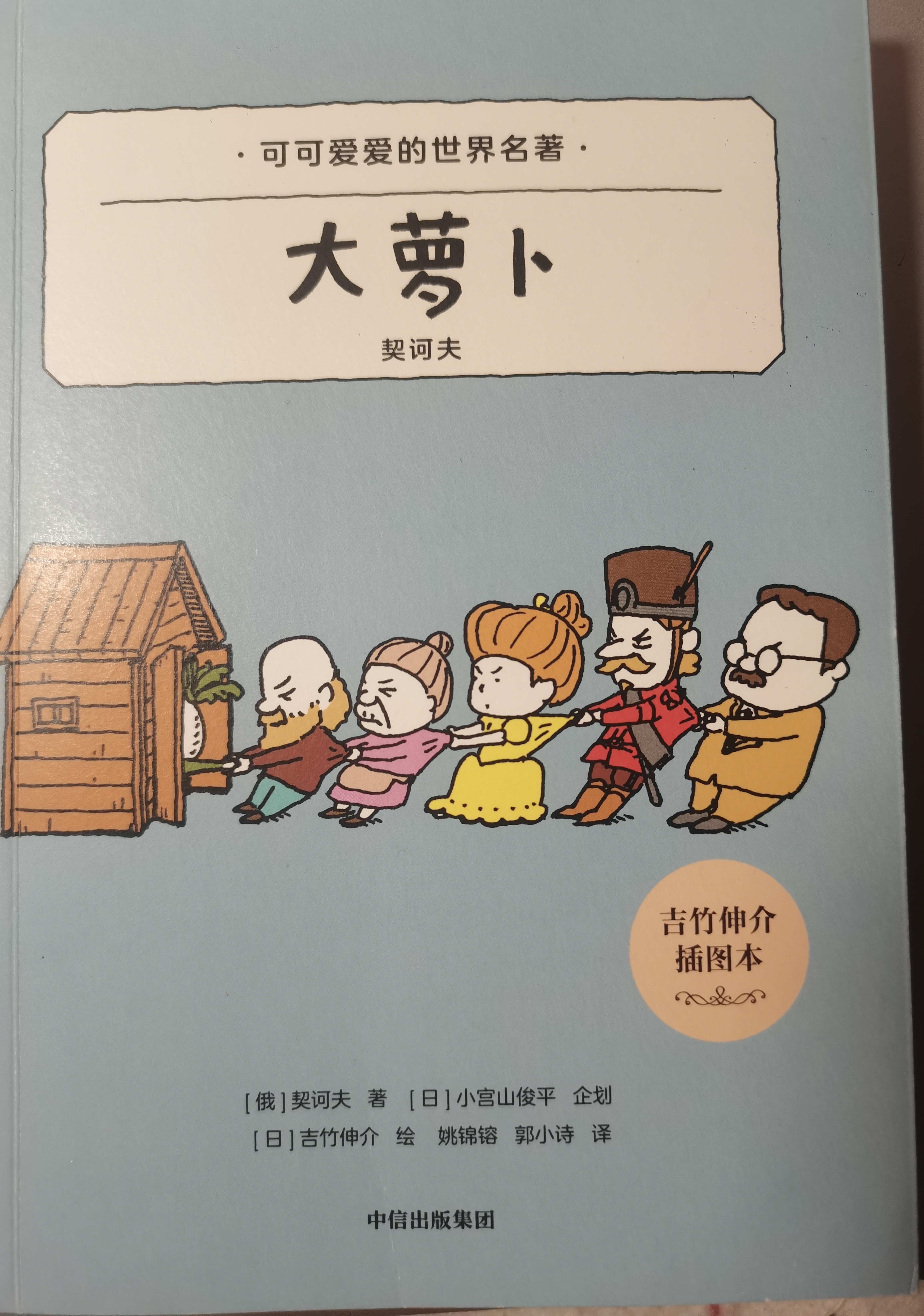 非常有意思的一本书。👍🏻😃 《大萝卜》阅读提纲: 一、核心作者简介 1. 原著:安东·巴甫洛维奇·契诃夫 (Антон Павлович Чехов) - 身份地位:1860-1904年,俄国批判现实主义作家,与莫泊桑、欧·亨利并称为“世界三大短篇小说巨匠”,也是20世纪现代戏剧的奠基人之一。 - 人生经历:出生于小商人家庭,半工半读完成学业,毕业于莫斯科大学医学系,常年行医。这段经历让他深度接触底层民众,深刻洞察人性与社会现实。 - 创作风格:擅长以极简的笔触截取生活片段,用幽默、讽刺的笔法揭露庸俗与丑恶,同时饱含对底层小人物的深切同情。代表作有《变色龙》《套中人》《万尼亚舅舅》等。 2. 插画:吉竹伸介 (Yoshitake Shinsuke) - 身份地位:1973年生于日本神奈川县,日本超人气绘本作家、插画家,被誉为“治愈系绘本大师”。 - 创作风格:画风简约呆萌,以敏锐的洞察力捕捉生活中的温情与荒诞。擅长用看似幼稚的视角解构深刻命题,打破成人与儿童的思维边界。代表作有《这是苹果吗也许是吧》《有呀有呀书店》等,曾多次斩获日本绘本大奖。 3. 译者:姚锦镕、郭小诗 - 姚锦镕:浙江大学外国语学院副教授,资深翻译家,长期从事俄国文学翻译,笔风精准传神。 - 郭小诗:北京第二外国语学院俄语语言文学硕士,深耕俄语文学领域,确保了译本的文学性与可读性。 二、内容简介 本书属于“可可爱爱的世界名著”系列,收录了契诃夫改编自俄罗斯民间故事的10个短篇佳作,核心篇目为《大萝卜》,同时包含《宝贝儿》《遛小狗的女人》等经典短篇。 - 核心故事《大萝卜》:原著源于家喻户晓的民间童话。故事从爷爷种出一颗巨大无比的萝卜开始,爷爷拔不动,喊来奶奶、孙女、小狗、小猫甚至小老鼠依次加入,大家手拉手连成一串合力拔萝卜。契诃夫以精湛的短篇小说技巧,将童趣与现实感融合,在欢笑中传递“团结力量大”的朴素智慧,也引发关于社会协作、理想与现实的深层思考。 - 其他篇目:通过短小精悍的故事,展现了契诃夫式的幽默与悲悯,既有对生活趣事的调侃,也有对人性温暖与社会百态的细腻刻画。 三、书籍特点 1. 经典与童趣的完美融合 将契诃夫深刻的批判现实主义文学,转化为适合儿童阅读的童趣化表达。保留原著的文学内核与思想价值,又通过叙事改编降低阅读门槛,让孩子亲近经典,同时也适合成人重读回味。 2. 吉竹伸介标志性插画加持 - 画风呆萌:采用吉竹伸介标志性的简约Q版画风,线条圆润,色彩柔和。书中人物(拔萝卜的众人)形象憨态可掬,极具画面张力与视觉吸引力。 - 图文互补:插画不仅是装饰,更是叙事的延伸。生动的插图能帮助孩子直观理解情节,通过画面猜测故事走向,降低阅读理解难度,激发想象力。 3. 轻量化阅读体验 - 篇幅短小:作为短篇小说集,单篇篇幅精炼,符合儿童的阅读专注时长,也便于碎片化阅读。 - 装帧精美:作为中信出版社出品的“可可爱爱”系列,装帧设计轻便美观,适合亲子共读与收藏。 4. 双向启蒙价值 - 儿童启蒙:在轻松阅读中培养团结协作意识与形象思维能力,种下对文学的审美种子。 - 成人反思:成年人阅读时,能透过童趣的外壳,看到契诃夫对社会、人性的深刻洞察,实现两代人的情感共鸣。