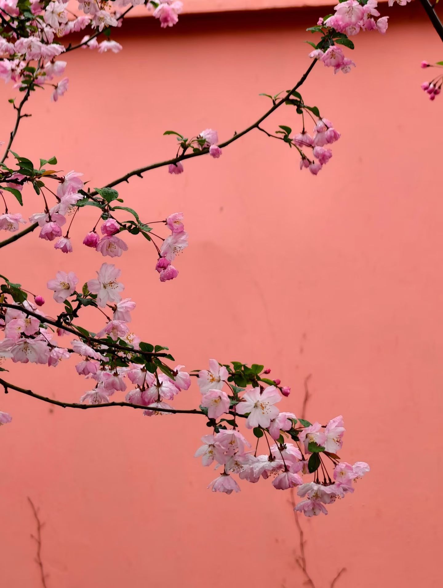 樱花蹭了粉墙,枝头闹春~随手一拍,连风都带甜味儿!