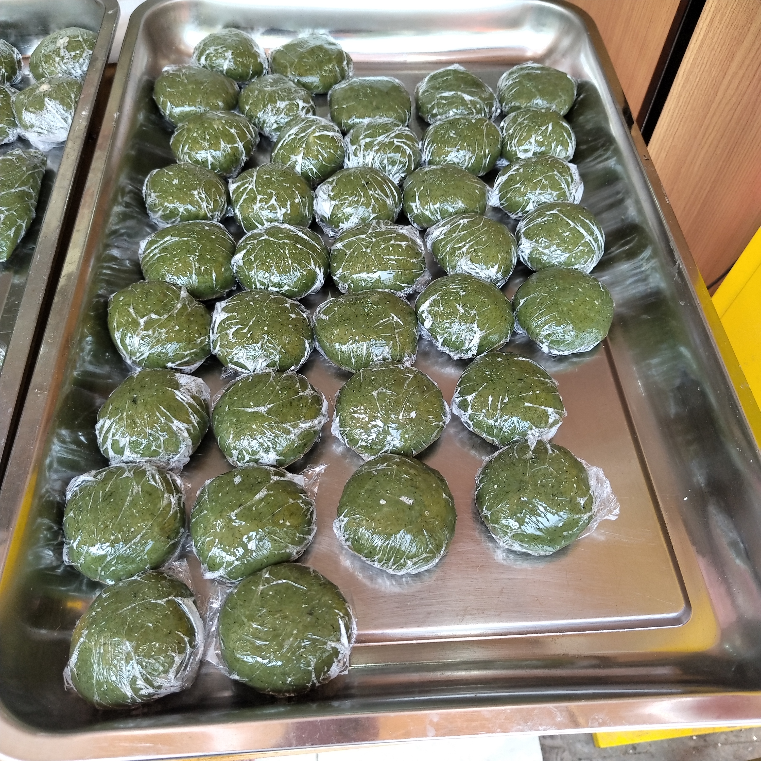 街头上随处可见的艾草团,春日限定,甜口咸口任选。