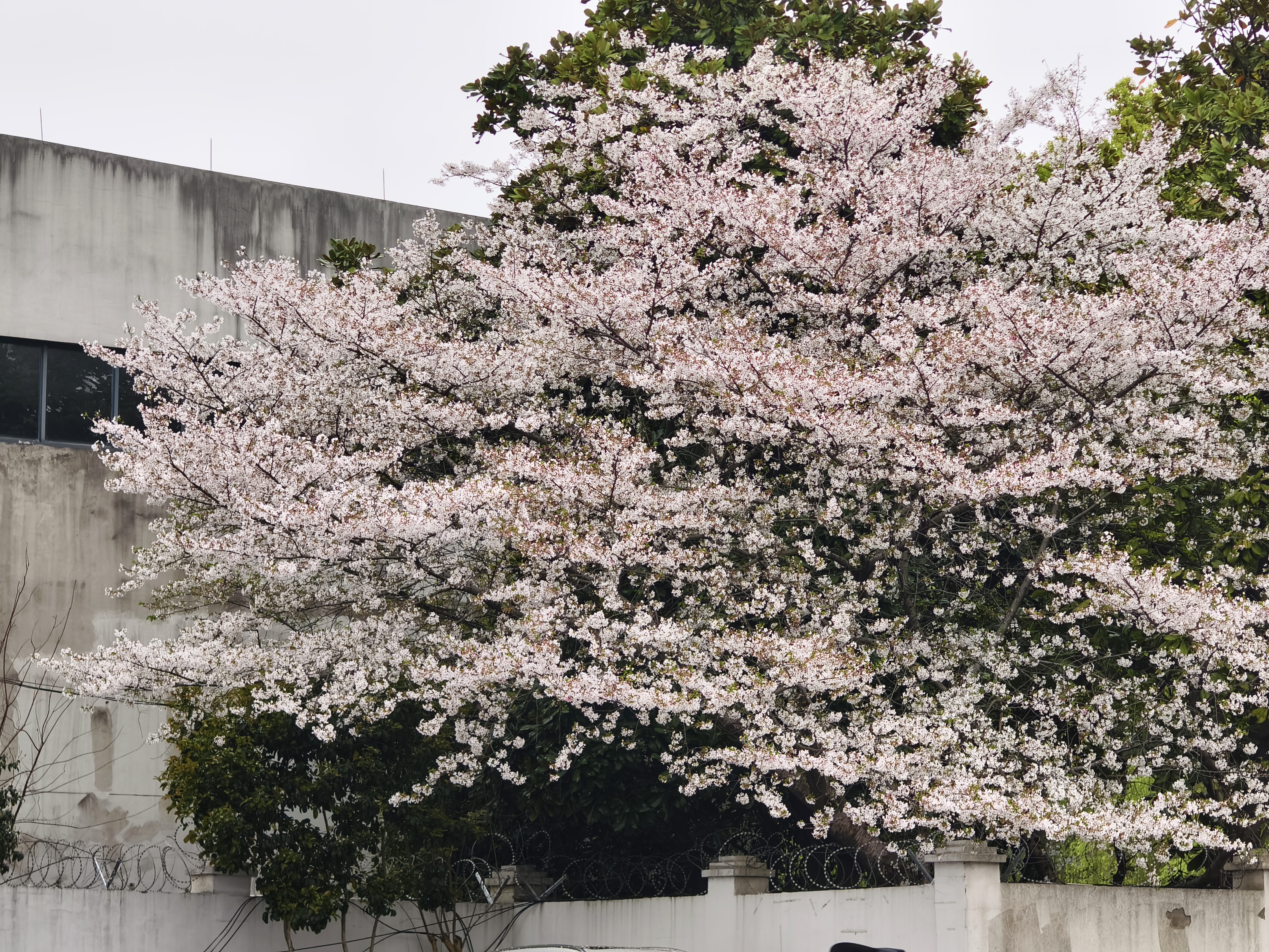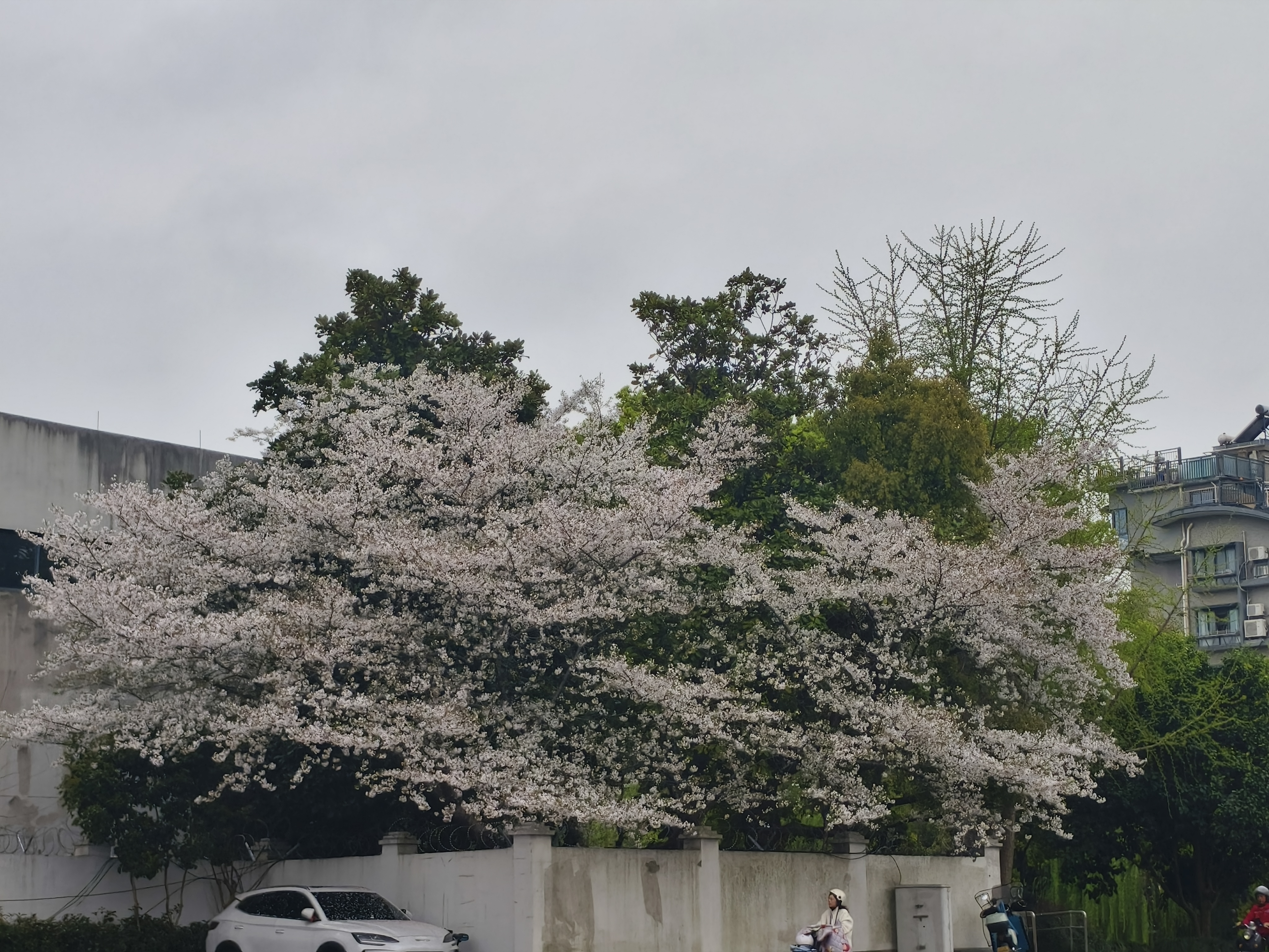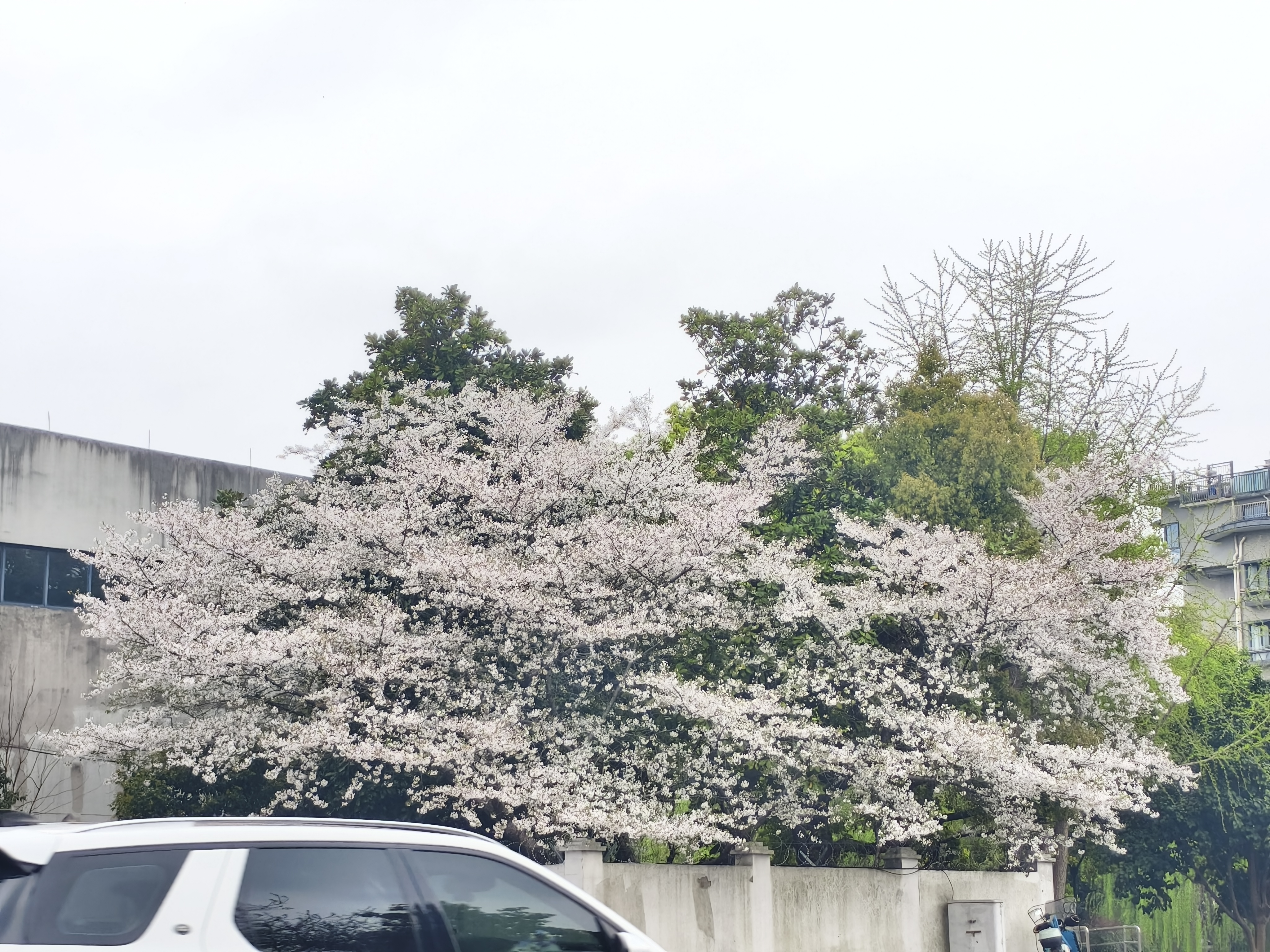 樱花盛开的季节,每天上下班途中,总忍不住为西湖消防大队的这棵樱花树促足!