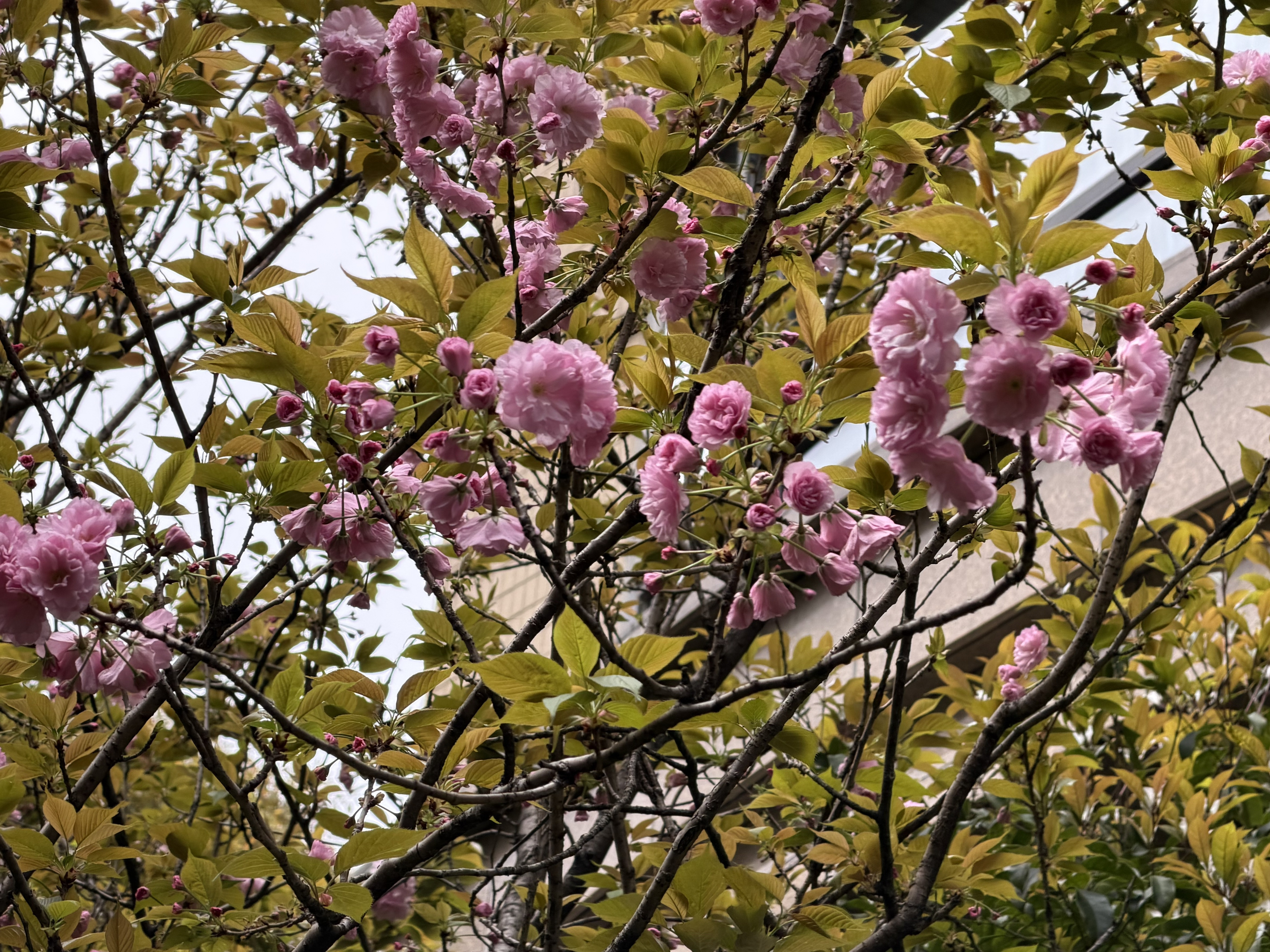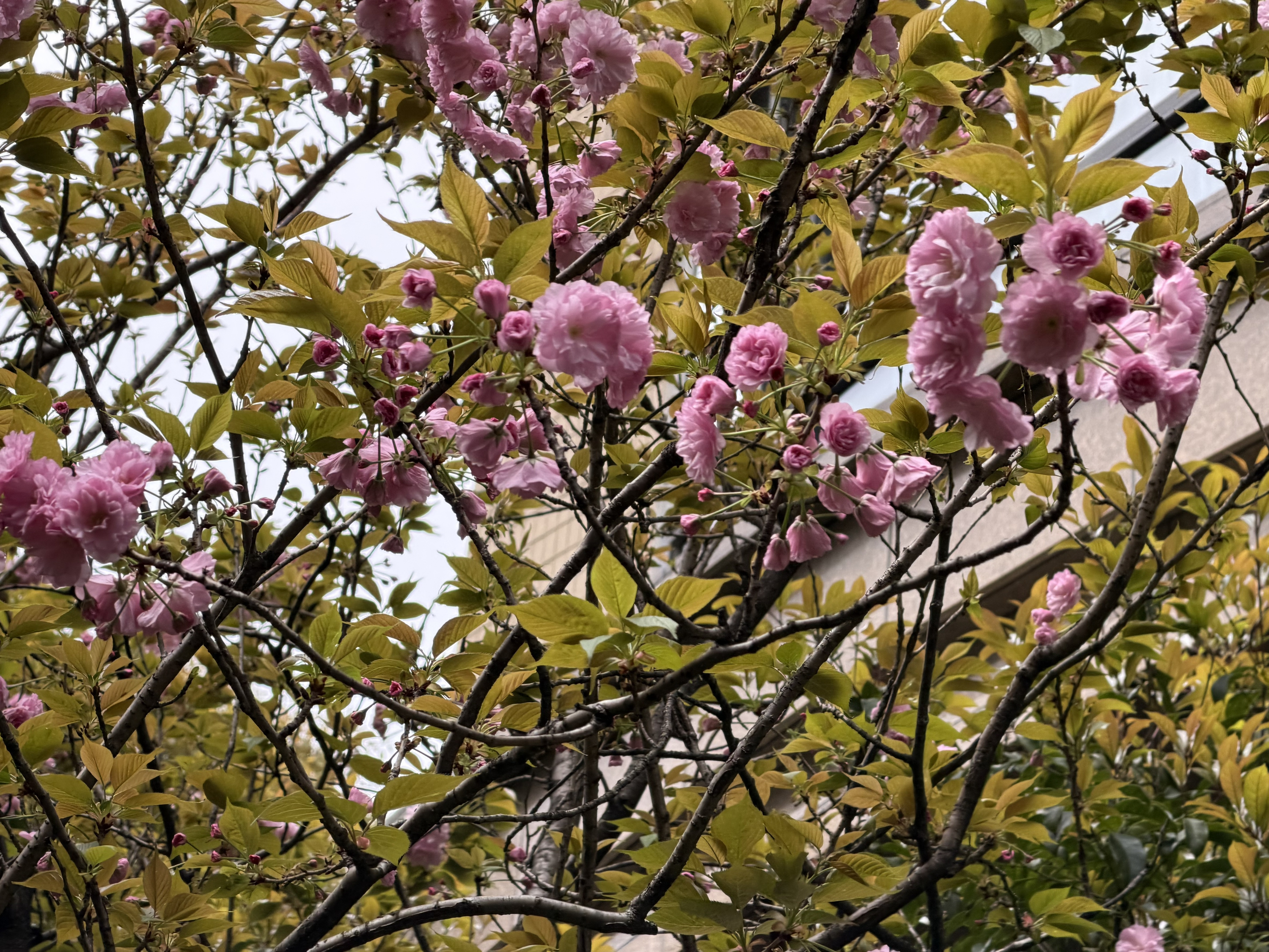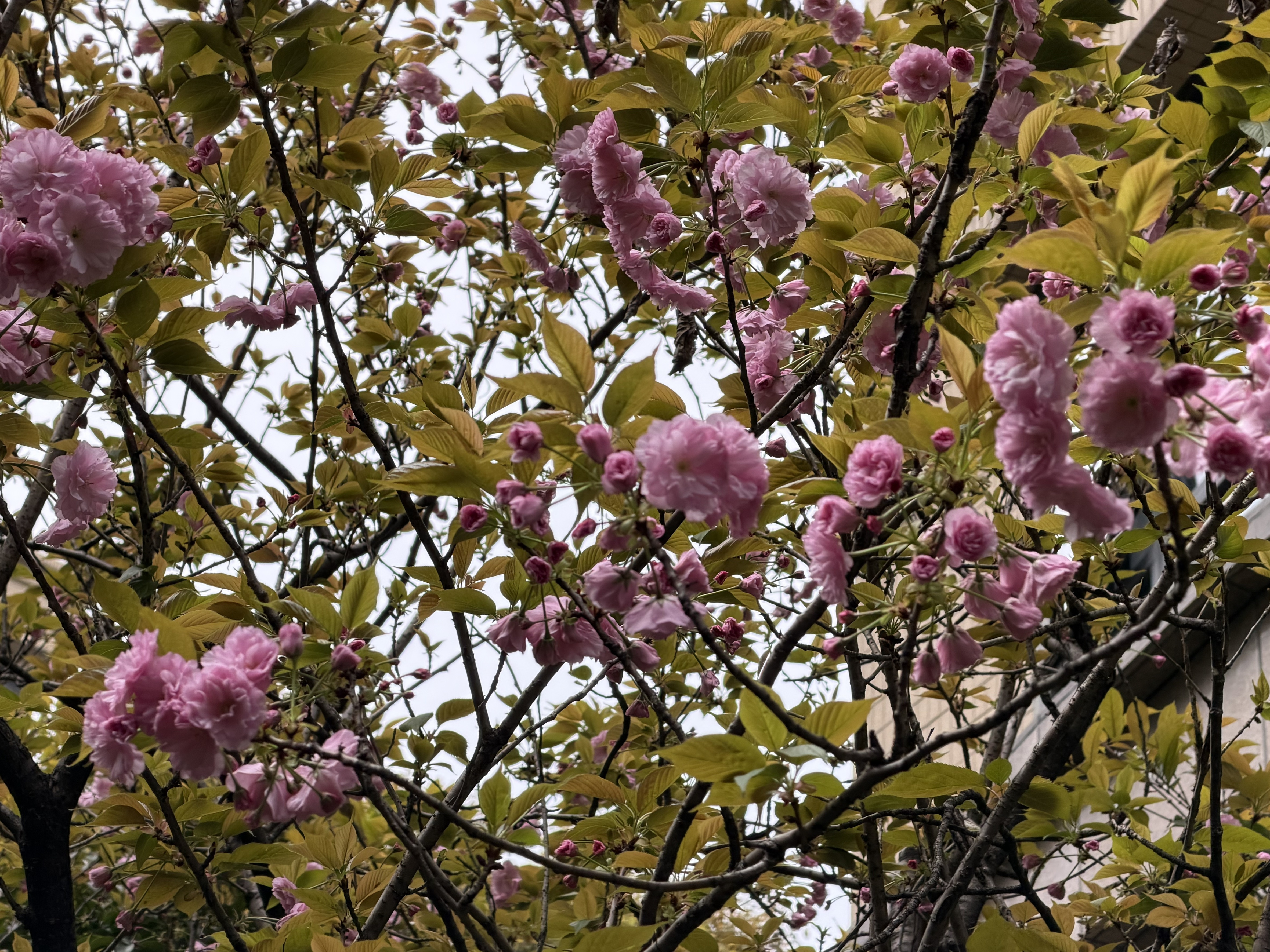 春江花月·晚樱花开花·晚樱是春日的尾声,是不肯散场的华美谢幕。 当早樱如雪,纷纷扬扬地铺满小径,带着一种近乎天真的、不顾一切的烂漫,晚樱才不疾不徐地,在枝头酝酿她的心事。她开时,是带了叶的。嫩生生的,或是赭红的,衬着那重重叠叠的花——粉的浓丽,白的清雅,或是一朵花里,从瓣尖到心底,由粉渐渐洇成了白。于是,那绚烂便不是孤注一掷的,而是笃定的,丰盈的,热闹中自有一份沉静的底气,仿佛知道春光将尽,偏要把这繁华,结结实实地、绵密地再绣上一遍。 春江看花的人,也换了心境。不再有初逢时的惊喜与躁动,只是沿着水岸,或倚着老桥,静静地看。看花影投在幽绿的潭水里,碎成一片流动的锦;看夕阳的金粉,怎样为每一片曲折的花瓣勾上毛茸茸的光边。风来时,那沉沉的花枝只是微微颔首,洒下几片花瓣,也是慢的,沉的,不像早樱的别离那般决绝飘忽,倒像一声满足的、轻轻的叹息。 这时的空气,是暖的,润的,饱含着植物生长的、近乎甜蜜的气息。你忽然觉得,早樱是一场青春的梦,清澈而易醒;晚樱,则更像一段中年情意,知晓了时光的限度,于是将所有的色彩与馥郁,都从容不迫地,绽放在这恰到好处的末尾。 开到酴醾花事了。可晚樱不说“了”字,她只说:你看,春光在此,尚有余温