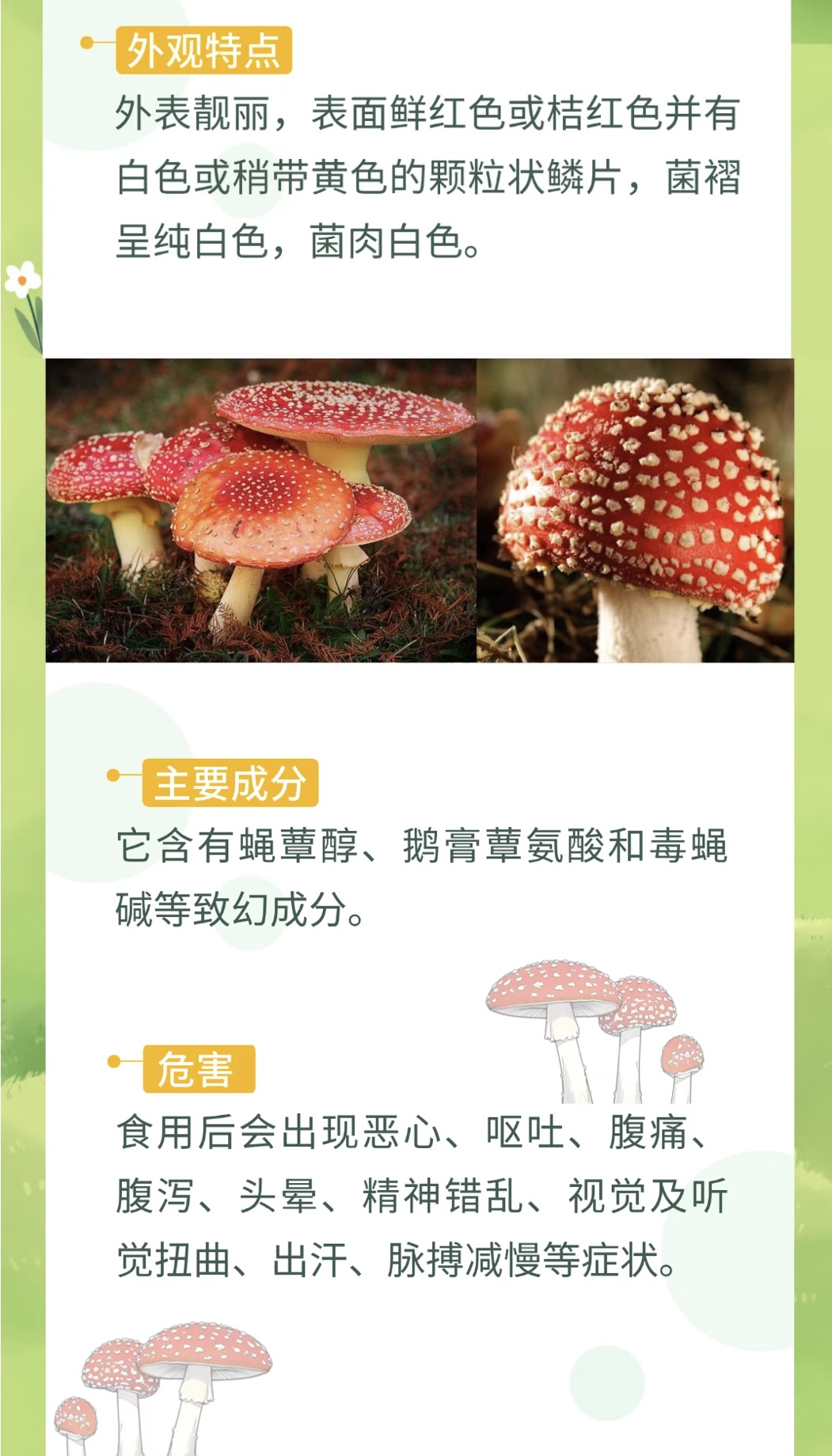 春日踏青,一些看似寻常的植物很可能是“毒物”,让我们擦亮双眼,认清这些“毒物”的真面目!(来源:中国禁毒) 最后一种:毒蝇伞。