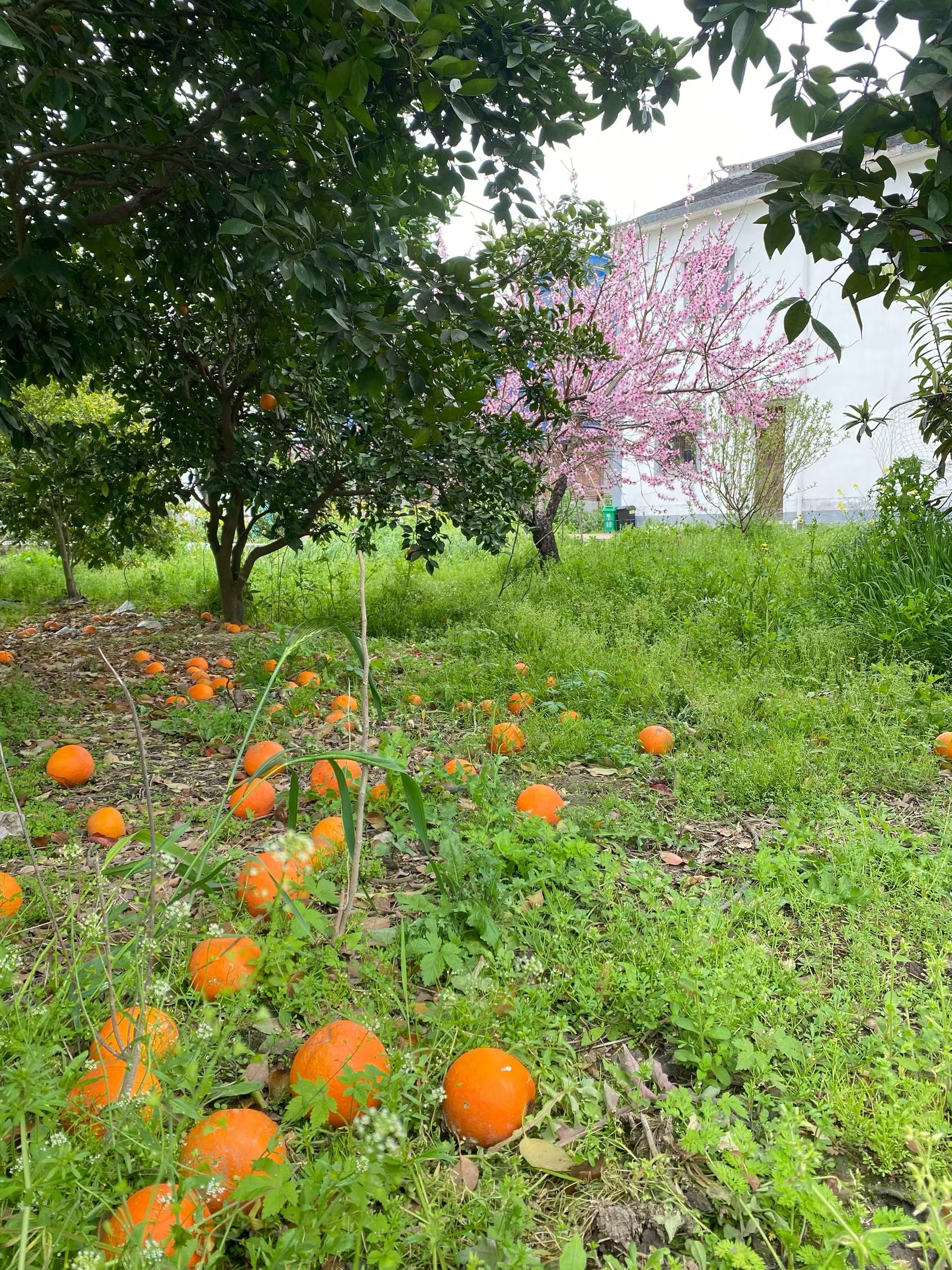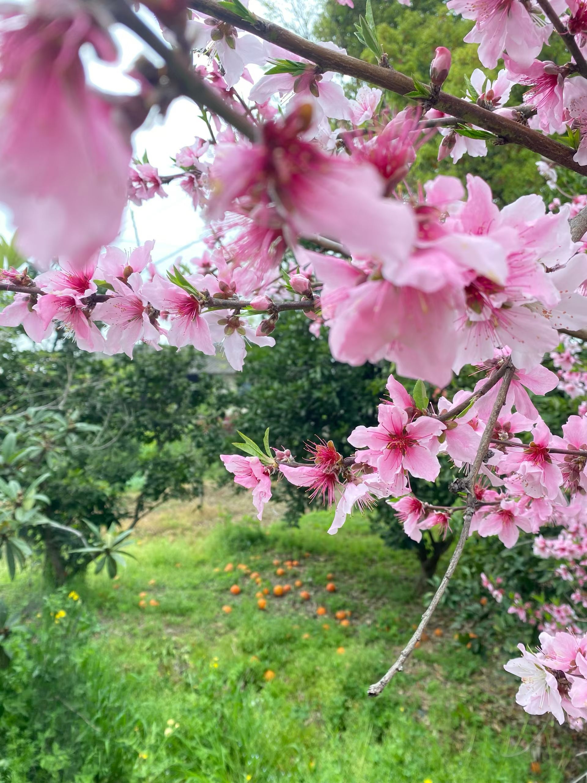 桃花难画,因为要画得它静。 可风一吹,它便跳起舞来。 若是风再大一些,它的叶瓣就会悄悄从枝头落到你的黑色长发上, 亲自给你戴上发簪。 橙色的果子也不甘示弱, 在地上铺就成画。