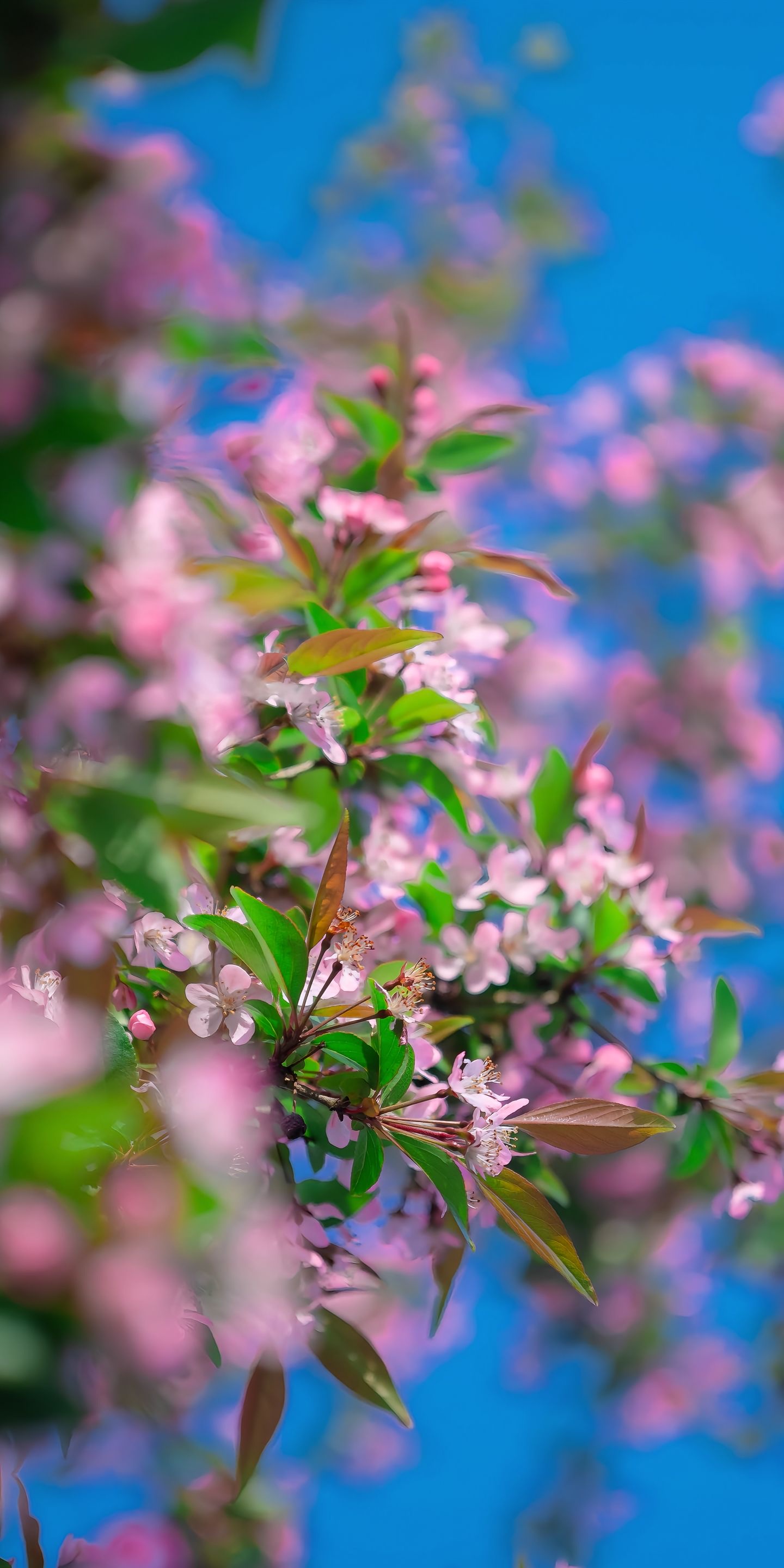 粉云浮于碧空之下,枝条舒展如诗行。绿叶轻托着簇簇娇蕊,在春光里低语。仰头,是澄澈的蓝;俯首,是落英铺就的柔软小径。风过处,花瓣簌簌而下,像时光撒下的温柔信笺。我站在花影深处,不言不语,只让镜头接住这一瞬——整座春天,正轻轻落在肩头。