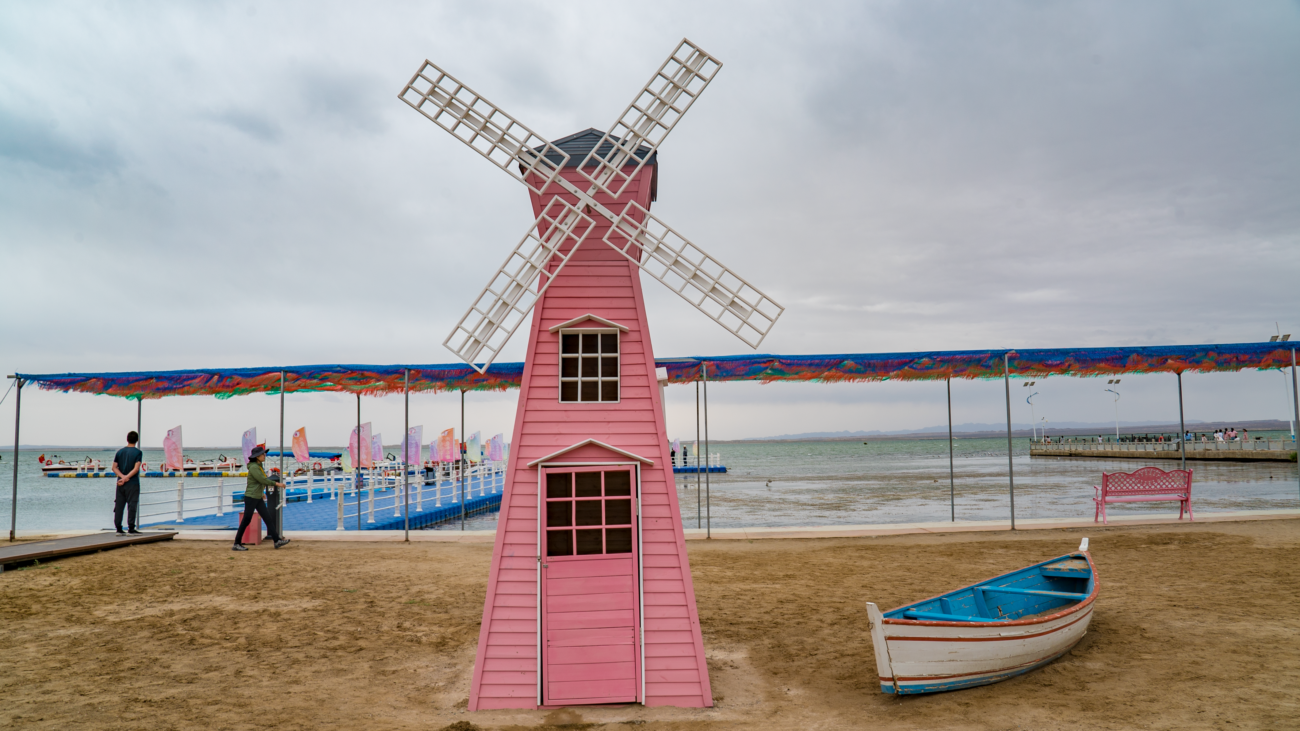 在格尔木的戈壁荒原上,居然藏着一片‘小三亚’——六子湖。水清沙软,棕榈成荫,远处是巍巍昆仑雪山。大自然没给的,格尔木人自己造出来了。沙漠、雪山、沙滩、湖水同框,这画面,也只有青海能给你。