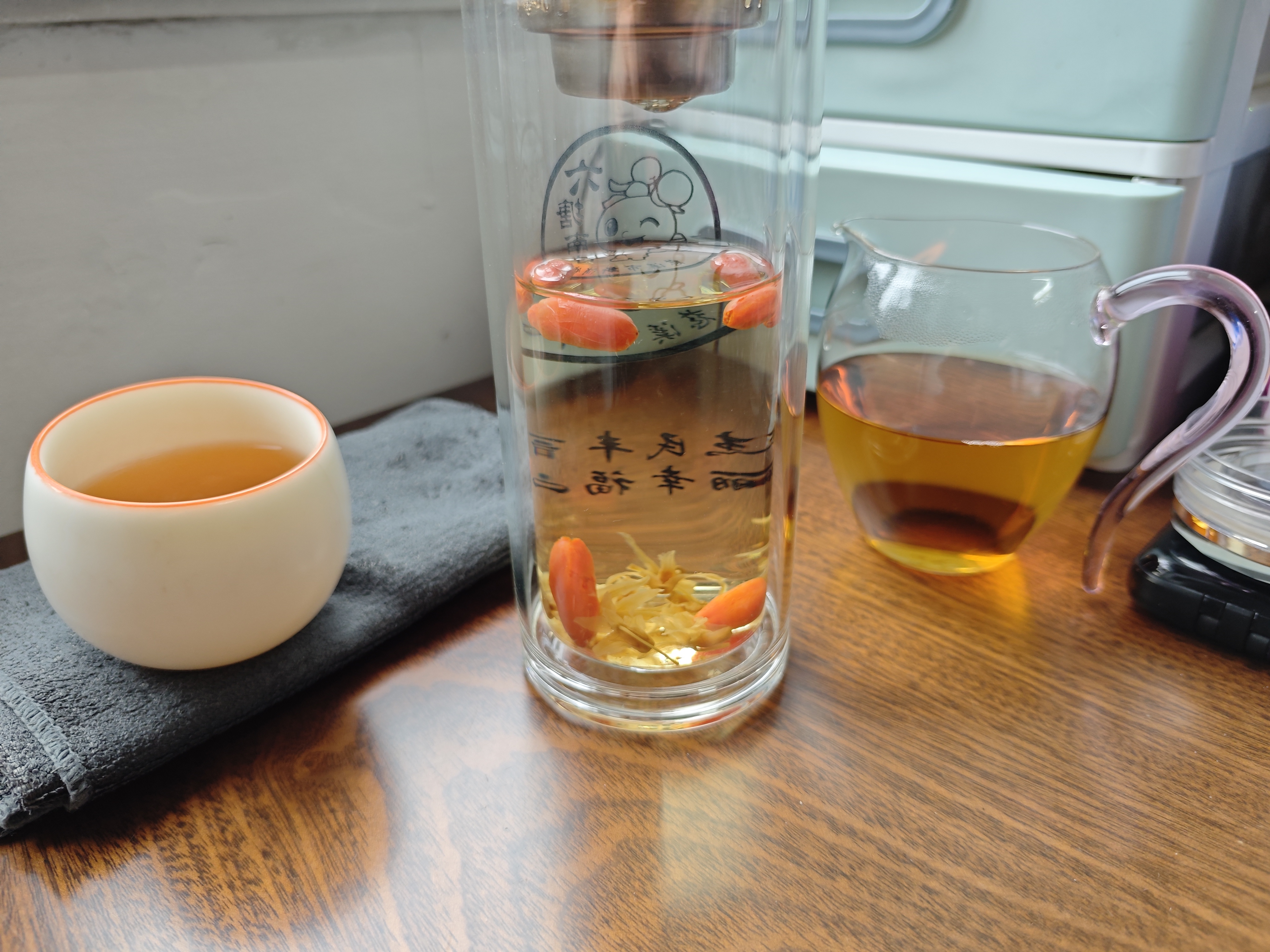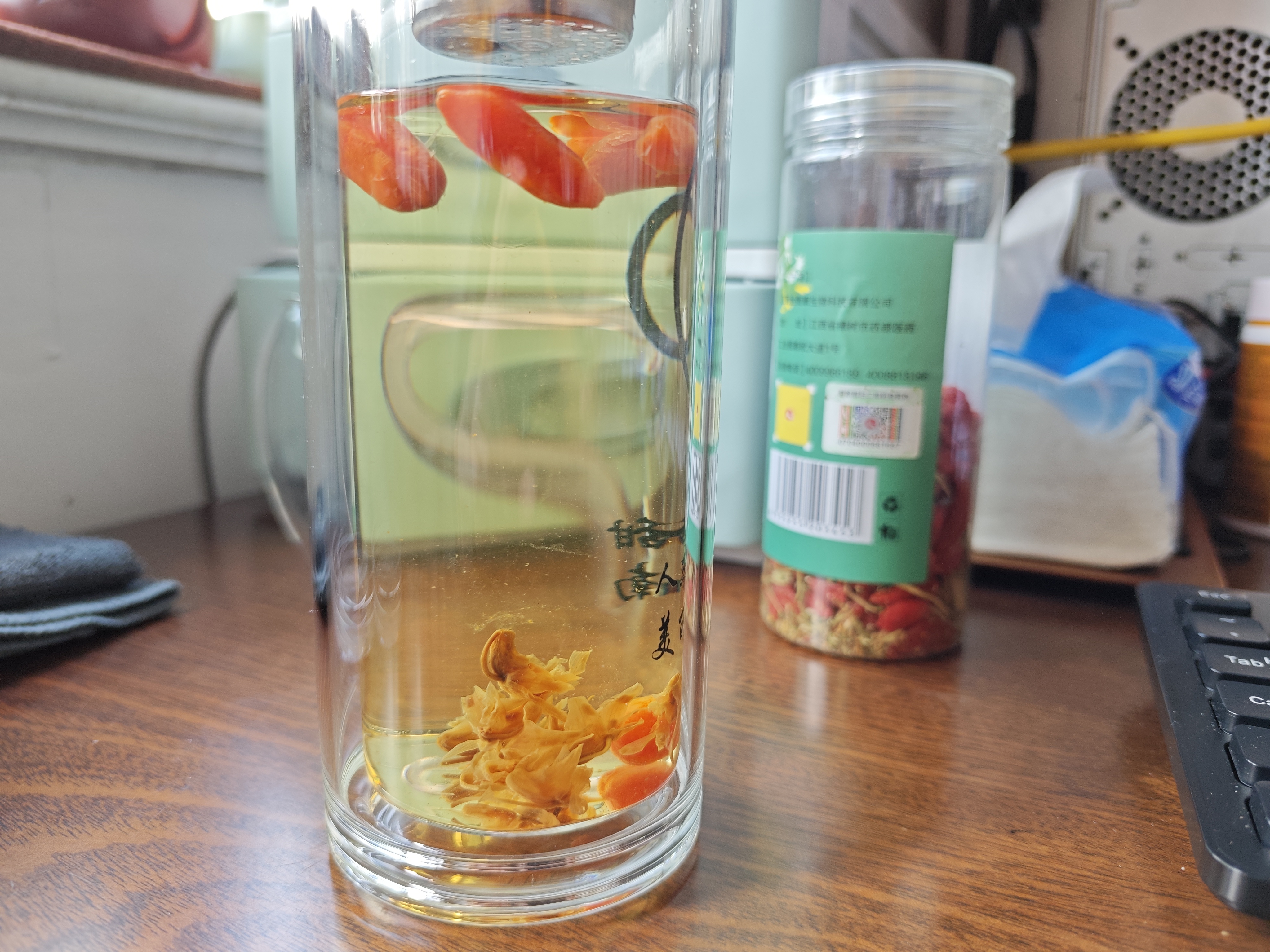 盏中光阴 透明的杯壁,盛着半盏暖黄的时光 石斛花蜷着身子,在沸水里慢慢舒展 像极了被生活揉皱的心事,一点点摊开柔软 几粒枸杞浮在水面,又轻轻沉底 红彤的色泽,晕开细碎的光斑 是日子里藏不住的甜,也是岁月沉淀的暖 木纹的桌面托着这杯清茗 一旁的公道杯盛着半盏余味 键盘的边角还留着尘世的匆忙 而此刻,茶香漫过指尖 偷得浮生半日的闲 把奔波的脚步,安放在这一杯清欢里 光透过玻璃,在茶汤里晃出温柔的影 不疾不徐,不慌不忙 就像这春日的光阴 慢一点,再慢一点 让心在盏中,寻得一方安然的栖居