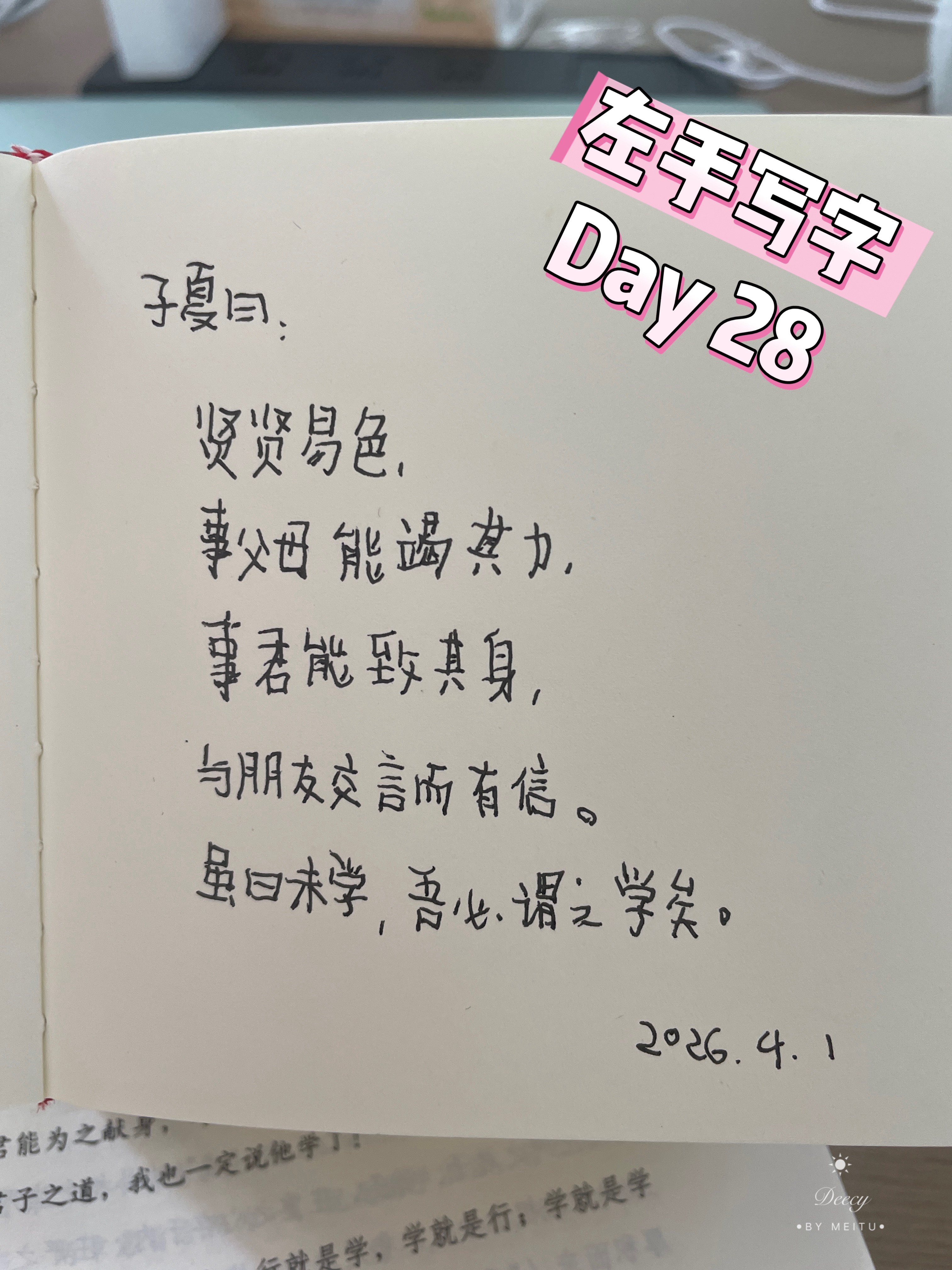 ✍️左手写字第28天 子夏曰:贤贤易色,事父母能竭其力,事君能尽其身,与朋友交言而有信,虽曰未学,吾必谓之学矣。