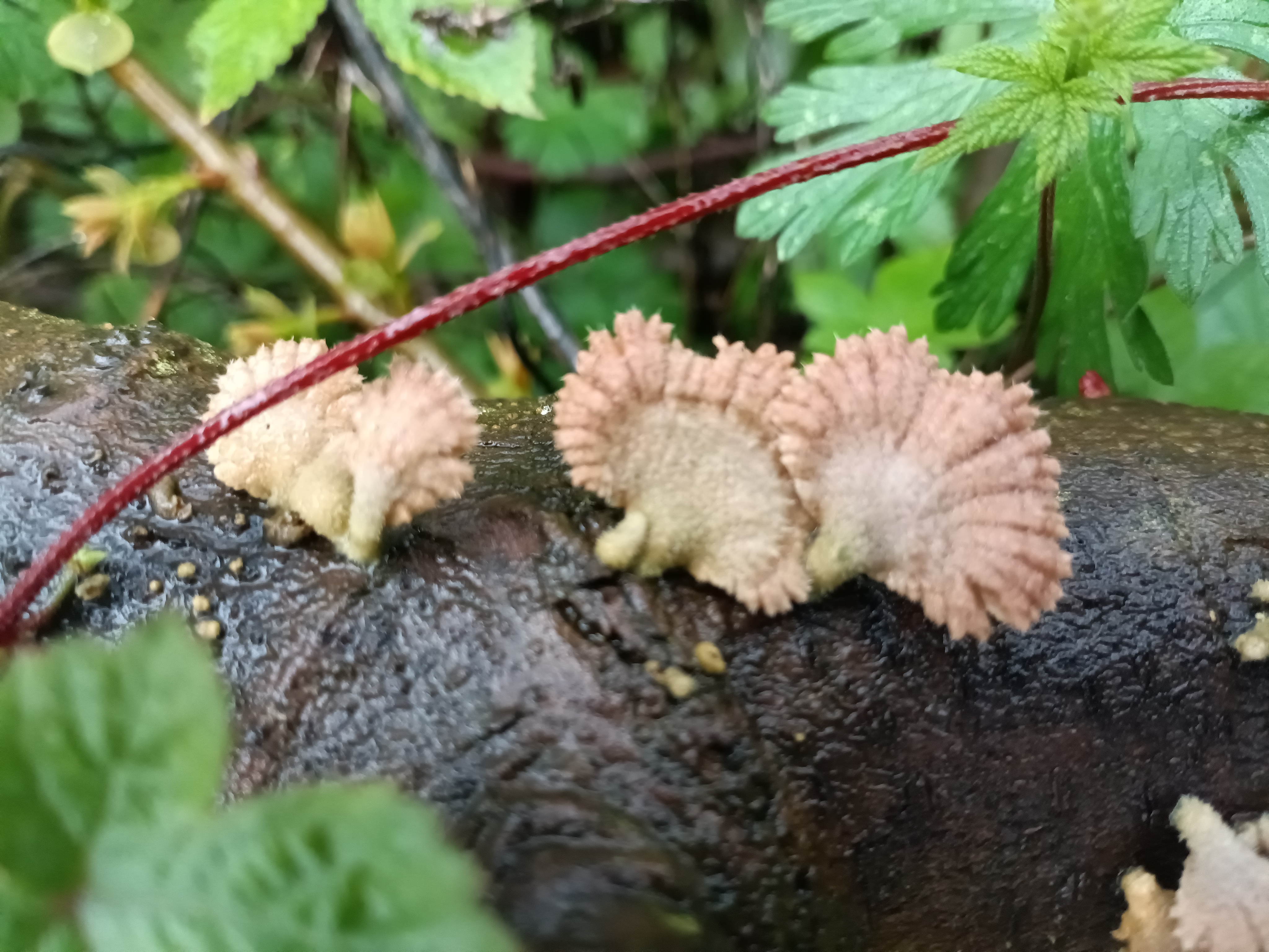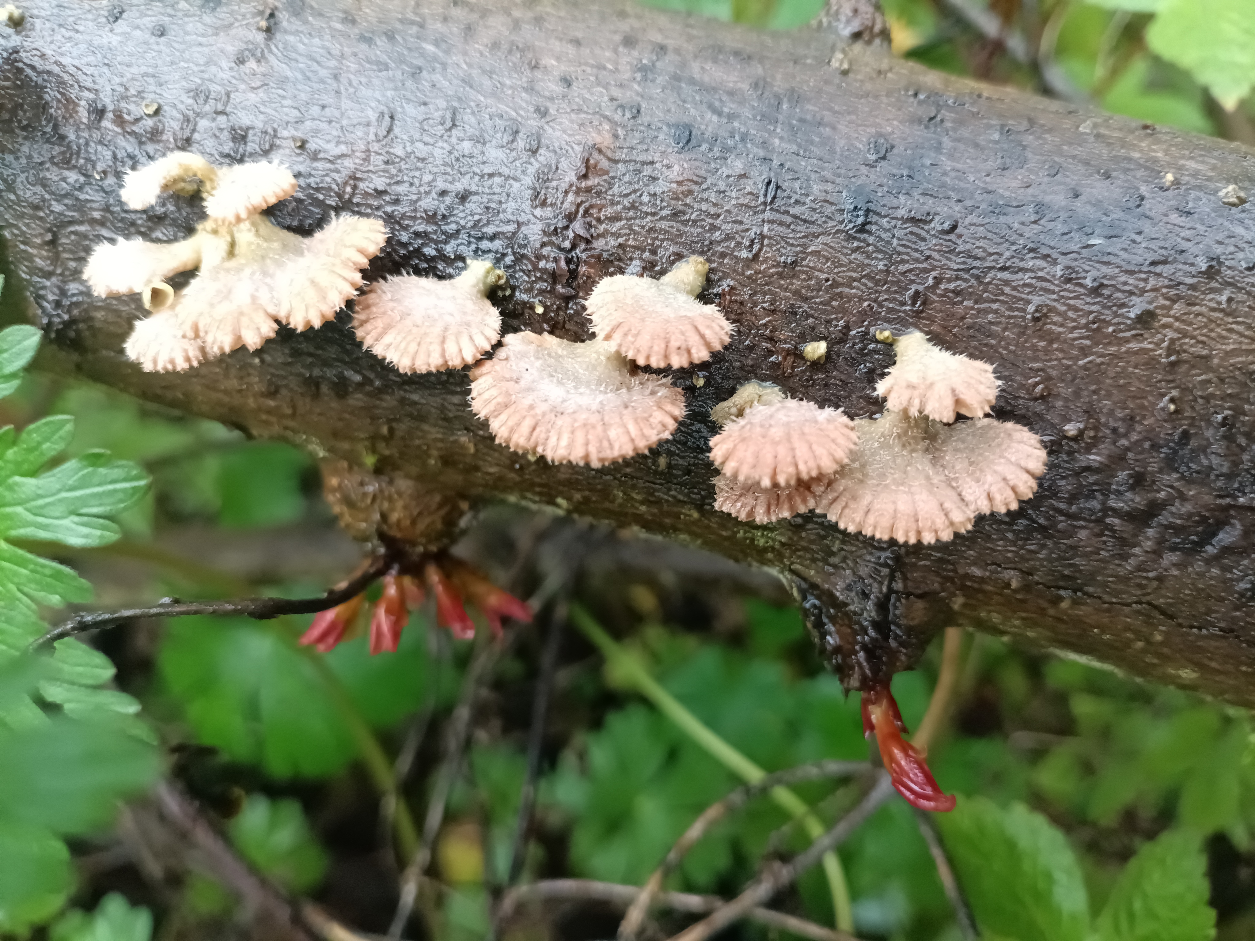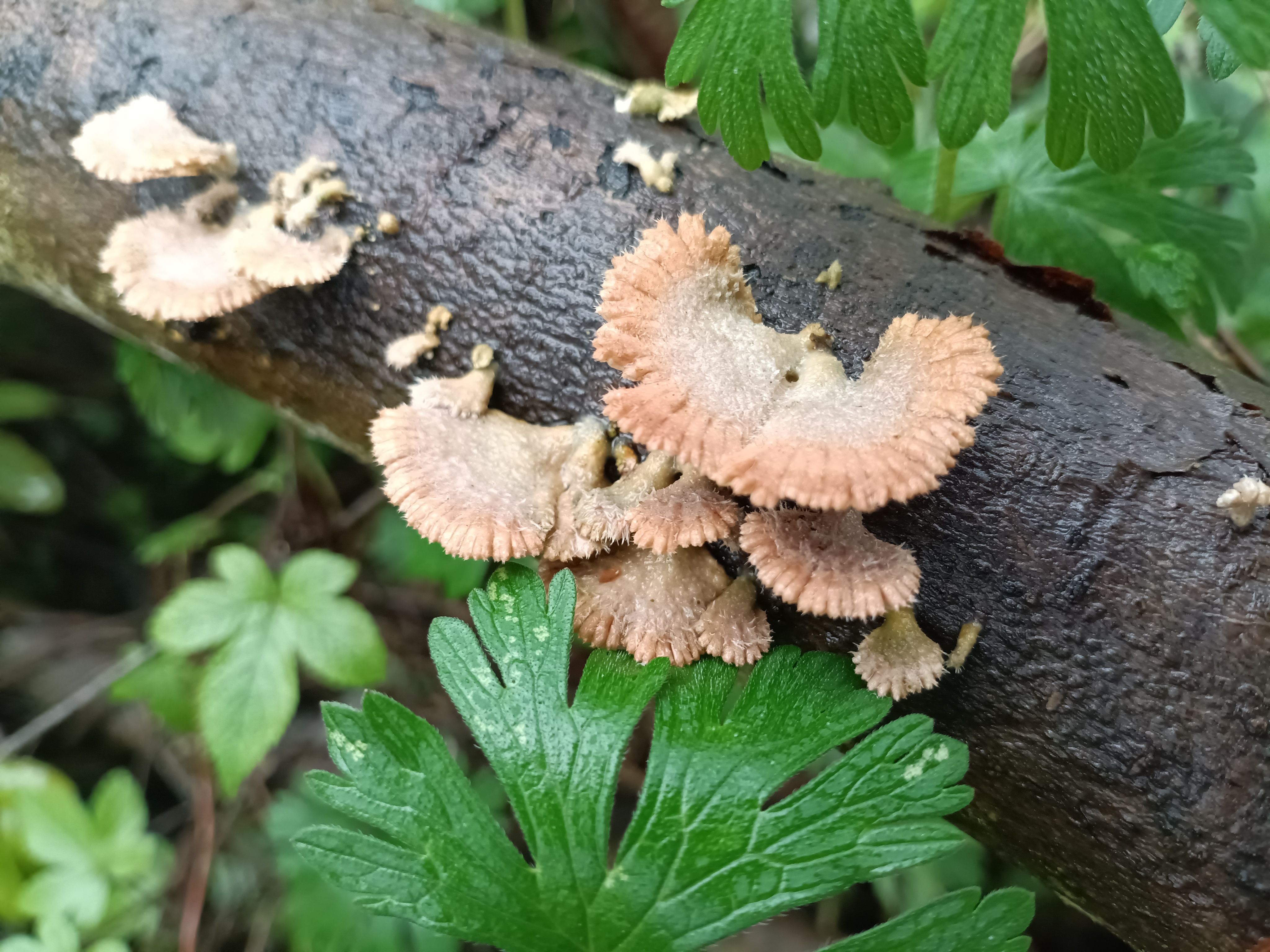 苔痕斑驳处,粉扇轻摇,腐木生春,微光里藏着整片森林的呼吸。