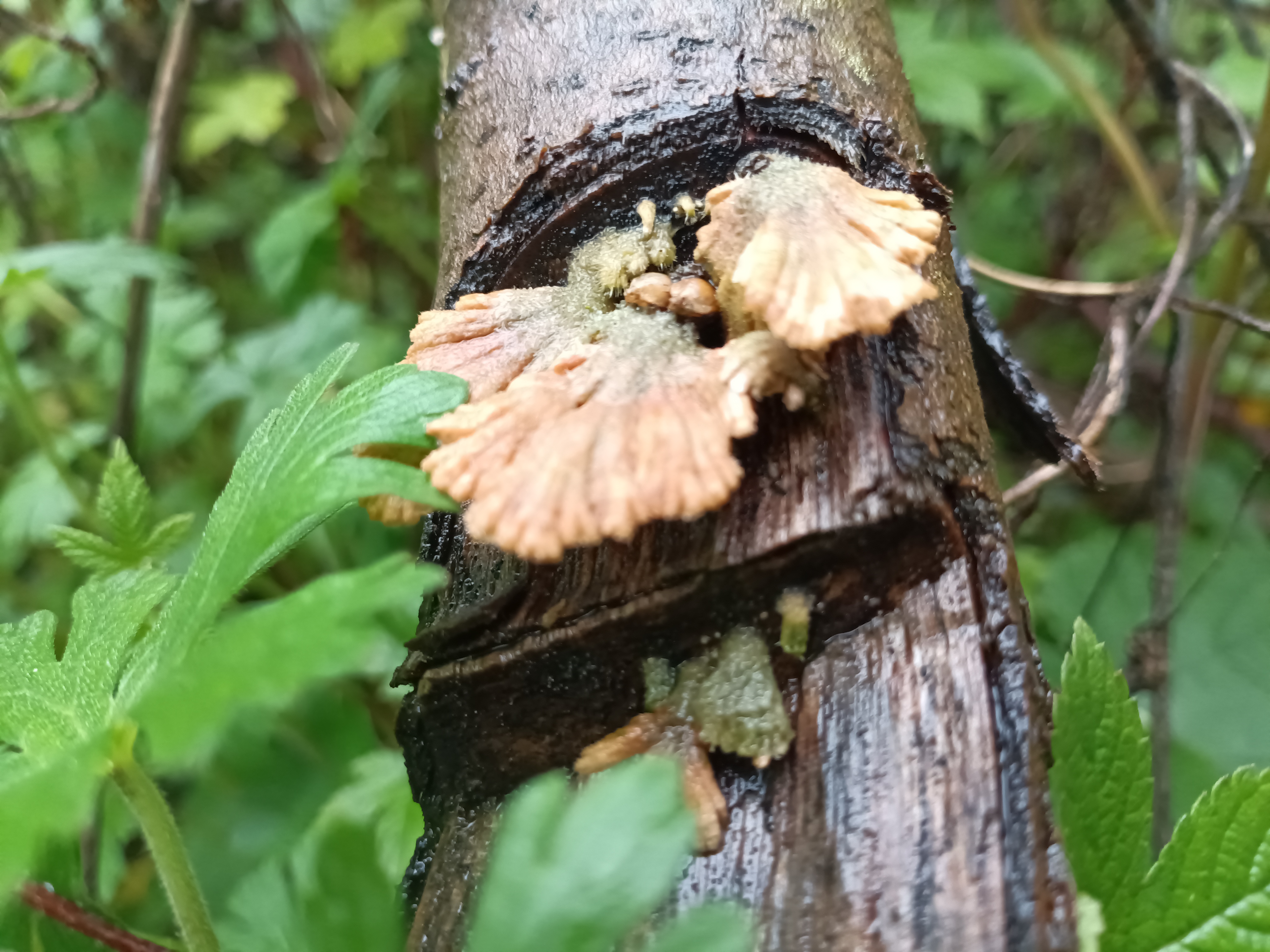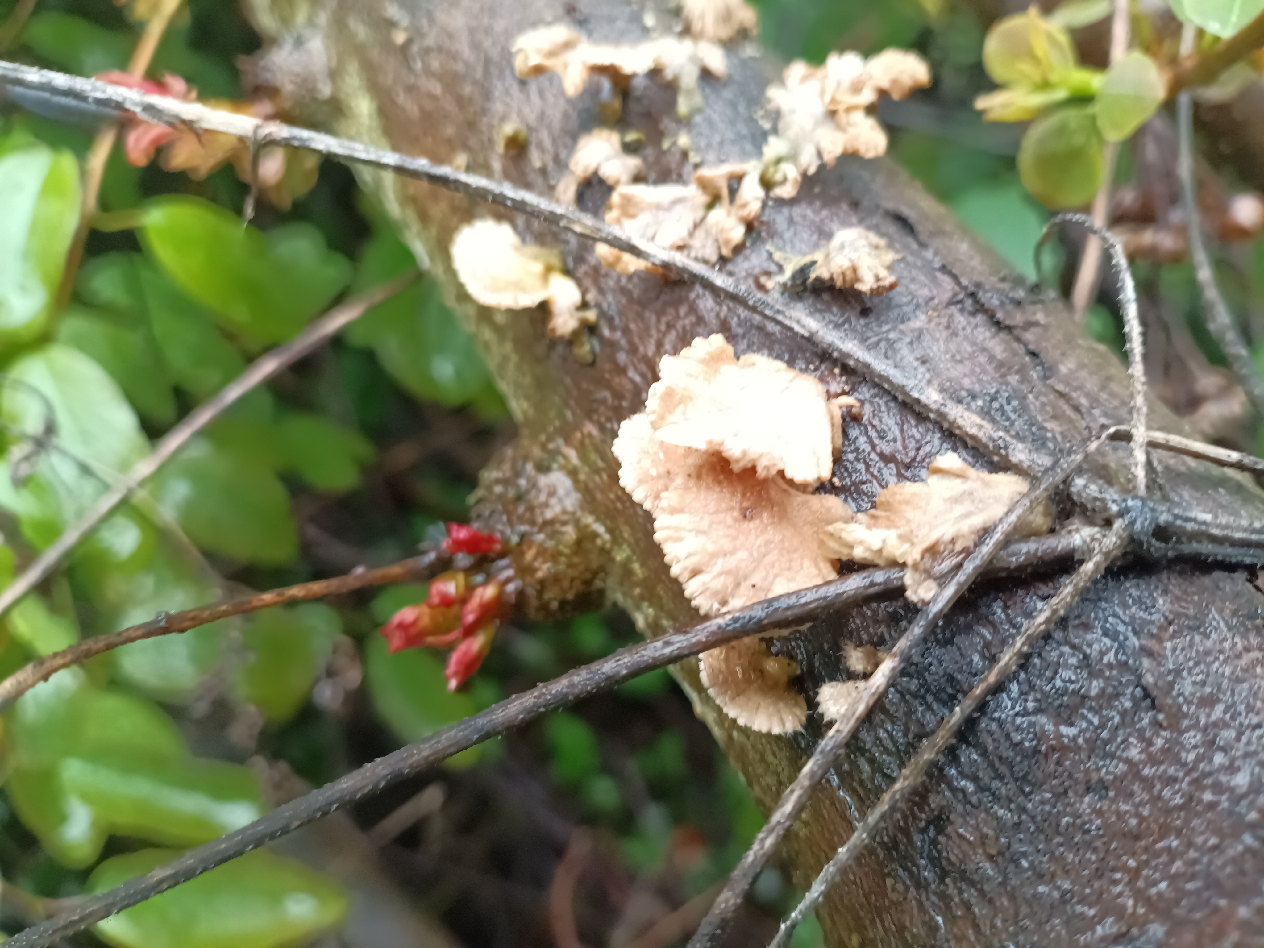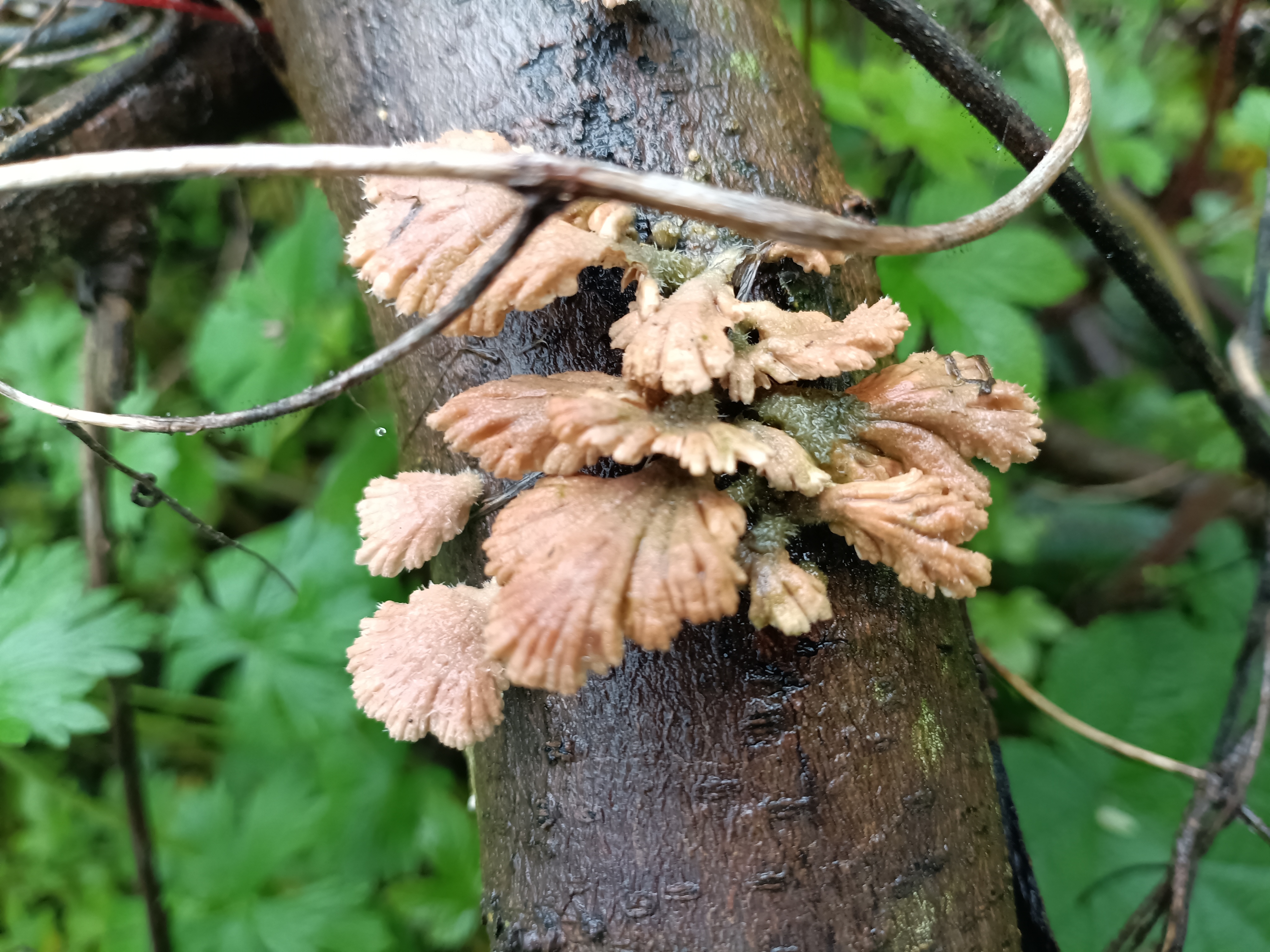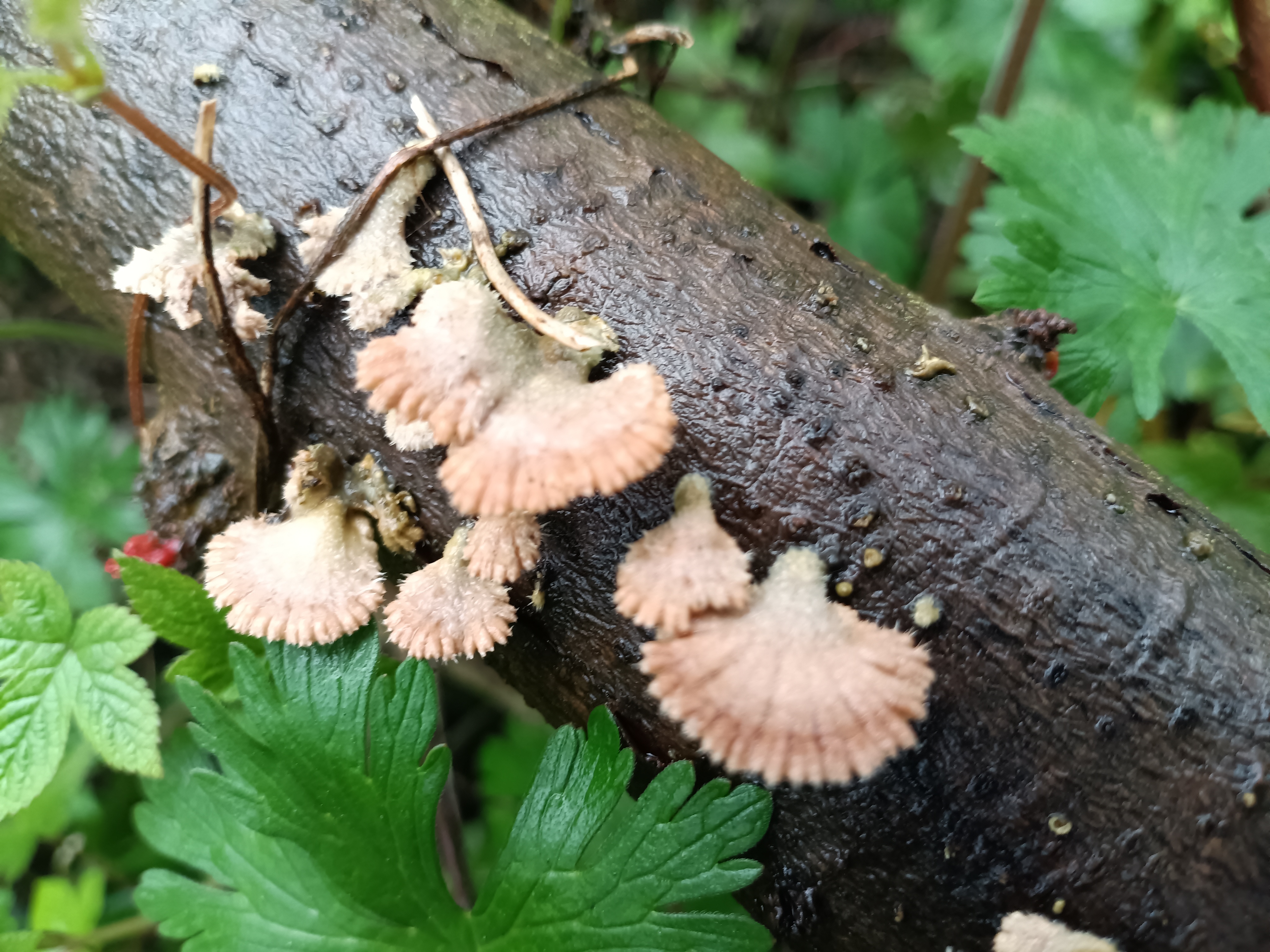 苔痕斑驳处,粉扇轻摇,腐木生春,微光里藏着整片森林的呼吸。