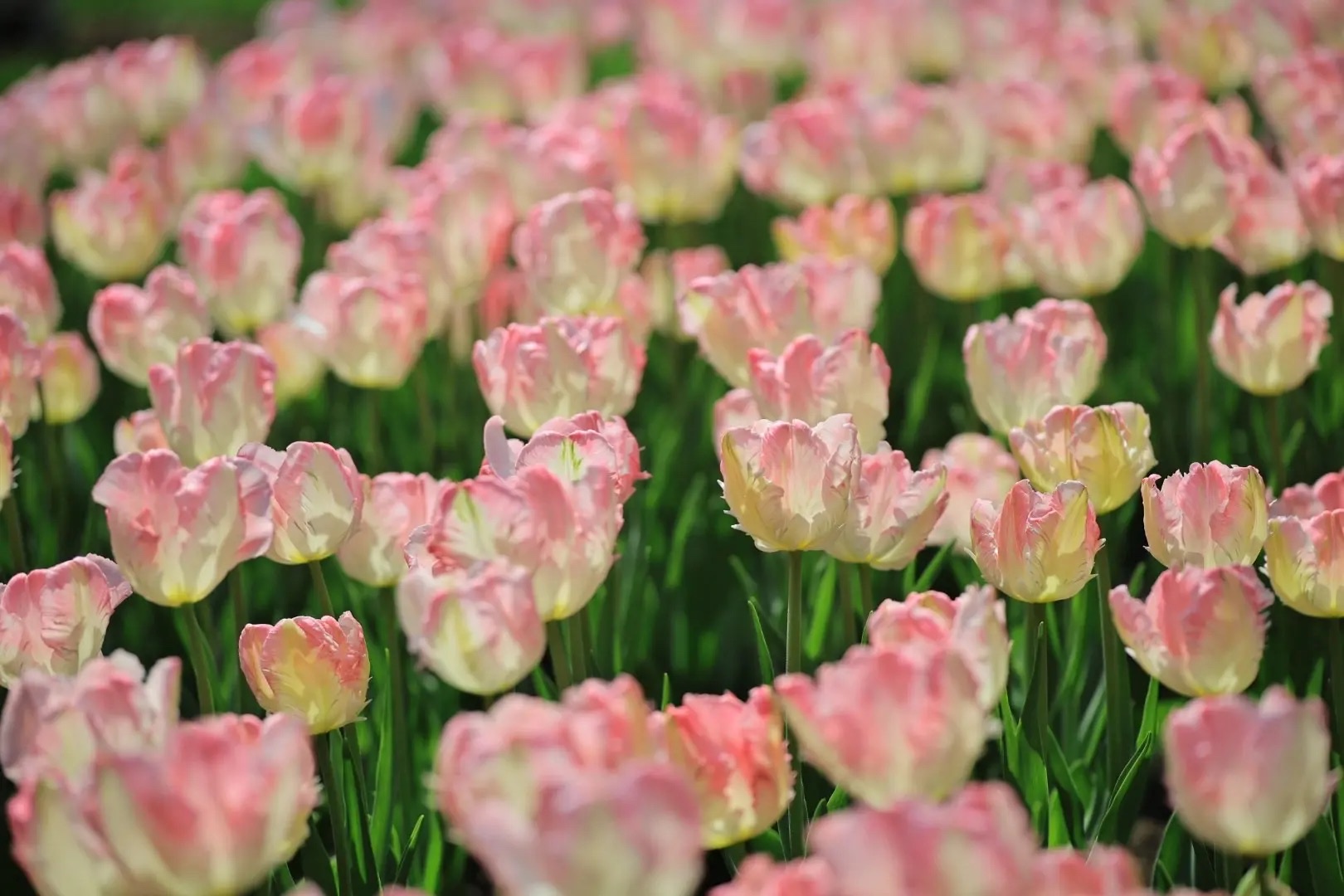 粉白郁金香开得正欢,绿叶托着小脸蛋,随手一拍就是春日限定款~