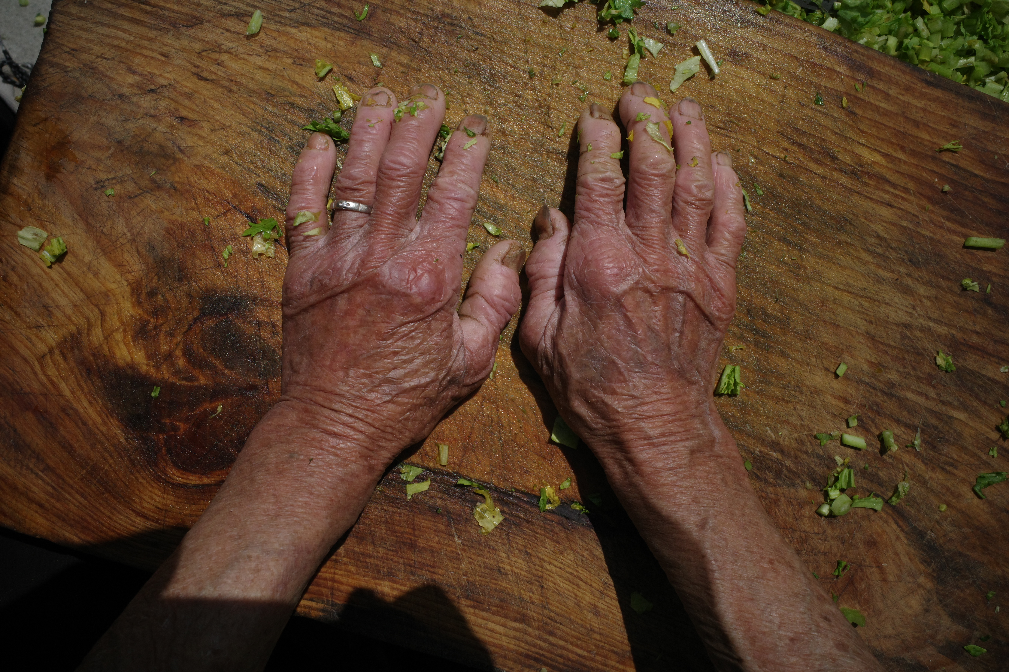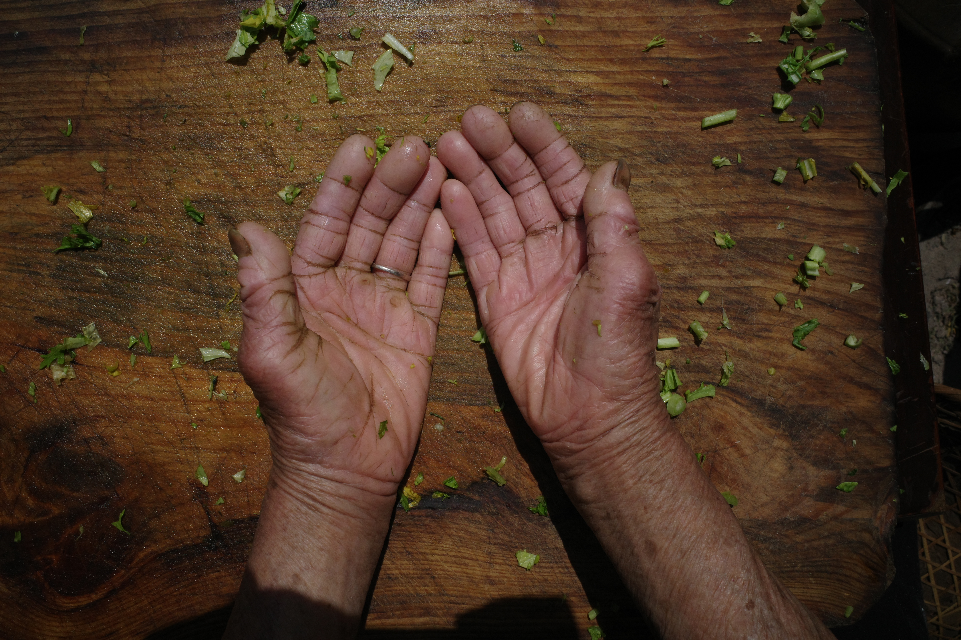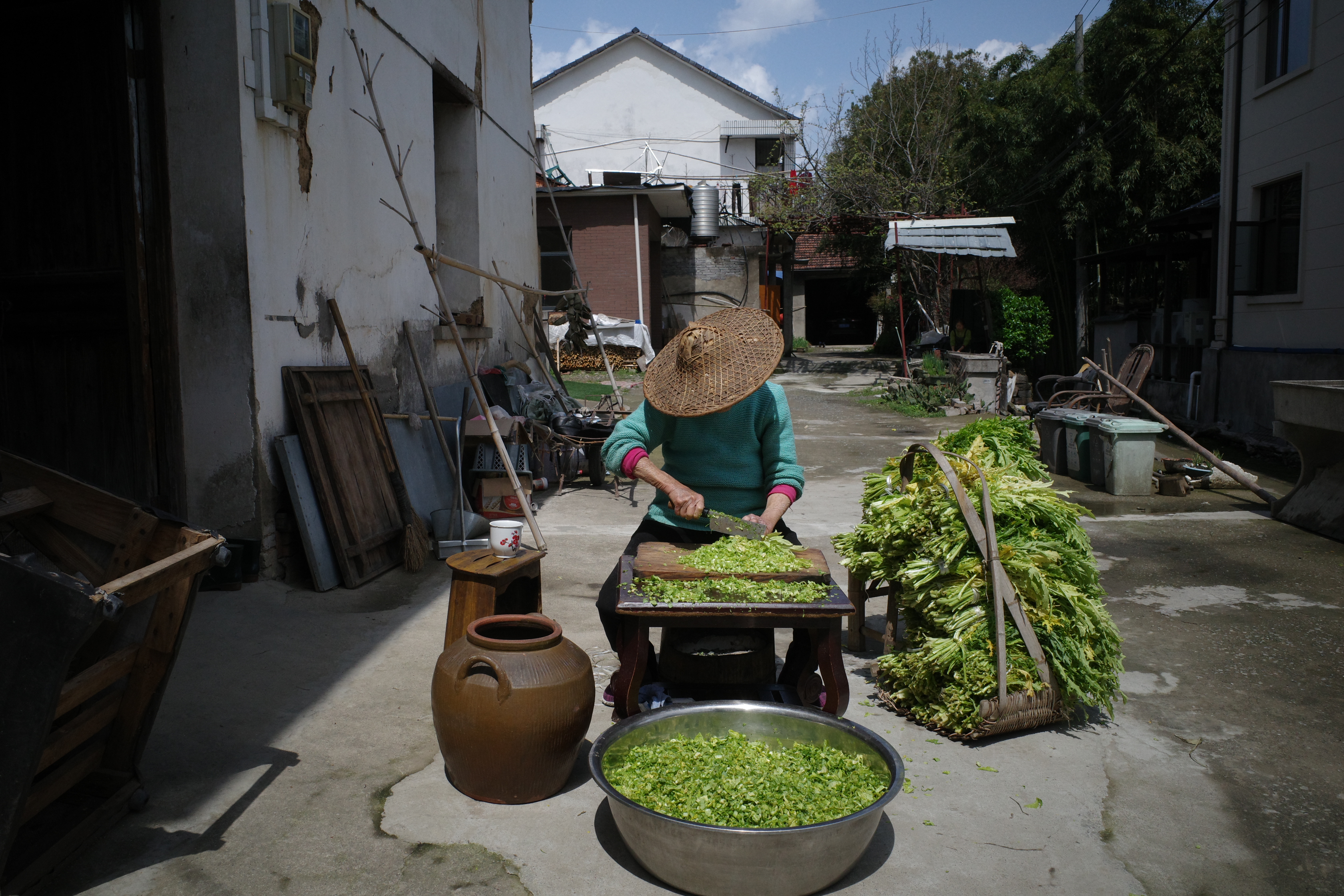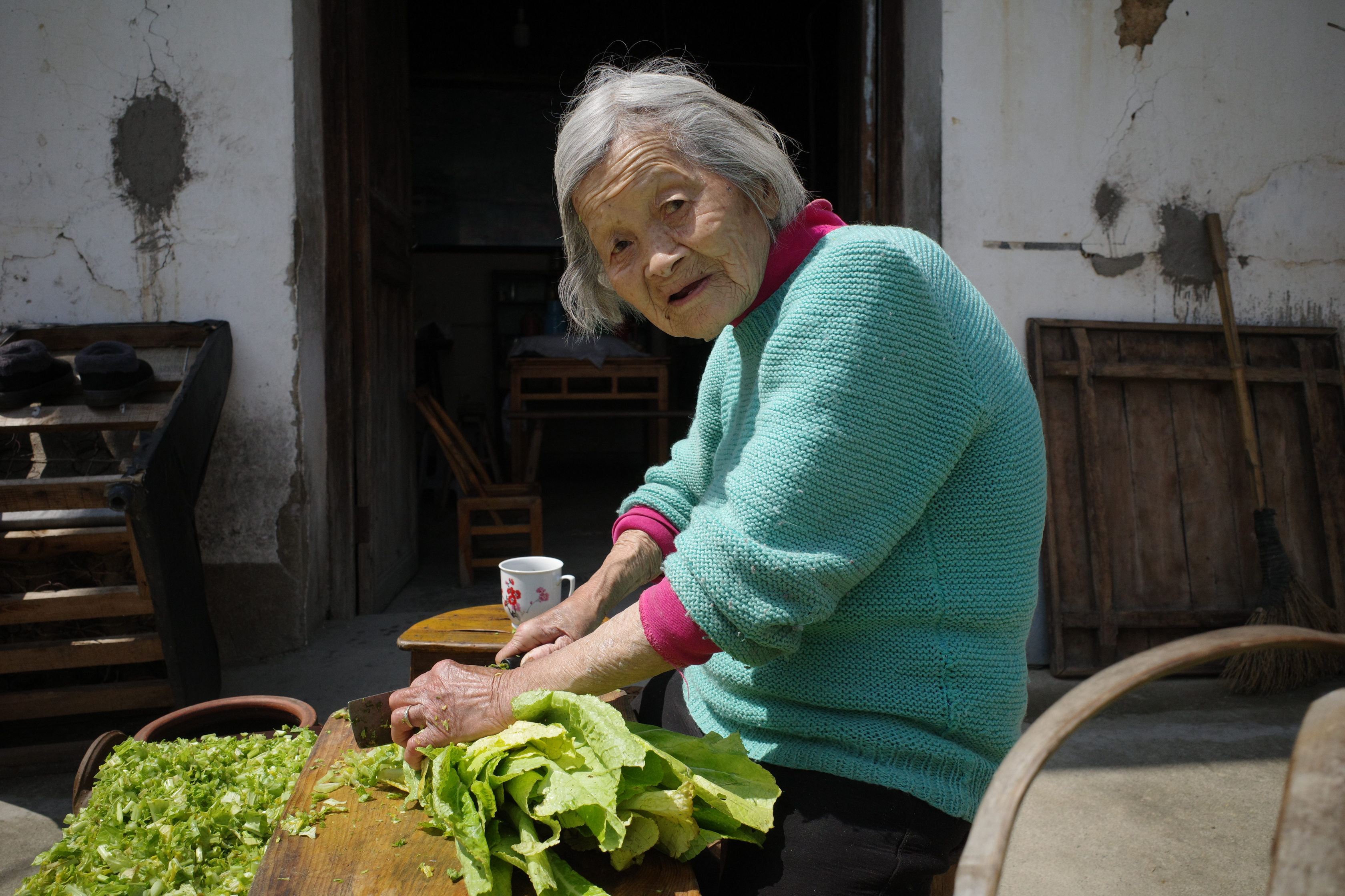 92老人在腌菜,一双手看了令人心酸。生了10个孩子,6个男孩4个女孩,两个男孩成年后生病死了