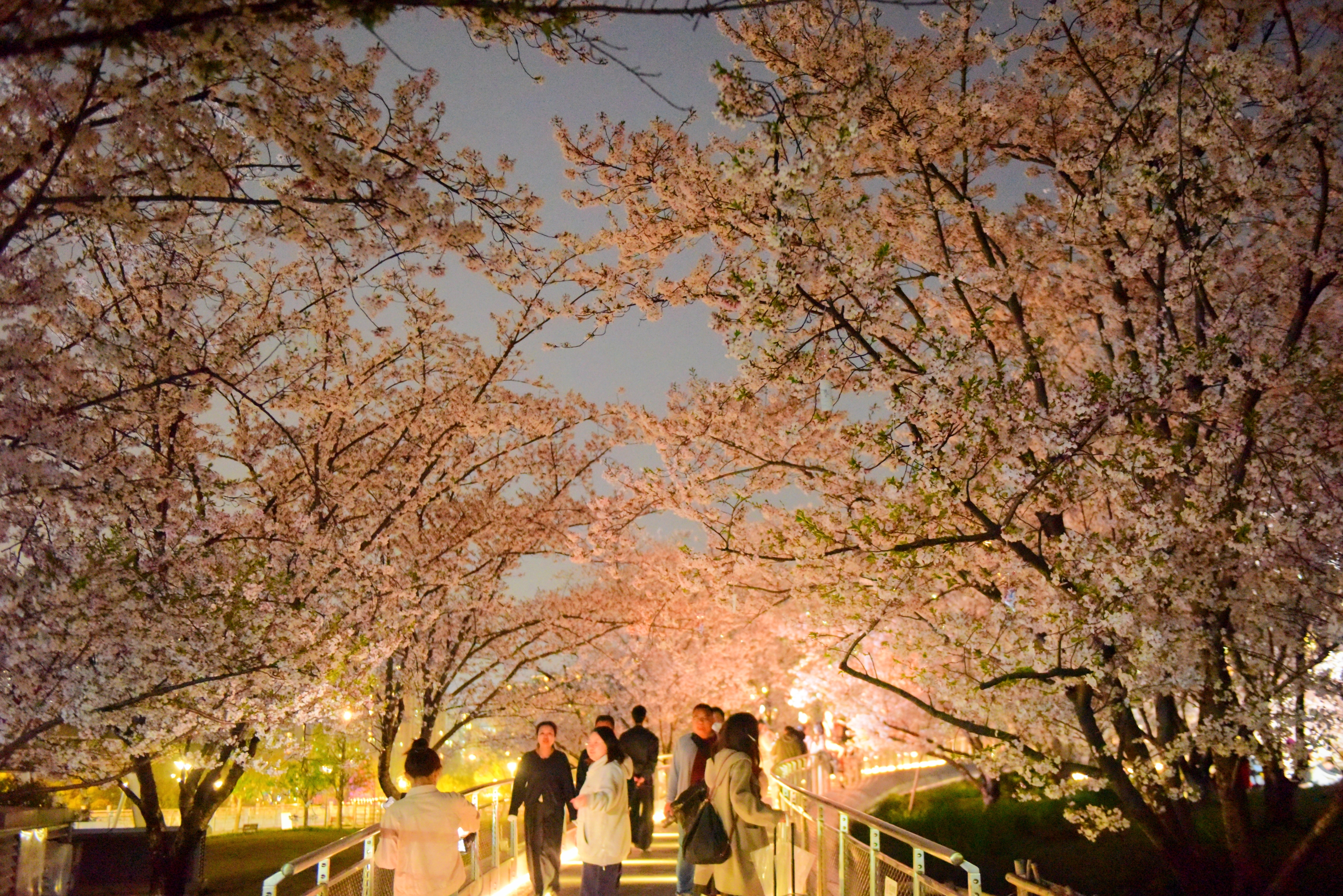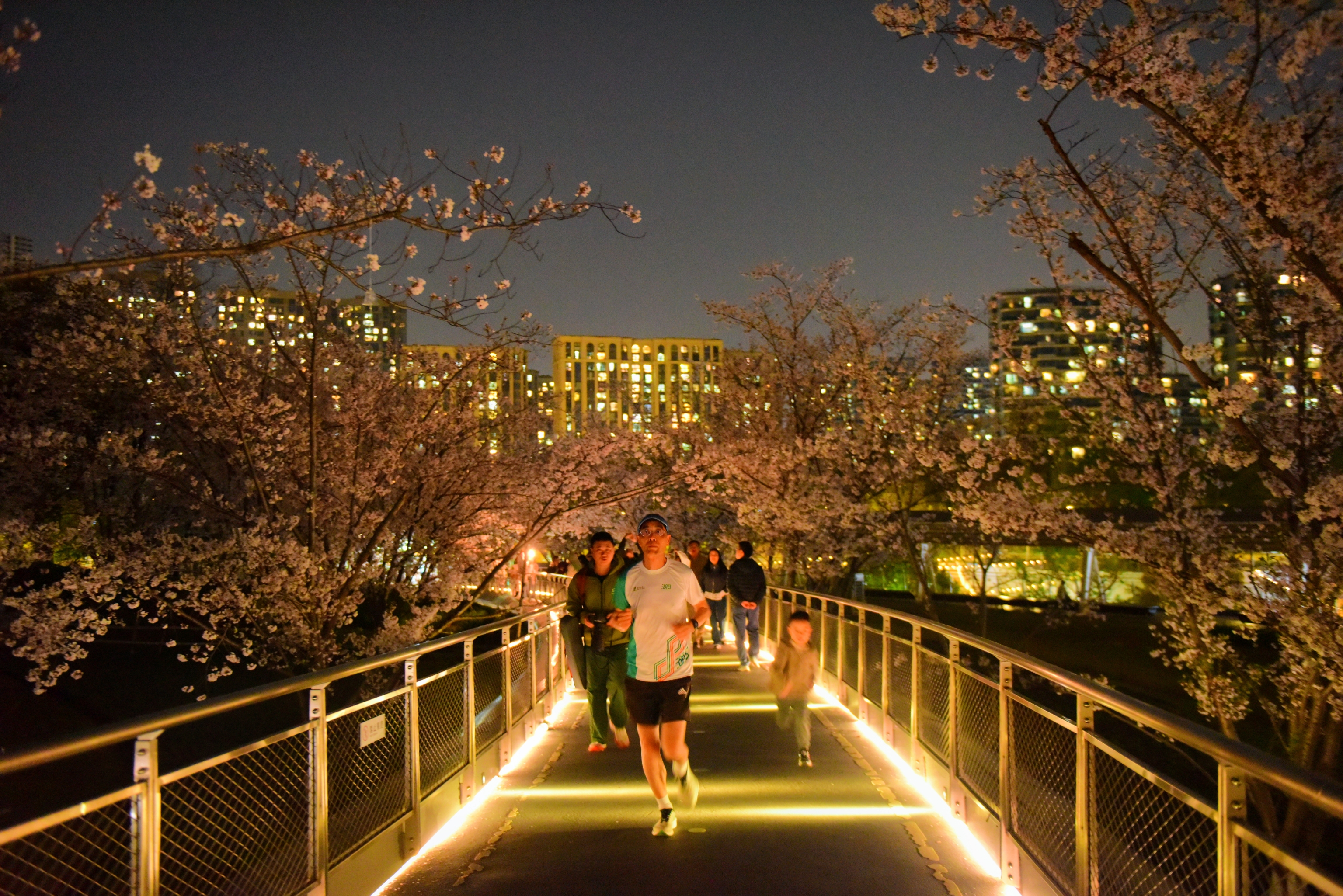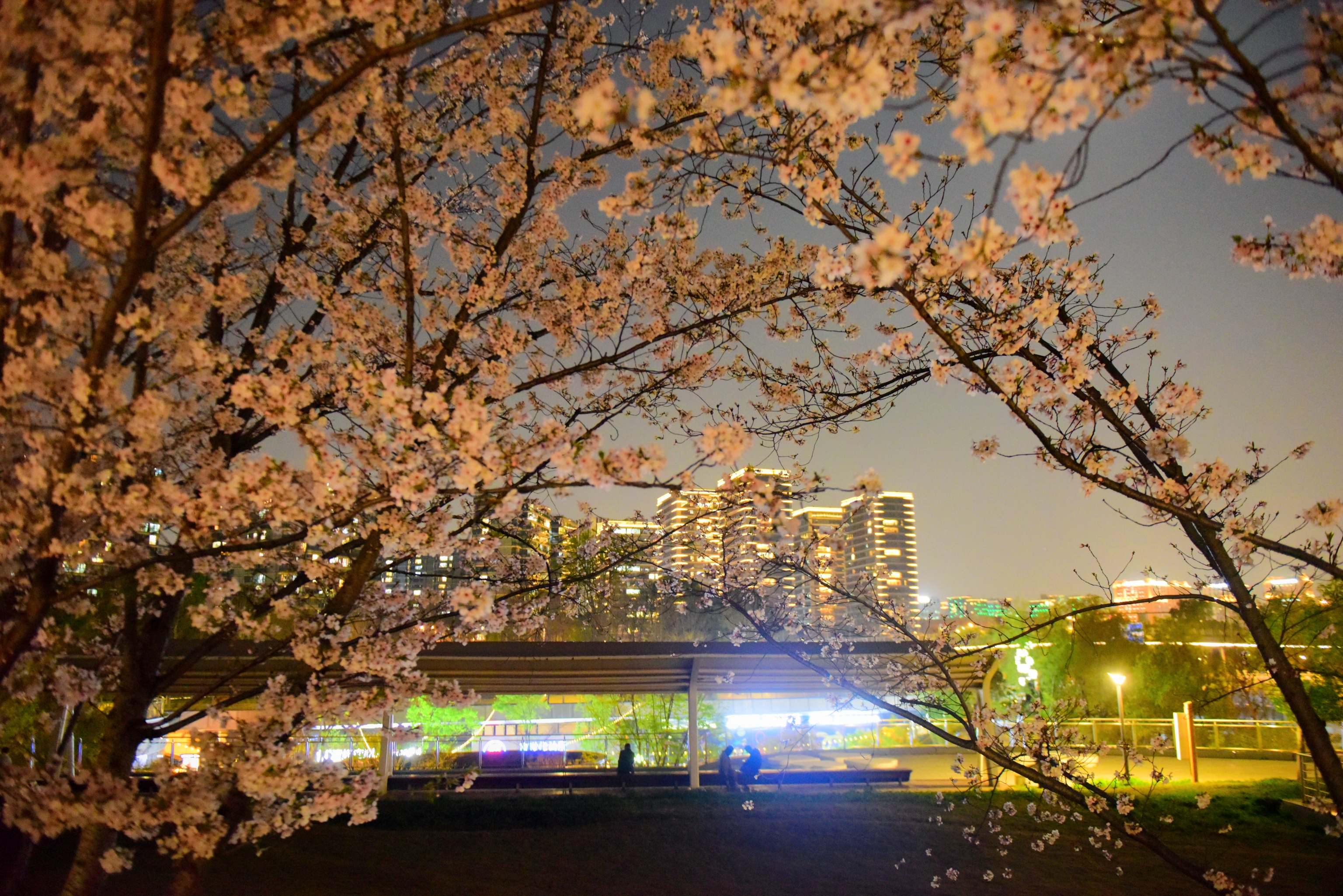 杭州运河亚运公园的夜樱。