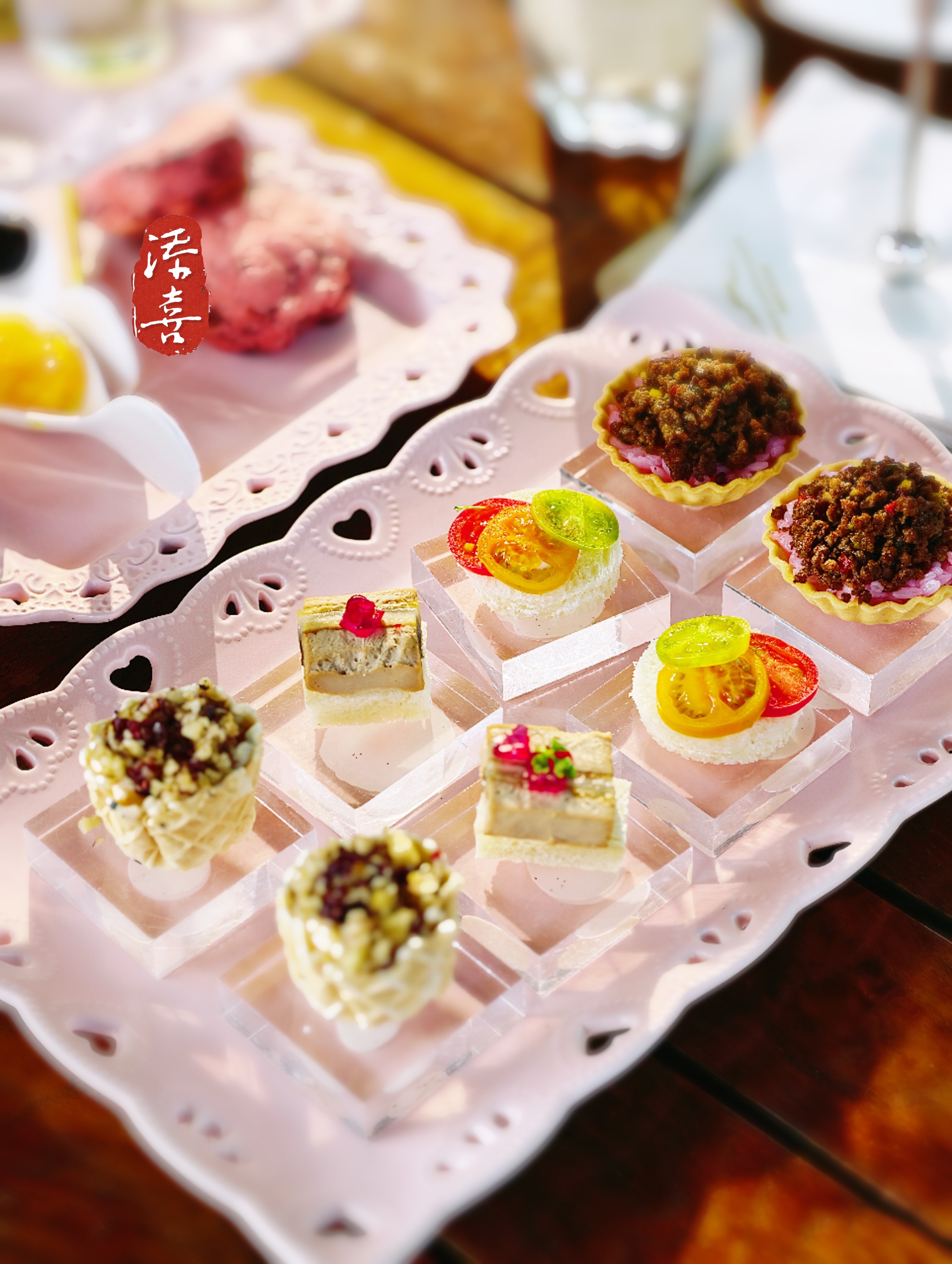 春樱为信,爱你如初🌸杭州湘湖边の张凌赫《爱你》一周年下午茶💗 追剧的时候就在想,要是能把剧里的心动吃进肚子里就好了🍰 没想到,湘湖逍遥庄园真的和爱奇艺联名了这席《爱你》樱花下午茶,正好赶上一周年,像是春天替我们记住的一场约定✨ 📍杭州湘湖逍遥庄园·逸吧(L层) 🕒13:30-17:00 特意选了户外的位置,把自己安顿在这片山水村落式的园林里🌿庄园由GOA大象设计操刀,依托彼岸大山、蜿蜒溪流,庭院深深,移步异景。坐在檐下,眼前是小桥流水与层层绿植,原木与自然相映,中式古典的静谧感扑面而来——连落客区的庑殿顶都透着宫殿式的庄重,而天井里又藏着徽派“有堂皆井”的巧思🏯 整套下午茶从咸点到甜品,都透着江南春日的细腻🌸 咸点里鹅肝夹心鳗鱼慕斯温润绵密,樱花牛肉塔带着淡淡的烟熏香气,番茄冷汤桂花啫喱芝士卷入口清冽,是很有巧思的开场✨ 甜品更是写满了春天的名字—— 樱花雪乳轻盈得像一朵云☁️樱花蔓越莓司康松软温热,黑森林松露浓郁不腻,芒果香草奶冻滑进嘴里就是温柔本身🍮燕窝水果捞收尾,时令果盘里还藏着白草莓、蓝莓和树莓,是春日限定的甜🍓 饮品有咖啡☕茶🍵起泡酒🥂也可以选《爱你》同款奶茶🥤要一杯《爱你》同款奶茶,捧着它的时候,好像又回到了追剧时心动的那个下午🍃 春樱作宴,爱你如初💕 在山水庭院里,把剧里的浪漫,过成生活里的一下午🌙