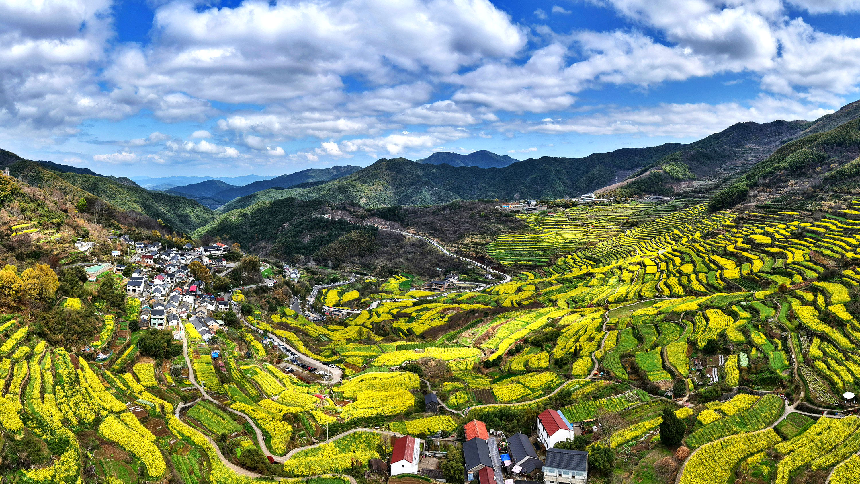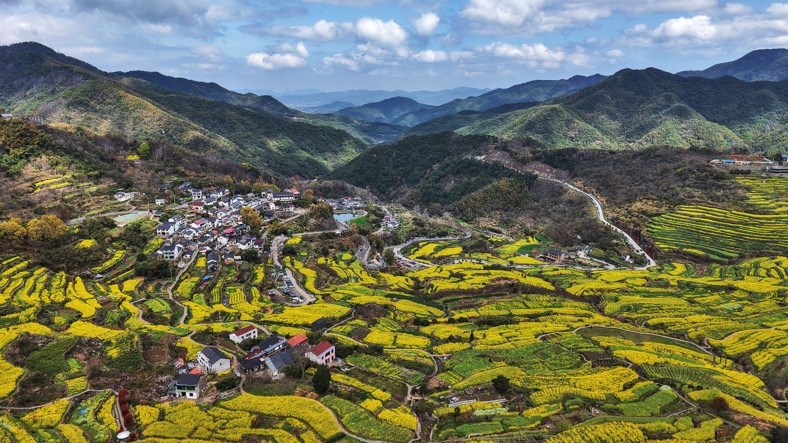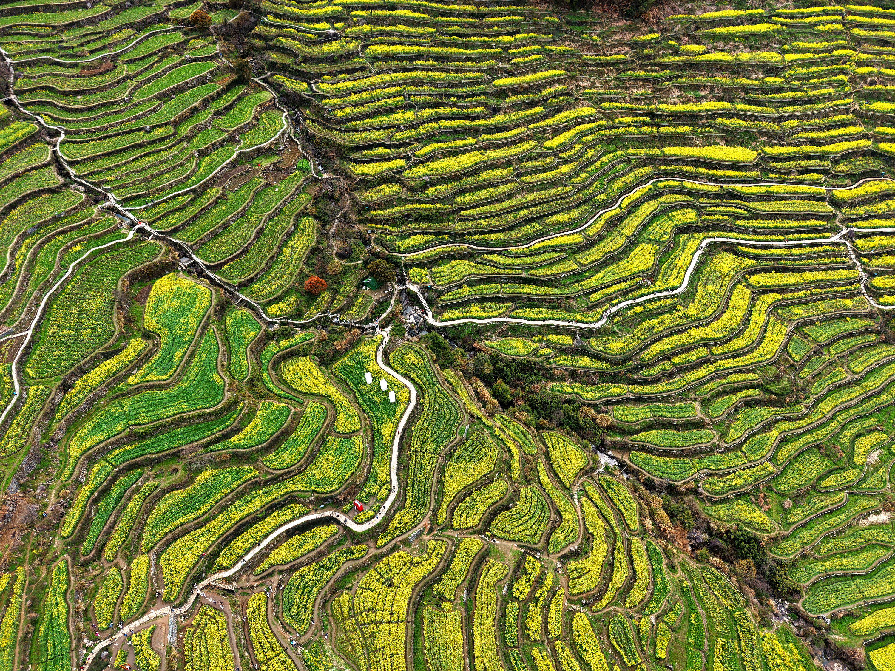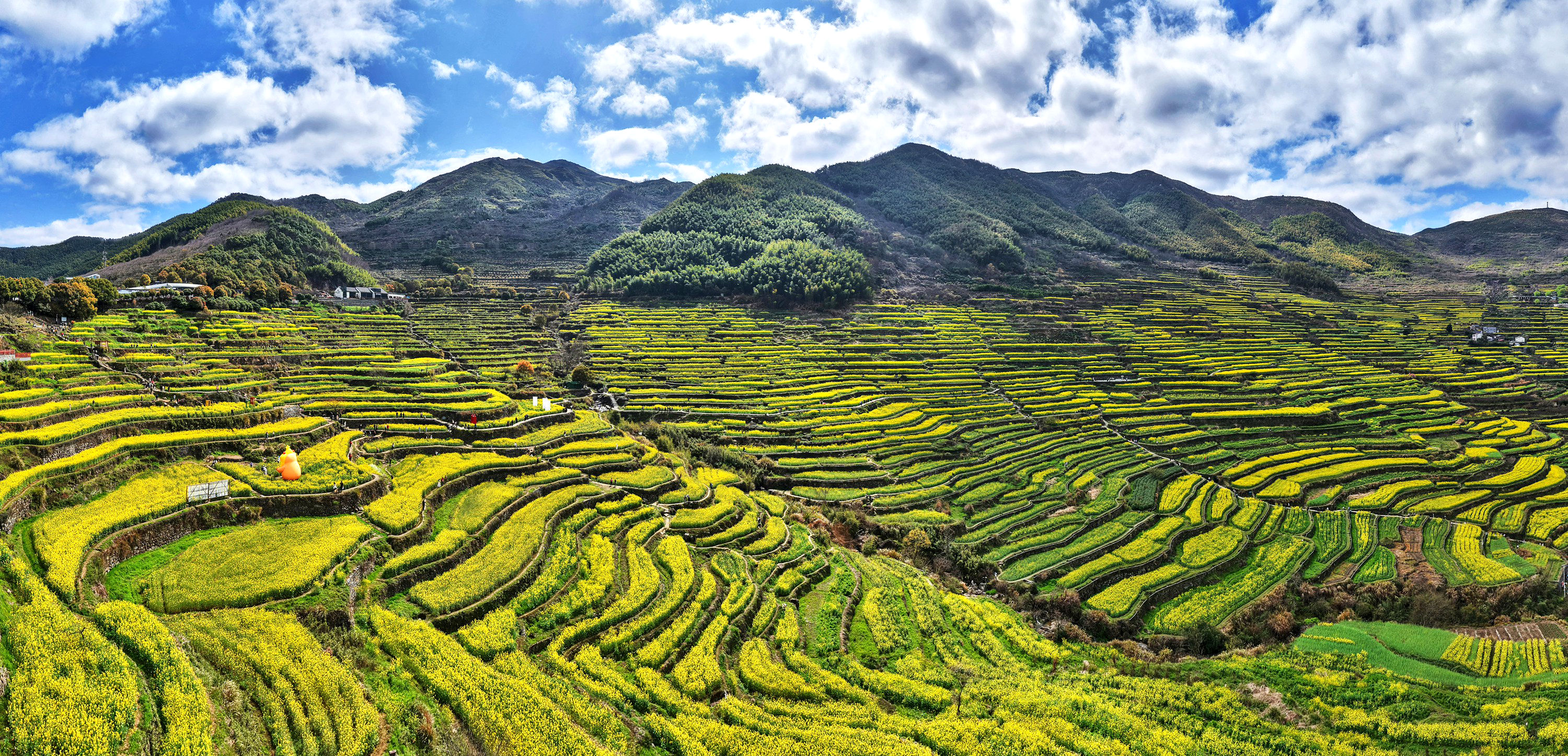《震撼了!覆卮山梯田花海》3月28日,登上“华东最美十大金花胜地之一”的绍兴上虞覆卮山千年梯田油菜花海,站在海拨500余米的观景台上,眼前是漫山遍野的油菜花层层叠叠,从山顶铺向山谷,除了震撼还是震撼!