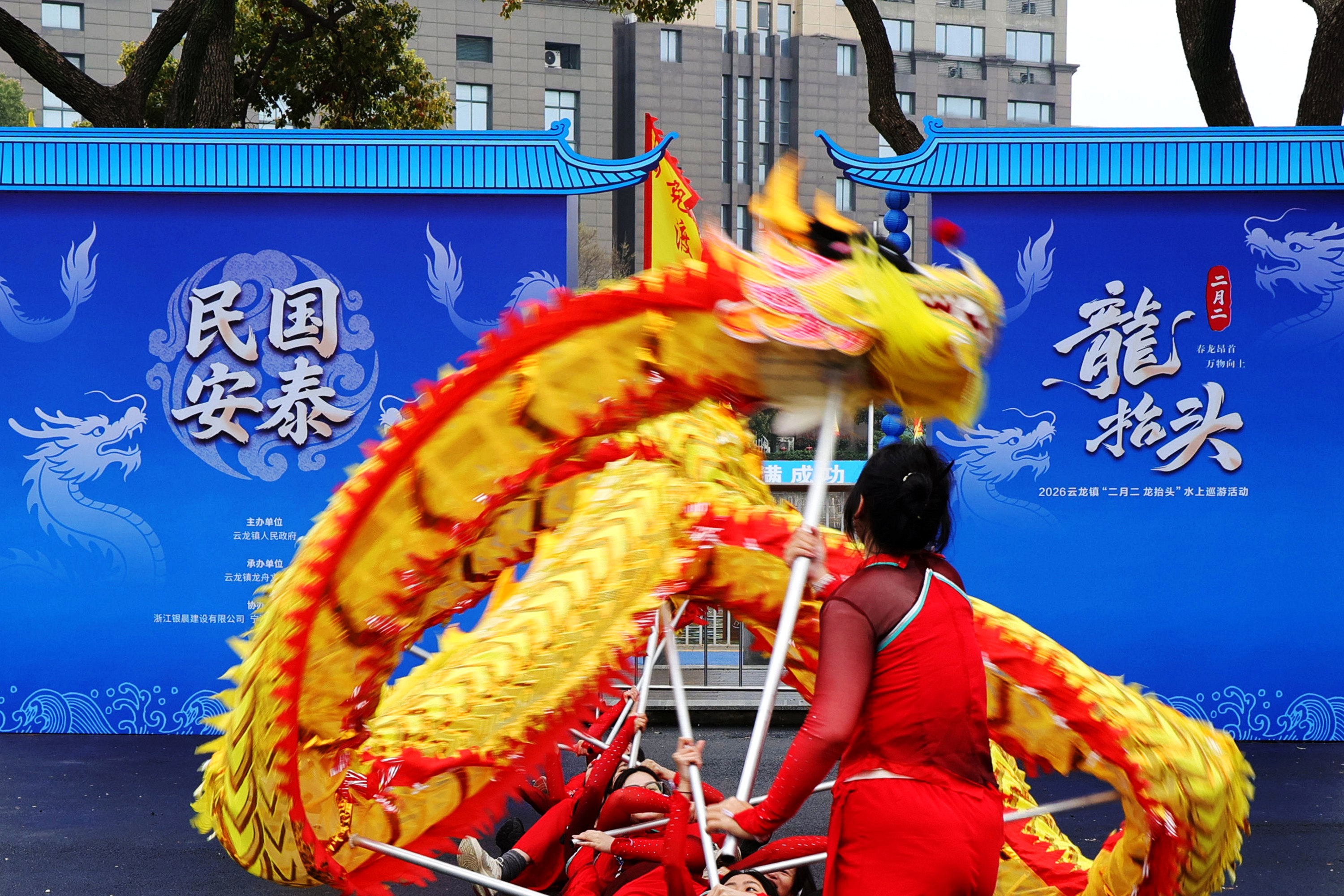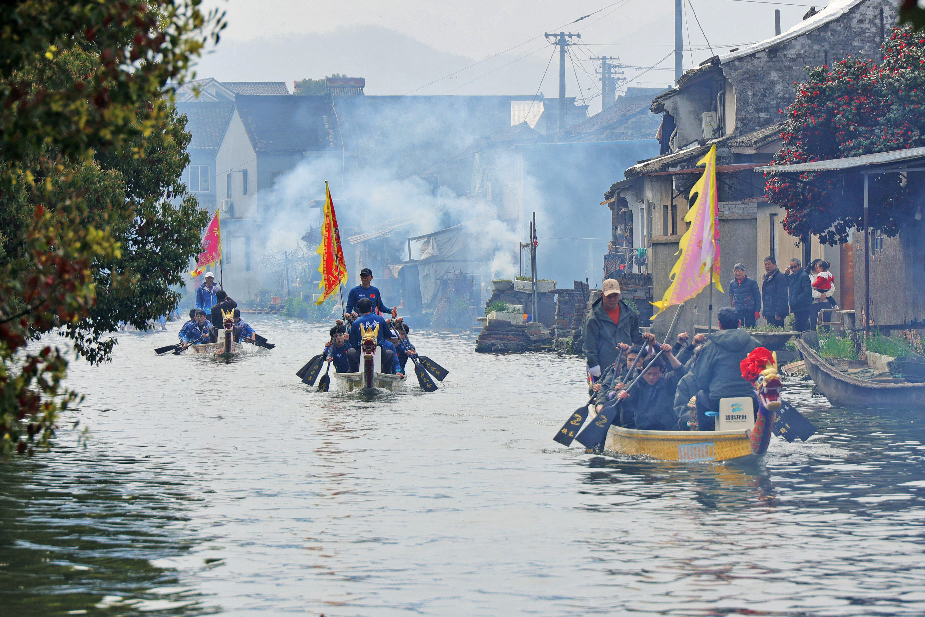 《二月二 龙抬头 云龙举行水上龙舟巡游》3月20日,农历二月二,龙抬头,又逢春分节气,宁波市鄞州区云龙镇举行“二月二龙抬头”水上巡游活动。春龙昂首时,万物皆向上,鼓点声中,龙舟飞驰,两岸村民放鞭炮迎龙舟,祈求一年好彩头。
