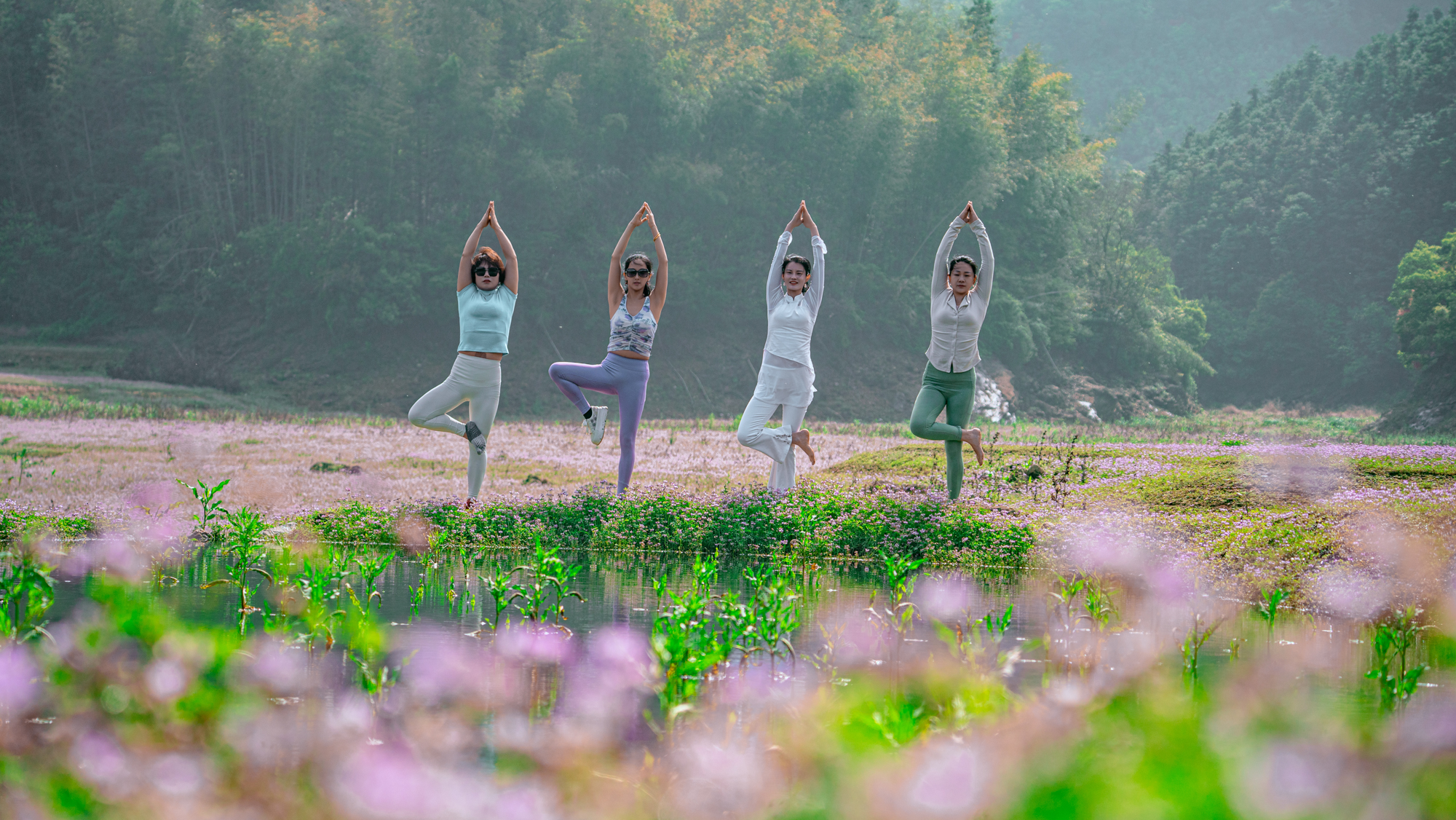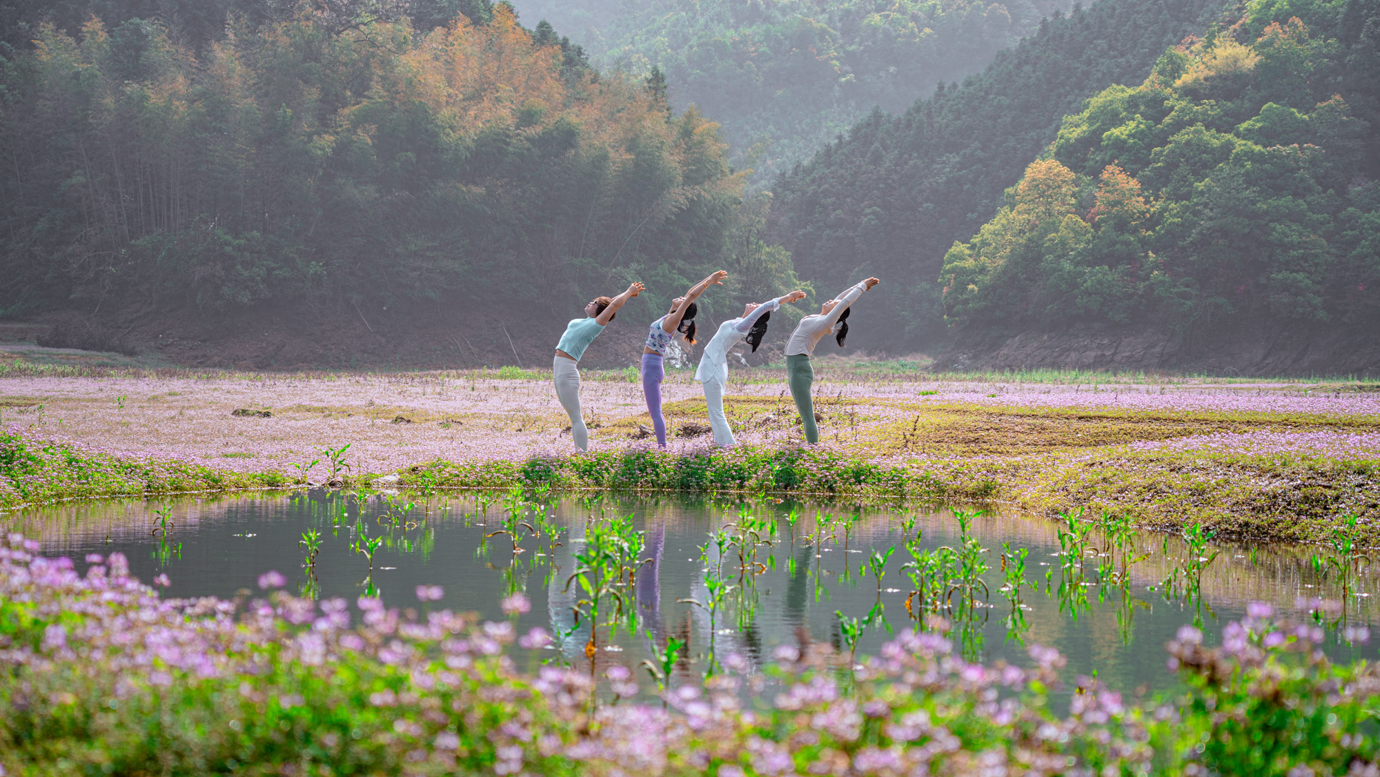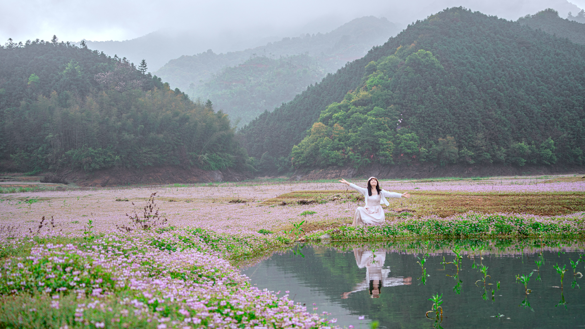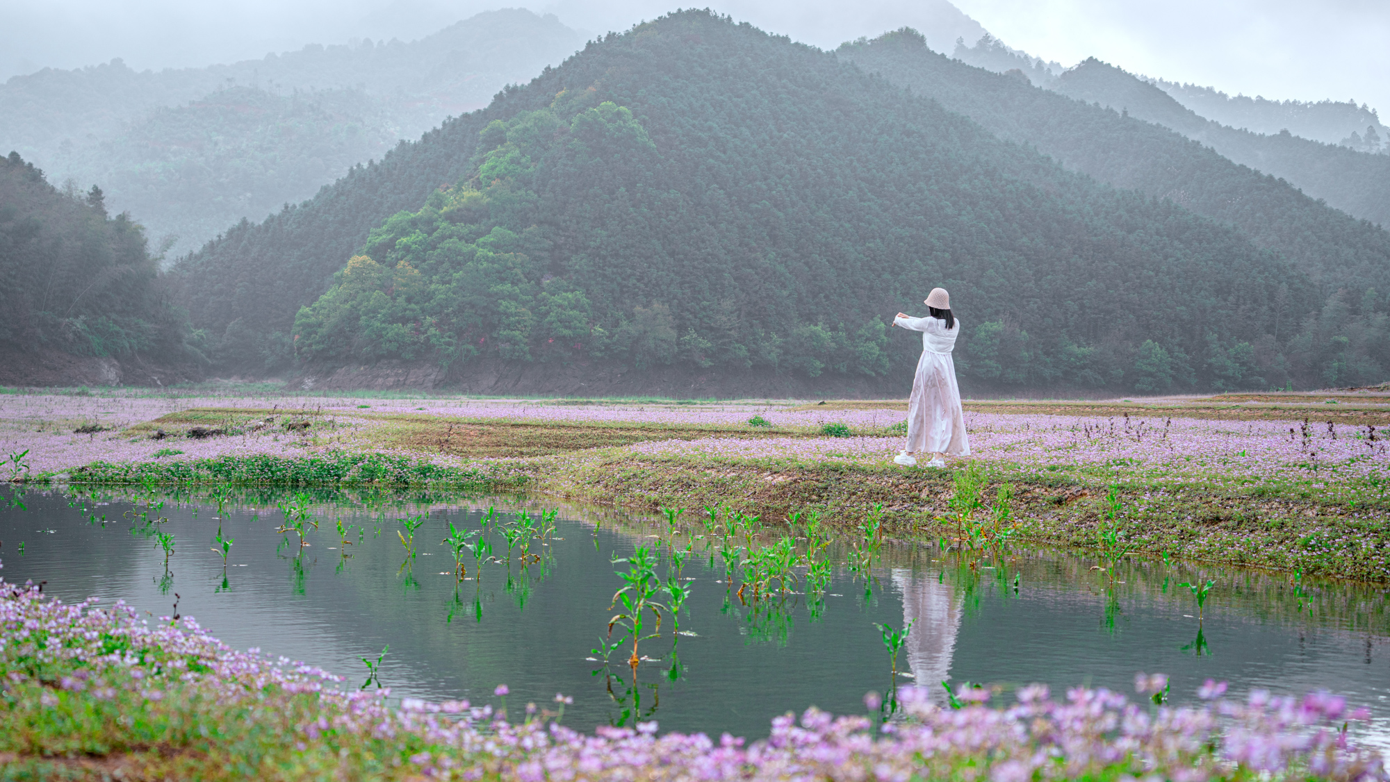 【江西新干:紫云绽放,醉美春光】4月1日,江西省吉安市新干县溧江镇培山水库春意盎然,库区漫滩上大片紫云英竞相绽放,粉紫花海如毯,与碧水青山相映成趣,勾勒出一幅秀美生态画卷。清晨云海缭绕、朝阳铺金,晨雾中的紫云英清新灵动,吸引不少游客前来踏青赏花、漫步休闲,尽享春日美好。这片限定花海既是生态保护的生动成果,也成为当地热门文旅打卡地,为乡村振兴增添活力。