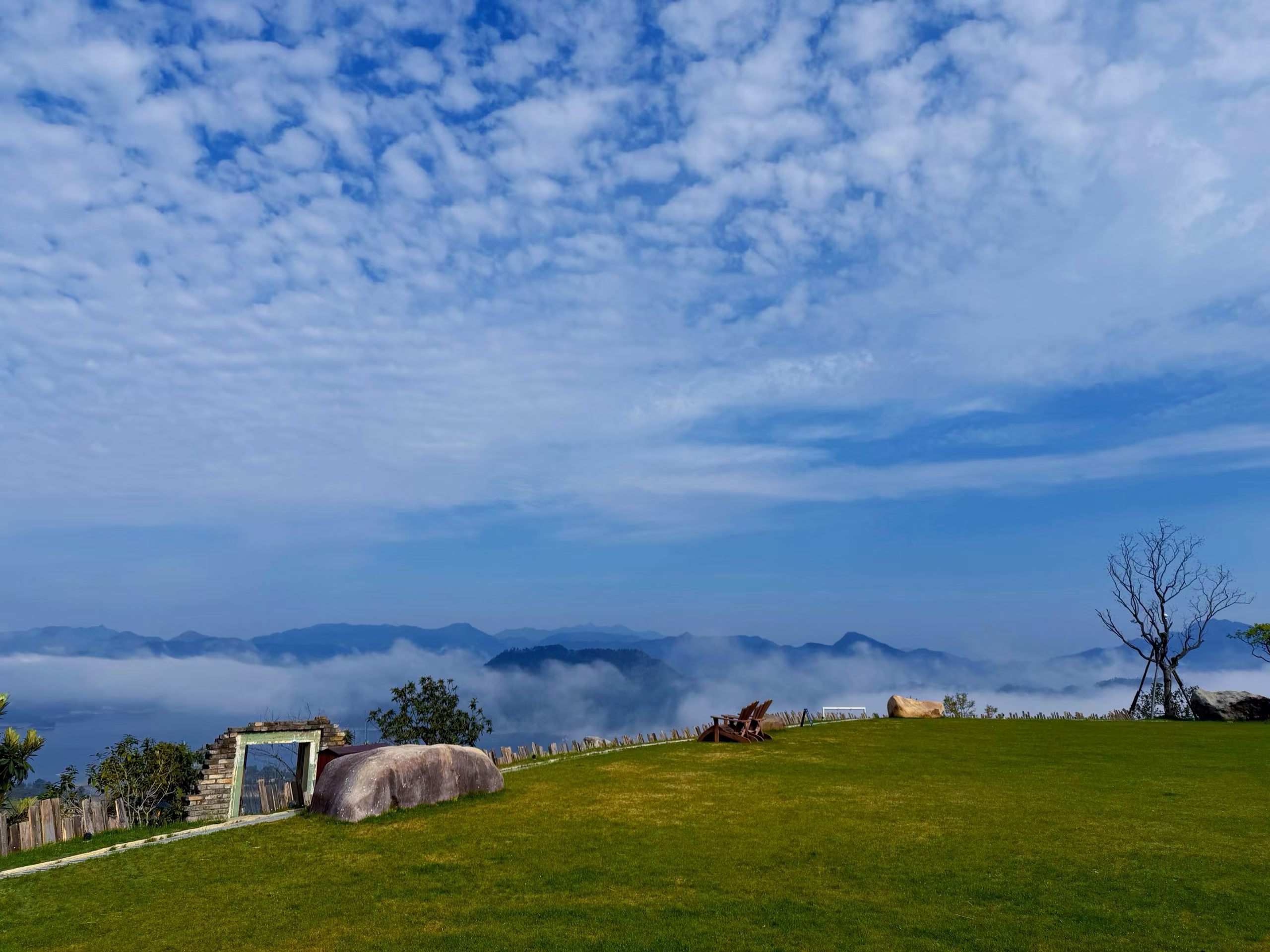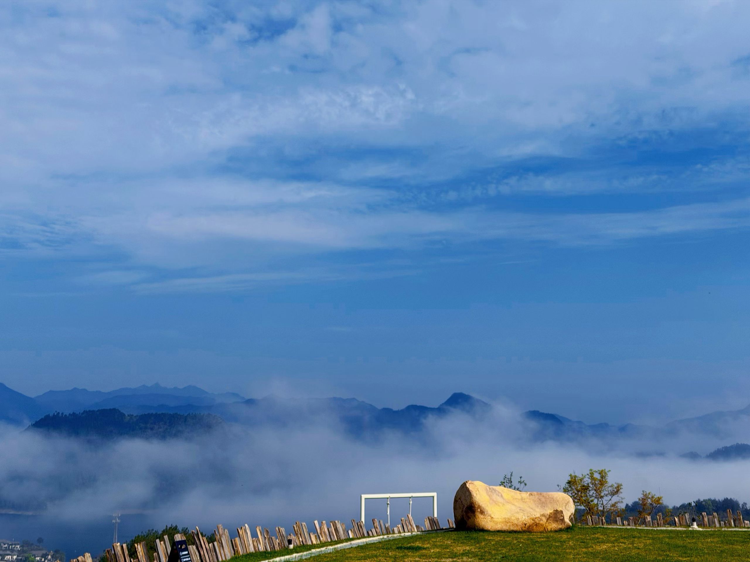 千岛湖蜜境藏云海,巨石草坪+木椅观景台,随手一拍就是MELLOW风大片~