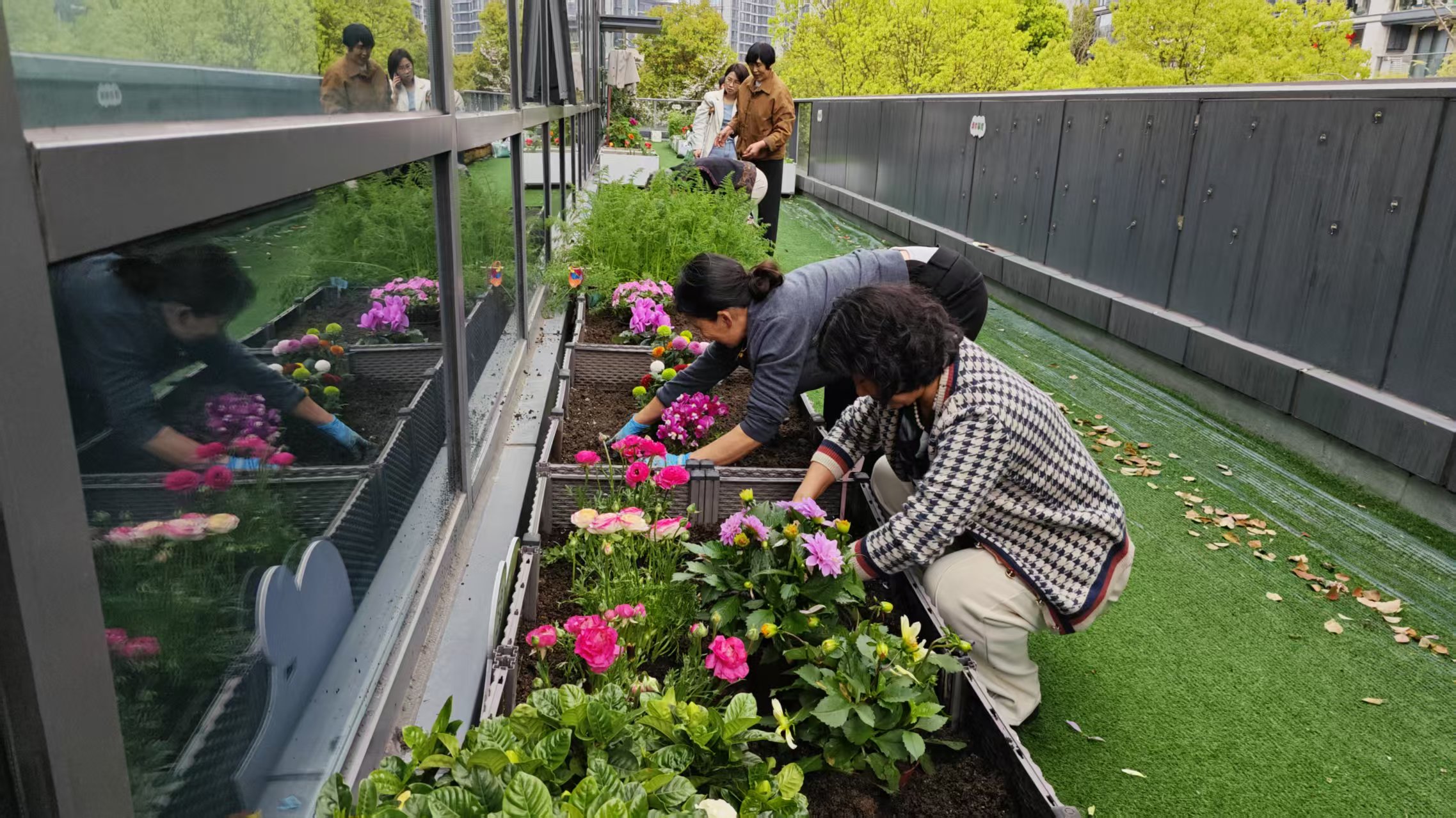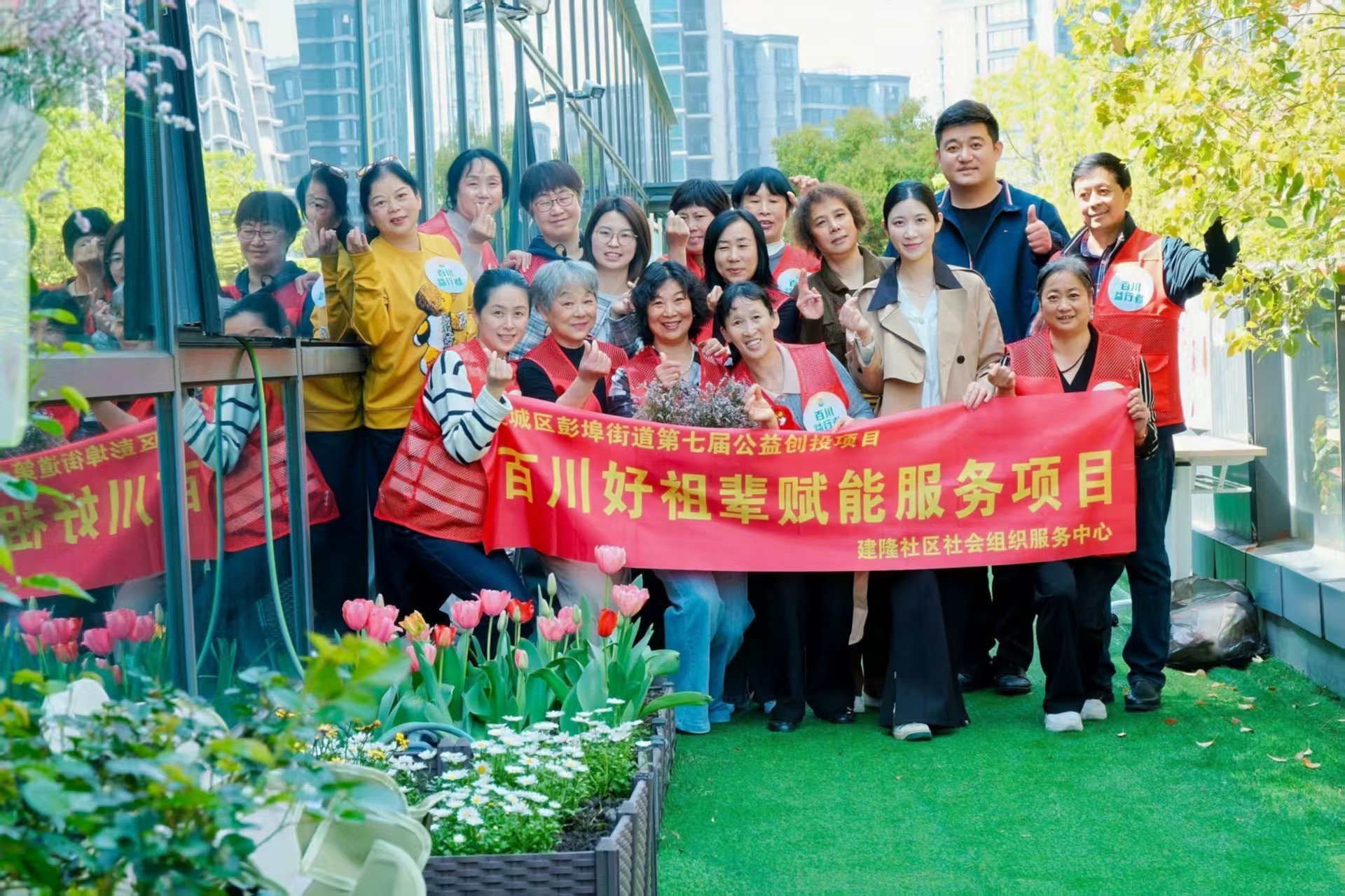 四月的杭州,春风拂面,阳光正好。在这个充满生机的季节里,一场以上城区彭埠街道第七届公益创投项目——百川好祖辈赋能服务项目启动仪式,在建隆社区党群服务中心二楼圆满开启。这不仅是一次简单的园艺体验,更是一场跨越年龄的温情对话,将社区里的"大朋友"与"小朋友"紧紧联系在一起,共同书写了一段关于爱、成长与责任的春日故事。 一、屋顶花园的"变身记":从钢筋水泥到绿意盎然 活动的主场地位于一处视野开阔的屋顶平台。放眼望去,原本单调的水泥地面如今已铺上了翠绿的人工草坪,一排排白色的种植箱整齐排列,仿佛给建筑披上了一件生机勃勃的"绿衣裳"。 种植箱里,红的郁金香热烈绽放,粉的玛格丽特娇嫩欲滴,还有翠绿的蔬菜苗在微风中轻轻摇曳。这里不仅是植物的乐园,更是社区居民共同打造的"空中农场"。大朋友们和孩子们穿梭其间,手中的小铲子翻动着泥土,每一铲下去,都是对美好生活的向往。 二、大手牵小手:泥土里的传承与探索 "奶奶,这个土要挖多深呀?""小心点,别伤到了花宝宝的根。"在种植区,这样的对话此起彼伏。身穿红色马甲的志愿者奶奶们,耐心地弯下腰,手把手地教孩子们如何松土、种苗、浇水。 孩子们穿着统一的橙色罩衣,像一个个全副武装的"小园丁"。他们有的蹲在地上,专注地盯着嫩绿的菜苗,眼神里充满了好奇;有的挥舞着小铲子,卖力地翻土,额头上渗出了细密的汗珠也浑然不觉。当一株株郁金香被稳稳地植入土中,孩子们的脸上绽放出比花儿还要灿烂的笑容。这一刻,泥土的芬芳混合着欢声笑语,成为了春天里最动听的乐章。 三、创意绘长卷:童心与爱心的色彩碰撞 除了动手种植,活动现场还设置了一面长长的白色画板,这里成了孩子们挥洒创意的天地。 一个小男孩高高举起画笔,认真地为画板上的轮廓填色,他的眼神专注而坚定,仿佛在描绘心中最美的家园。旁边,身穿红马甲的志愿者们也拿起画笔,与孩子们一起勾勒线条、填充色彩。 大家踊跃参与,有的在条幅上画画,有的按下五彩斑斓的手印。每一个手印,都代表着一份承诺;每一笔色彩,都凝聚着一份爱心。这不仅仅是一幅画,更是社区居民心连心的见证,是大家对未来美好生活共同许下的愿望。 四、定格美好:笑容是最好的"代言" 活动接近尾声,大家聚集在横幅前合影留念。横幅上"百川好祖辈赋能服务项目"几个大字在阳光下熠熠生辉。志愿者们、孩子们、社区工作人员,每个人的脸上都洋溢着满足和幸福的笑容。 有人比出了"耶"的手势,有人竖起了大拇指,还有人手捧着自己亲手种植的小盆栽,爱不释手。这张合影,定格了春日的暖阳,定格了劳作的汗水,更定格了那份浓浓的邻里情和公益心。 五、结语:让爱在泥土中生根发芽 这场活动,虽然只是"百川好祖辈赋能服务项目"的一个缩影,却生动地诠释了公益的力量。它让老人们找到了发挥余热的舞台,让孩子们在大自然中学会了关爱与责任,也让社区这个大家庭变得更加温暖和谐。 当郁金香在阳光下再次绽放,当亲手种下的蔬菜结出果实,这份春日的记忆,将化作一颗颗爱的种子,在每个人的心中生根、发芽,茁壮成长。