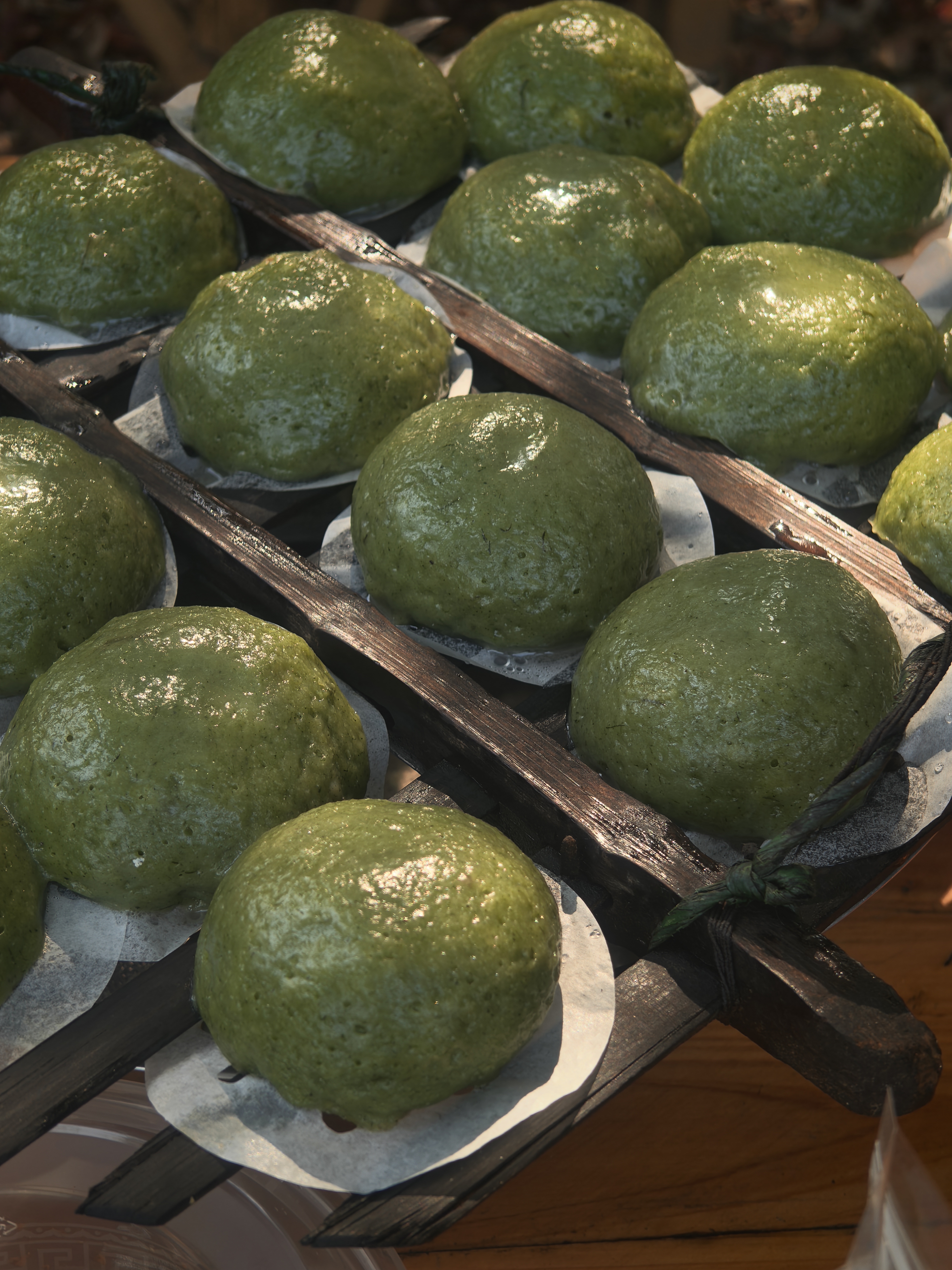 青团出笼啦~艾草香混着糯米甜,竹笼里冒着春日热气,手作的温度刚刚好~江南清明味,一口咬住整个春天!