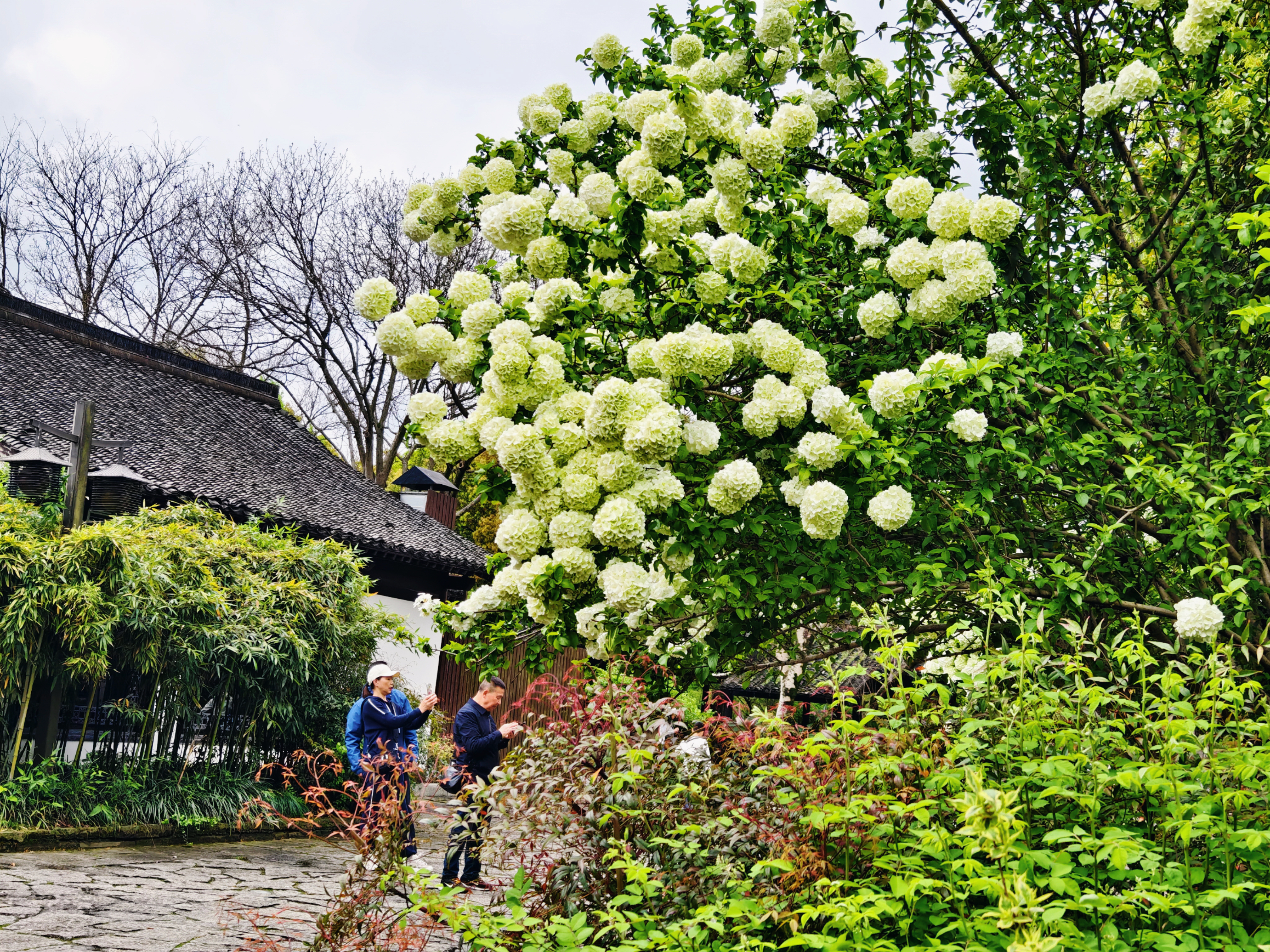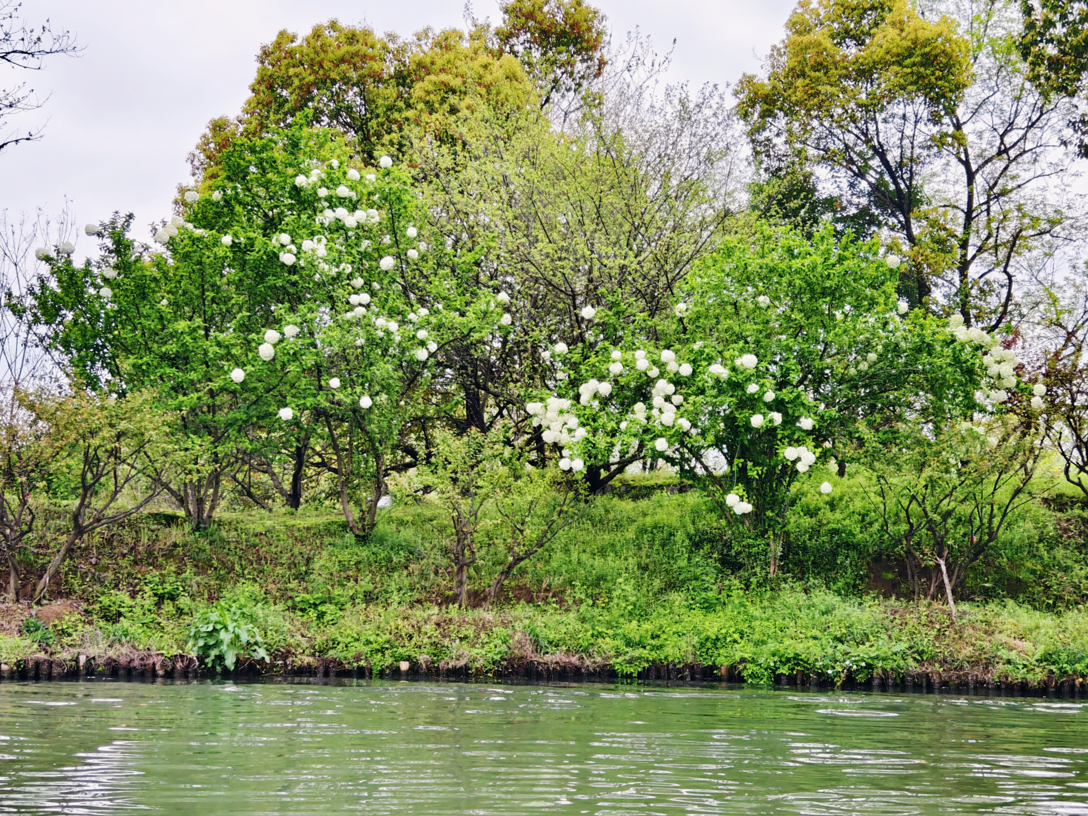 西溪湿地木绣球花盛放,团团白花缀满枝头,碧水相映,满是江南春日的温柔诗意。