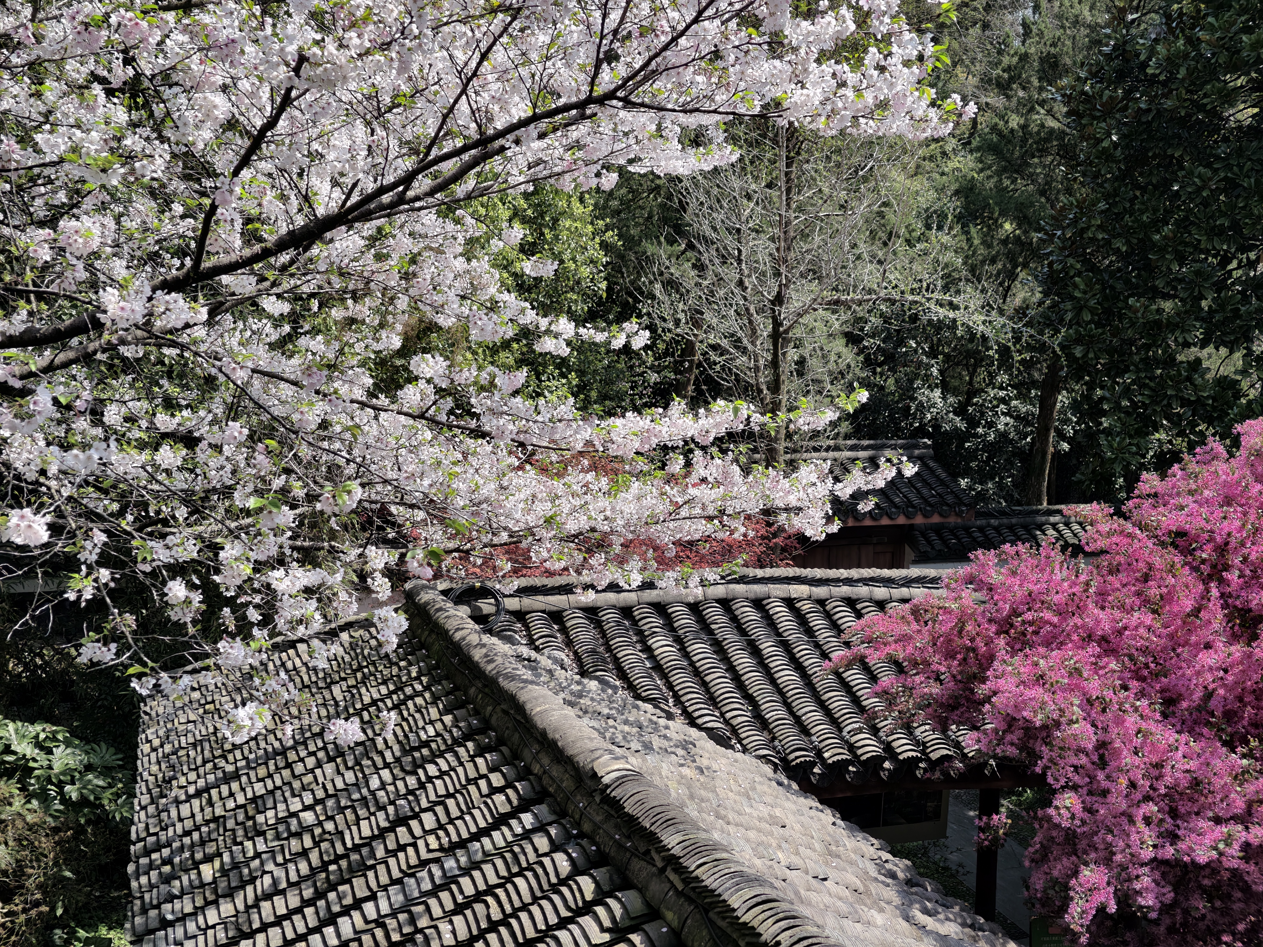 樱花绽放的季节,坐在樱花树下,赏花、喝茶、看风景,心情很好啊!