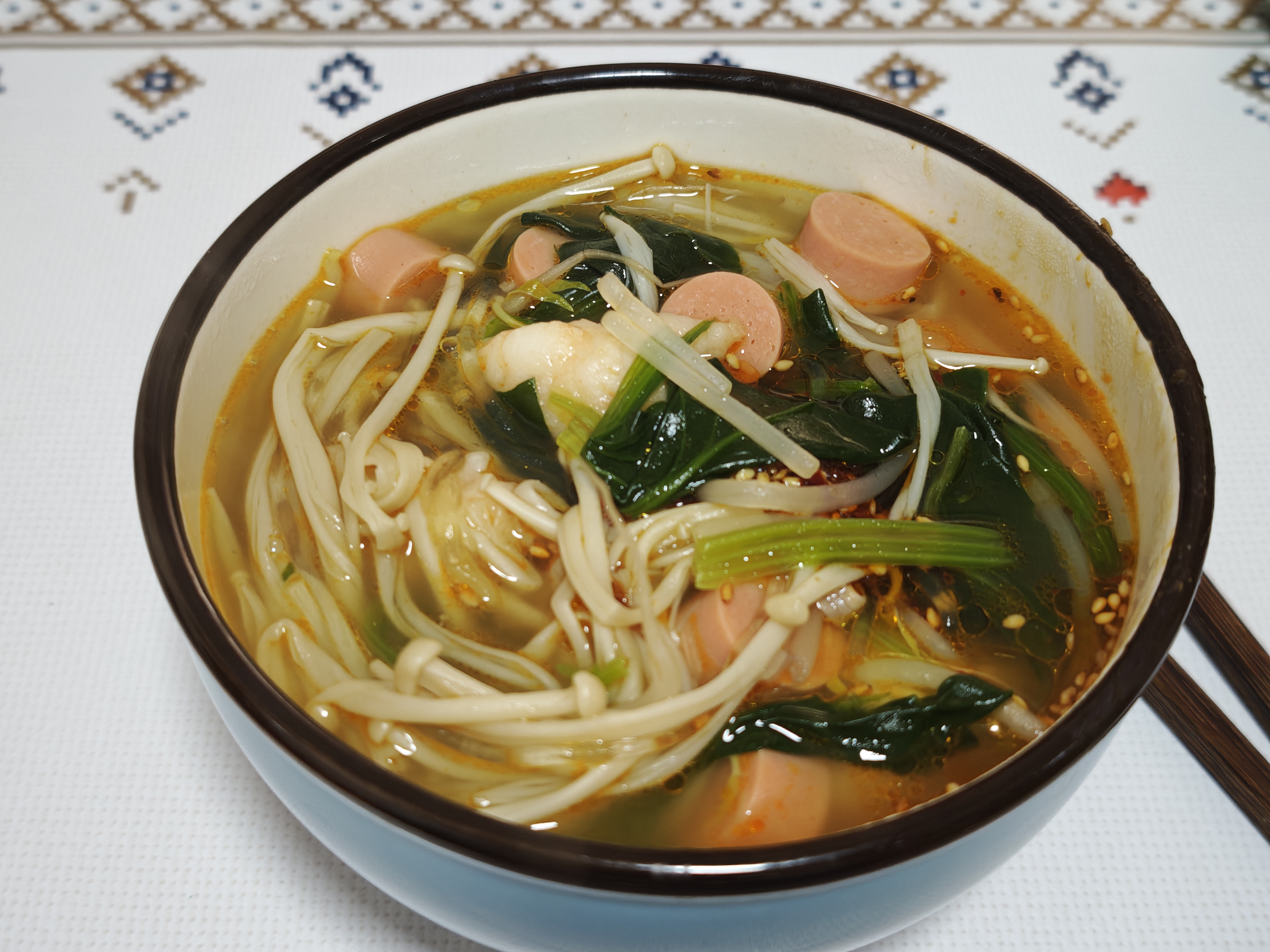 自制麻辣烫 接受不了外卖麻辣烫的油腻,自己在家搞了一个减油版,毕竟一点油都没有的麻辣烫实在下不去嘴啊!哈哈!个人总结的小妙招就是锅底把花椒,麻椒先煮水,不要下锅炒油料。然后加入一点点麻辣料,和喜欢的食材。出锅后再加一点个人喜欢的调料,陈醋,麻油,就妥妥的了!