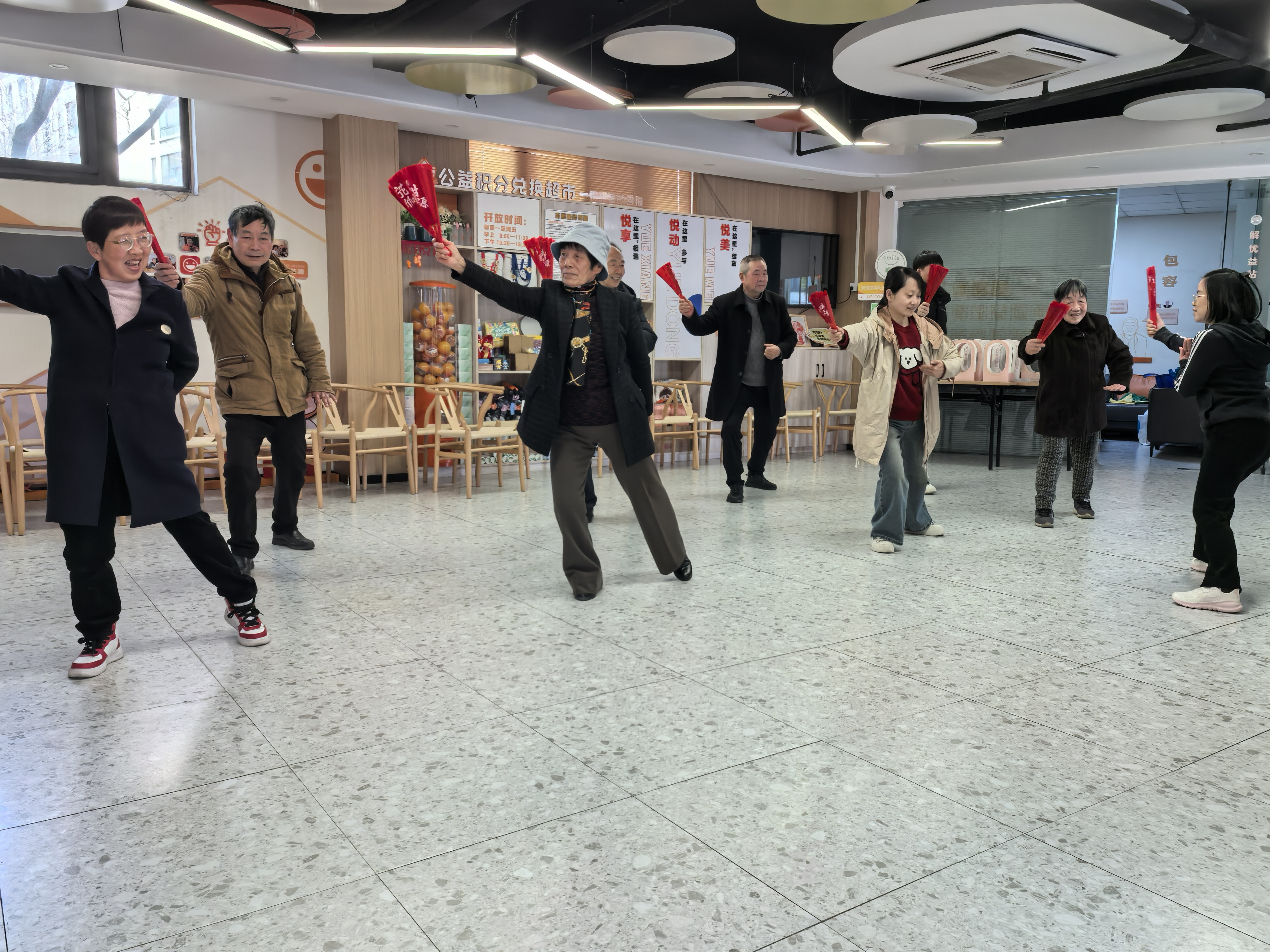 |舞动功夫扇 健康伴我行 “这扇子一打开,感觉整个人都精神了!还能学到传统功夫,真是既开心又有收获!”近日,北城街道桔源社区“舞动功夫扇 健康伴我行”主题活动现场,一位老人手持红绸功夫扇,笑着分享参与感受。此次活动紧扣浙风十礼“乐有礼”“学有礼”要求,丰富老年居民精神文化生活,传承中华传统武术文化,倡导全民健身新风尚。 活动现场,志愿者以“学有礼”为导向,从握扇、开扇等基础动作教起,耐心讲解要领、纠正姿势,引导老人们在学习中感受传统武术魅力。老人们认真模仿、相互切磋,在一遍遍练习中掌握技巧,清脆的开扇声此起彼伏,满是成就感。随后,志愿者将功夫扇动作拆解教学,结合“乐有礼”倡导的文明健康娱乐理念,引导老人们在舒缓音乐中舒展肢体、练习整套动作。红扇开合翻飞,刚劲与优雅兼具,老人们全情投入,成为社区里一道靓丽风景线。 此次活动,既让老人们锻炼了身体、收获了快乐,也在潜移默化中践行了浙风十礼,传承了传统文化,进一步营造了邻里和睦、健康向上的社区氛围,让老年居民乐享幸福晚年。